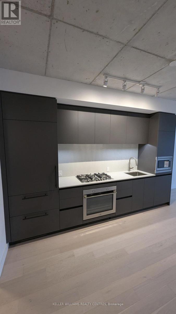 Experience refined boutique living in this modern, new and accessibly friendly 2bed+Den, 2-bath residence in one of Toronto's most desirable neighbourhoods. Offering a total of 981 SF. of living space, this home blends comfort with simplicity. Experience an open-concept layout with light plank hardwood flooring throughout, exposed concrete ceilings, and floor to ceiling windows that let the setting sun flow throughout. The modern kitchen is compact yet highly functional, with integrated appliances and clean lines. The primary suite offers a floor to ceiling windows, a walk-in closet completed with a 4-piece ensuite. The 2nd washroom showcases a frameless glass shower, rainfall shower head, and modern vanity. The stacked, full size, in-suite laundry closet adds convenience. Outdoor living space can be enjoyed year round by a covered terrace complete with hose bib and natural gas hook up for your BBQ or favorite fire feature.Amenities include a 24-hour concierge, complete fitness centre w children's play area, a co-working business centre with available private rooms, an outdoor terrace with BBQ, as well as a pet washing station. Conveniently situated steps to the Leaside LRT, boutique shops, cafes, restaurants, parks, and top-rated schools. This is an exceptional opportunity for those seeking a modern, well-appointed home in a vibrant yet established community. (id:64974)