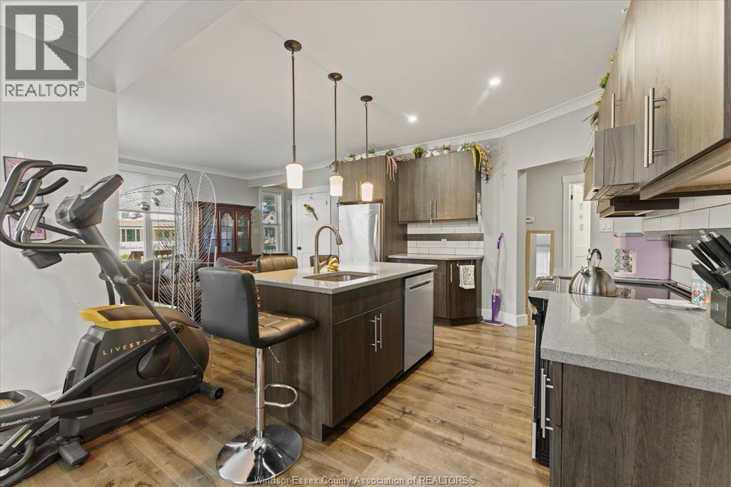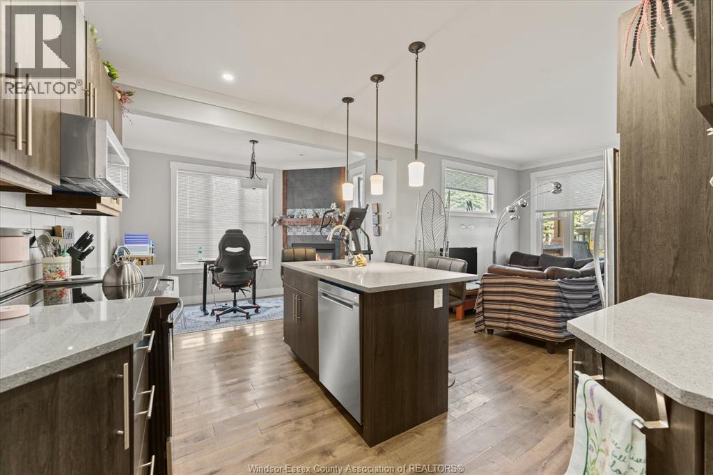 Welcome to this beautifully upgraded main floor residence in historic Sandwich Town, ideal for those seeking style, comfort, and convenience. This spacious unit offers 2 bedrooms plus a versatile den—perfect for a home office—and 2 full bathrooms. Designed with modern living in mind, the open-concept layout features elegant hardwood flooring throughout and a contemporary kitchen complete with quartz countertops and high-end stainless steel appliances. Ensuite laundry adds everyday convenience, while the property also includes video security, a lawn irrigation system, and additional basement storage. Situated in an established neighbourhood with easy access to local amenities, the waterfront, and key commuting routes, this is an exceptional opportunity to enjoy refined living at its best. (id:64974)