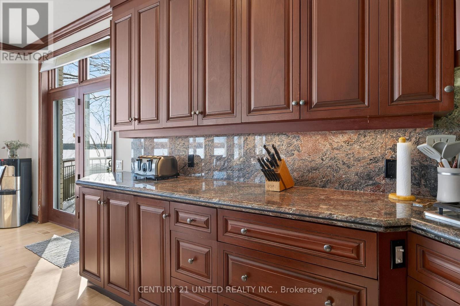 Set on the pristine shores of Clear Lake, this executive 6 bedroom, 5 bathroom waterfront home offers a rare blend of luxury, privacy and iconic Kawartha living. This exceptional brick and pine bungalow has approximately 5,400 sq ft of finished living space, combining quality craftsmanship and thoughtful design-set on a private lot with easy access off the main road. A spacious front entryway leads into an impressive open-concept living, dining, and kitchen area, highlighted by vaulted ceilings and wall-to-ceiling windows showcasing spectacular lakeviews. Maple flooring, recessed pot lighting, and a propane fireplace create a warm yet refined atmosphere. The living and kitchen areas feature custom cherry cabinetry, while the kitchen is beautifully appointed with high-end appliances, an extra-large refrigerator, and granite countertops and backsplash-perfect for entertaining. A large deck off the kitchen provides seamless access to the garden and waterfront. The main level also includes a large front office, main-floor laundry, and a primary suite with walk-in closet and spa-like ensuite. The walk-out lower level features a generous recreation room with wood-burning fireplace, floor-to-ceiling windows, and space for family gatherings. Also with its own private entrance is a self-contained 2-bedroom, 1-bath in-law suite, ideal for guests or extended family. Outside, enjoy 107 ft of flat, private waterfront, canilevered aluminum T-docks, and a double dry boathouse with recreational space above, offering excellent storage for boats and watertoys. Two additional back lots provide extra storage and future potential. Additional features include an attached double garage, 24' x 25' workshop, paved driveway, underground watering system, armoured retaining wall, and quality construction throughout. An outstanding Clear Lake executive waterfront offering, gorgeous from entrance to exit. (id:64974)