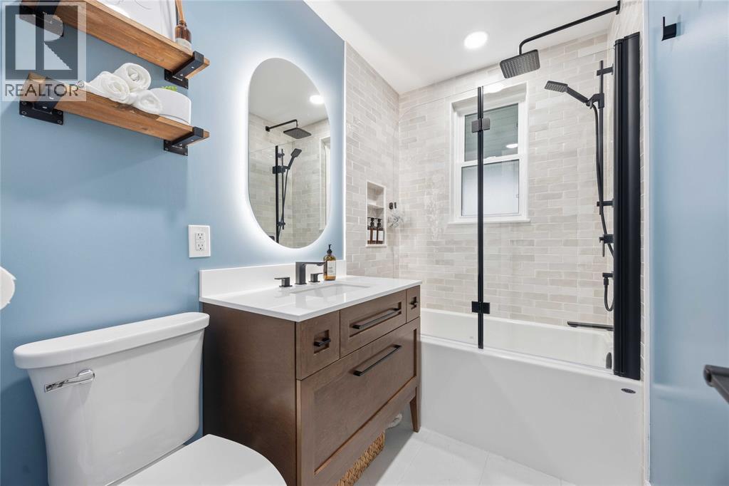 Located conveniently in Central Sarnia, this charming 3 bedroom, 1.5 bathroom home has been completely updated featuring two brand new bathrooms (2025 and Casey's kitchen (2021). This is the perfect home for a first time buyer, young family or someone looking to downsize. The main floor offers a bright open living room, a dining room big enough for hosting, a lovely white kitchen with exposed shelving, one bedroom with large closet and a stunning new 4-pc bathroom. Upstairs you will find two large bedrooms and a beautiful powder room. The finished basement boasts a newly renovated family room providing additional space for family movie nights while still offering plenty of storage. The fully fenced backyard featuring a large wood deck and loads of greenspace offers privacy and plenty of room to entertain. The detached garage is great for extra storage or a workshop. Situated in the heart of Sarnia, within walking distance to Centennial park and downtown. HWT is a rental. This one won't last long! Book your showing today! (id:64974)