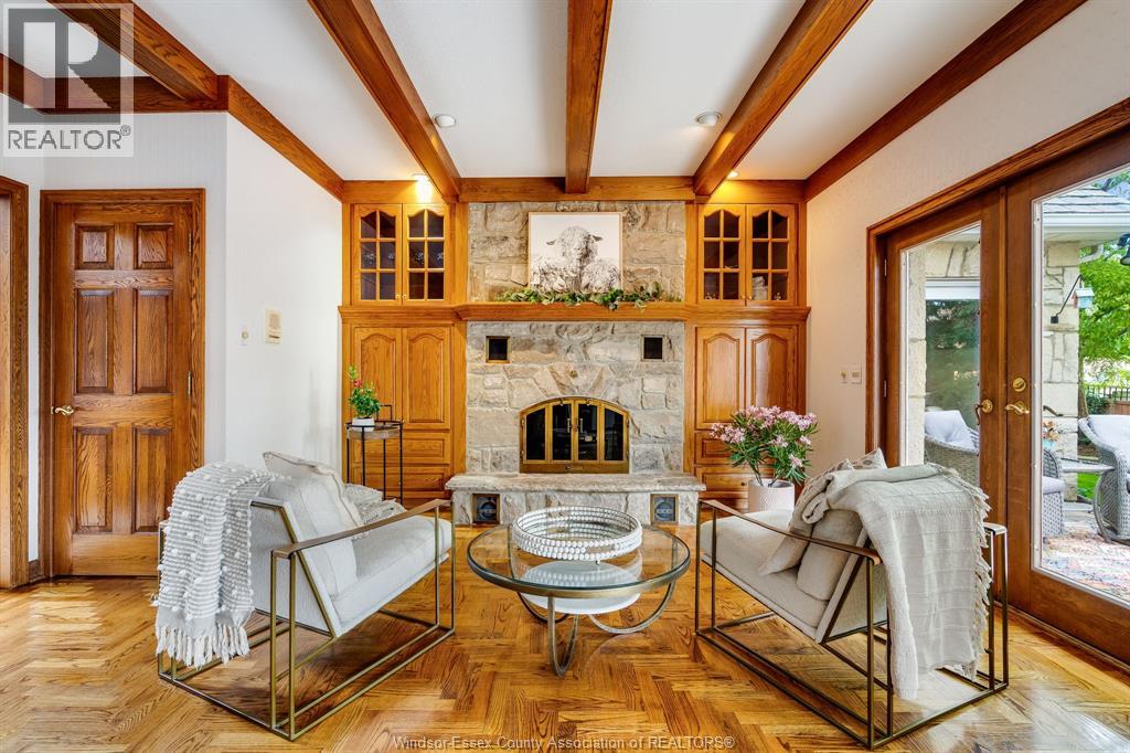 Unique opportunity to own this one of a kind property sitting on a corner lot with stunning curb appeal. Step inside to find a spacious layout with large windows that fill the home with natural light offering views of a thoughtfully curated surrounding landscape of mature trees and flower gardens. Perfect for a bed and breakfast, growing family or multigenerational living. Over 3800 sq ft., this home exudes character and extras with custom woodwork, oak trim, wainscotting built-in shelving, marble floors, 2 fireplaces and a sauna. Great layout with primary suite and laundry on main floor, kitchen is accessed by surrounding rooms and an all glass 4 season sunroom provides access to a backyard oasis with an inground pool and built-in hot tub. Lower level features endless flex space to fit all your needs, in-law suite potential. Epoxy floors in 2 car garage features a workshop. All furniture and T.V.s can be included. (id:64974)
