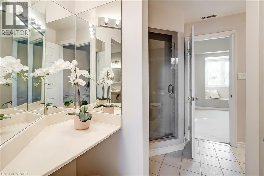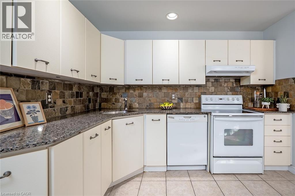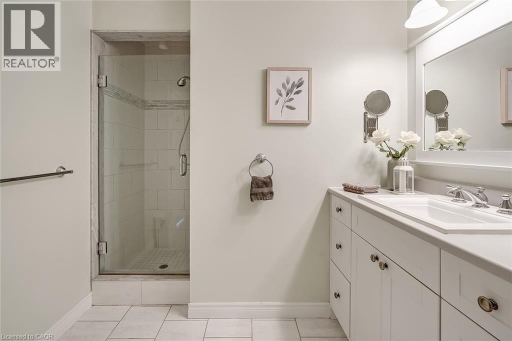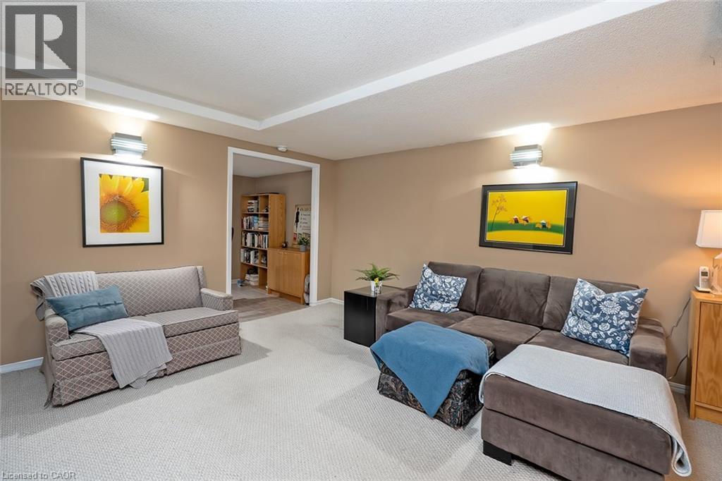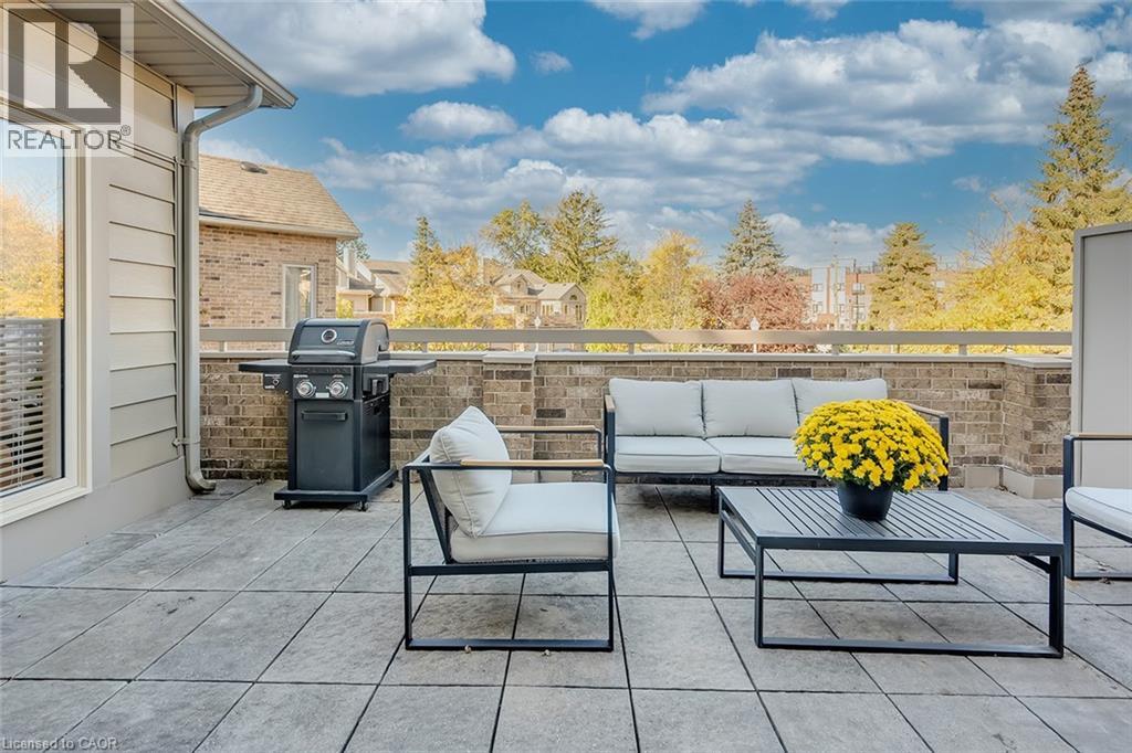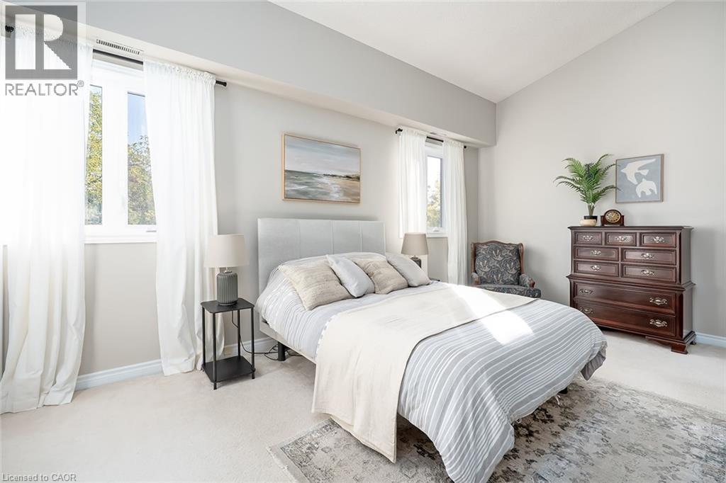 Welcome to The Terraces, a prestigious and seldom-offered enclave nestled in one of Burlington’s most desirable neighbourhoods; Roseland. This bright end-unit townhome offers just over 1,900 sq. ft. of beautifully finished living space, featuring 2 bedrooms, 2 bathrooms, and an open-concept layout that blends comfort with timeless style. The spacious living and dining room is filled with natural light and highlighted by soaring vaulted ceilings, rich walnut flooring, and a cozy gas fireplace. French doors lead to your private terrace with an awning — an ideal spot to unwind outdoors, whether enjoying a quiet morning or a peaceful evening. The cheerful kitchen provides ample counter space and storage, while the main-floor primary suite is a true retreat with a 4-piece ensuite and generous his-and-hers closets. A second bedroom with a walk-in closet offers flexible space for guests or a home office, with convenient access to the main 3-piece bath. Main floor laundry further enhances the ease of everyday living. Downstairs, the fully finished basement adds valuable bonus space with a recreation room, den, and rough-in for an additional bathroom. Inside entry from the attached garage and plenty of visitor parking complete the package. With snow removal right to your door, landscaping, and exterior maintenance all taken care of, this home offers the ultimate in worry-free living — perfect for those seeking a simplified lifestyle without giving up space or quality. Ideally located close to downtown Burlington, the waterfront, parks and trails, shopping, and highway access, this immaculate home delivers exceptional comfort, convenience, and community in an unbeatable Roseland setting. (id:64974)