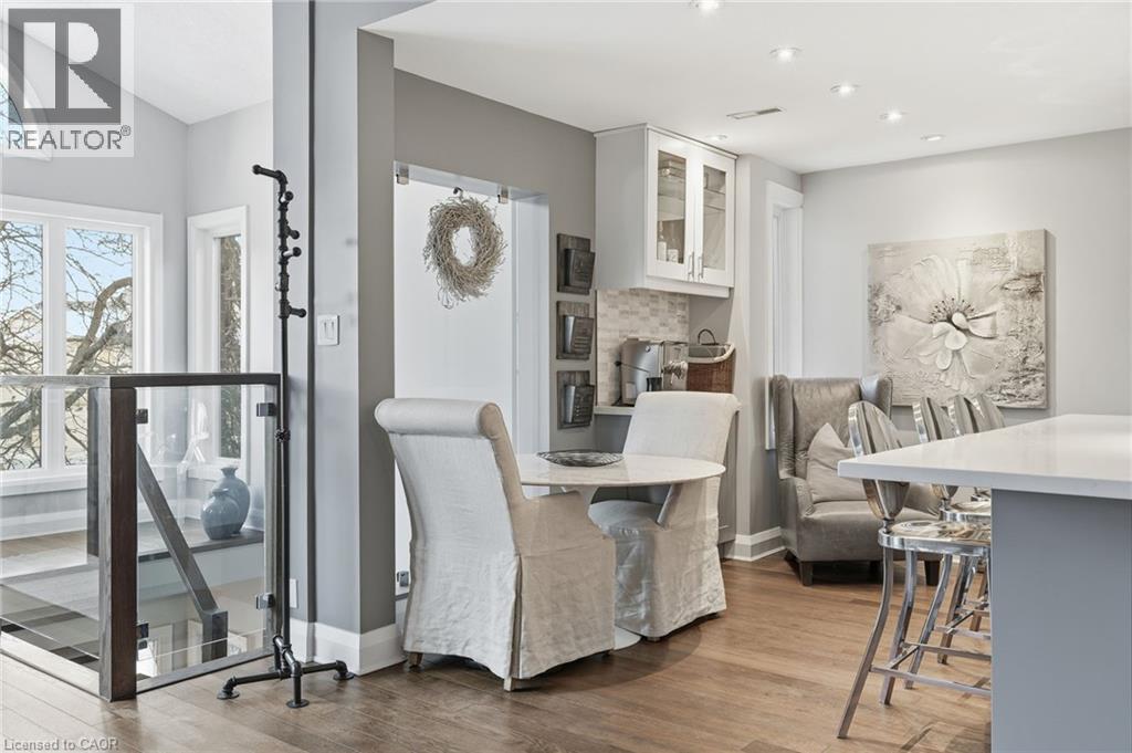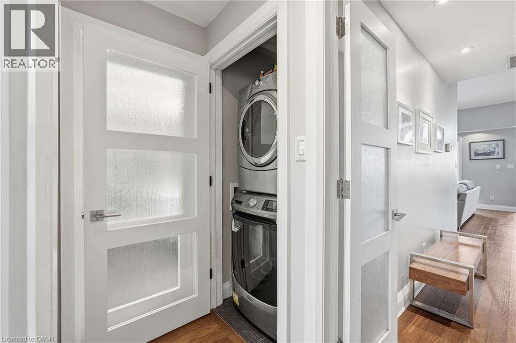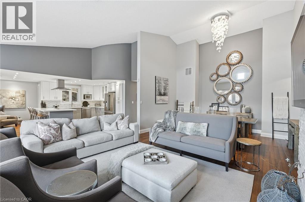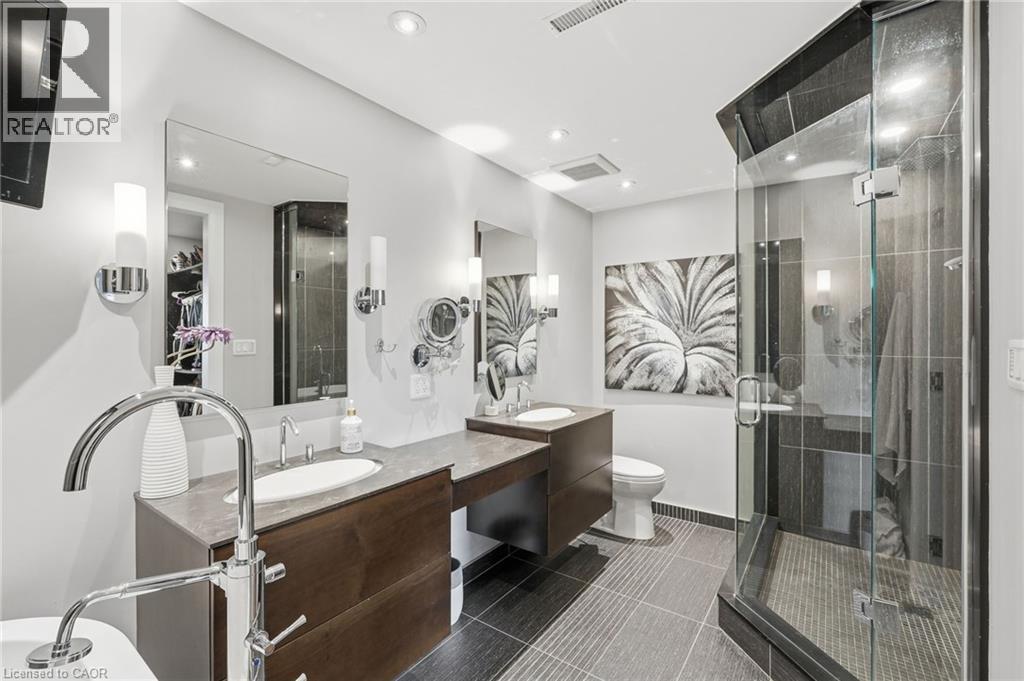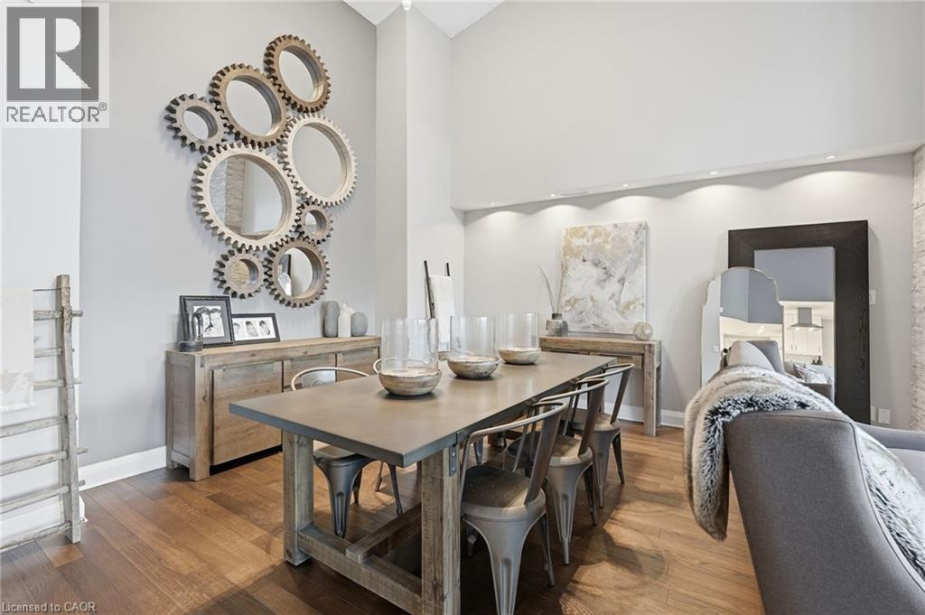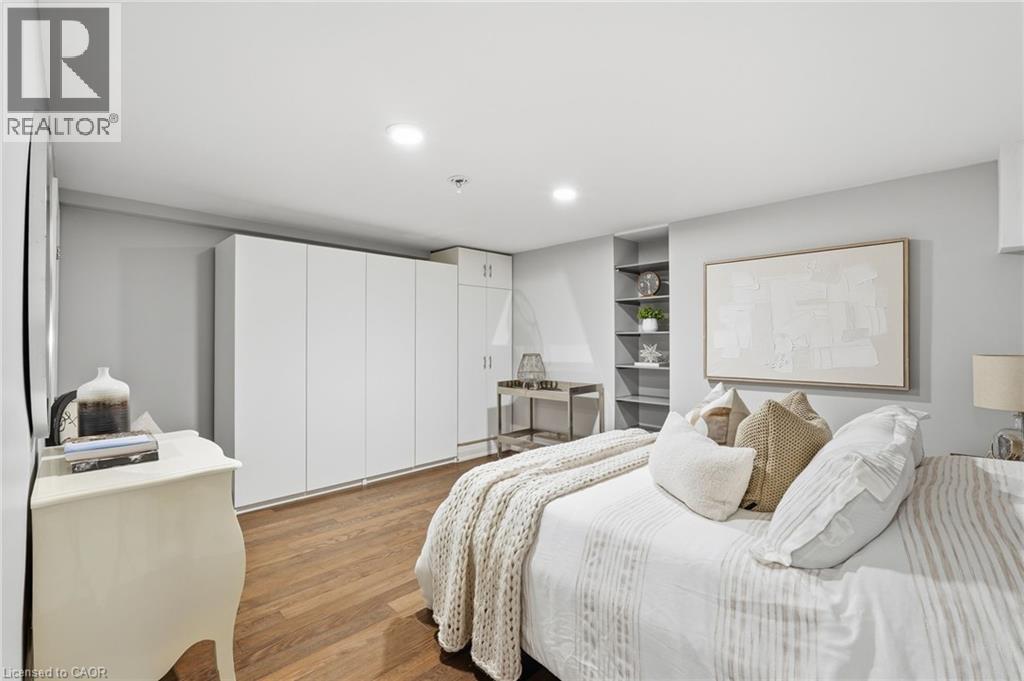 Step inside this exceptional executive townhome at The Terraces on New Street, where refined living meets everyday convenience in the heart of Burlington. A dramatic sun-filled great room with soaring 15.5-foot cathedral ceilings and a gas fireplace creates an impressive yet welcoming space to relax or entertain. Rich hardwood flooring flows throughout the entire home, adding warmth and elegance to every room.The open-concept layout leads into a chef-inspired kitchen with expansive quartz countertops and a generous peninsula—perfect for gathering, prepping, and hosting. From here, step out to your private east-facing terrace, ideal for morning coffee or alfresco evenings with friends.The main level offers two spacious bedrooms, each with its own full bathroom. The primary retreat features a walk-through closet, along with a spa-like five-piece ensuite complete with double sinks, a soaker tub, and a glass shower. The second bedroom enjoys ensuite privilege to a 4 pc bathroom. A main-floor laundry area adds everyday convenience. Downstairs, the fully finished lower level offers incredible flexibility—perfect for a home office, gym, guest suite, or media room. You’ll also find a 3-pc bathroom, an additional walk-in closet with built-ins, and multiple storage closets, providing exceptional storage throughout the home. All new windows were replaced in 2024, offering added comfort, energy efficiency, and peace of mind. Inside garage entry and ample storage add practicality to luxury living. Enjoy maintenance-free living just steps to downtown Burlington, the lake, top-rated schools, parks, and shopping. This is a rare opportunity for turnkey elegance in a truly unbeatable location. (id:64974)