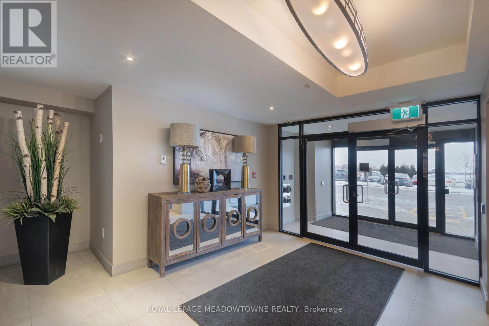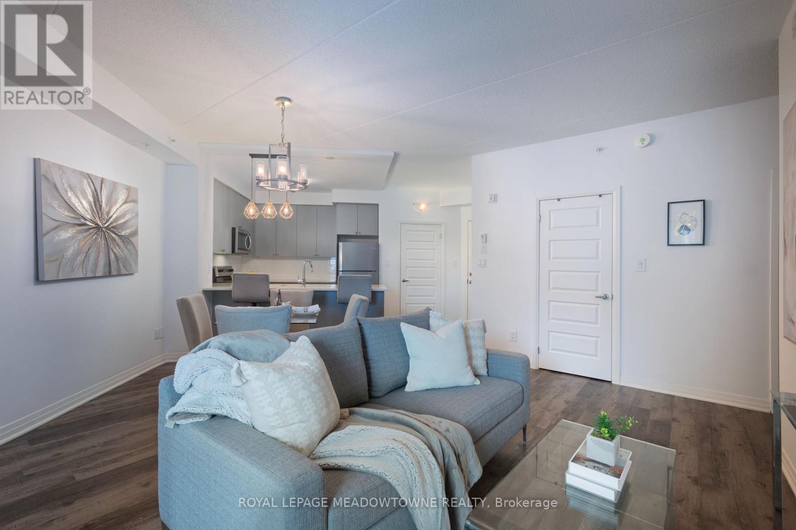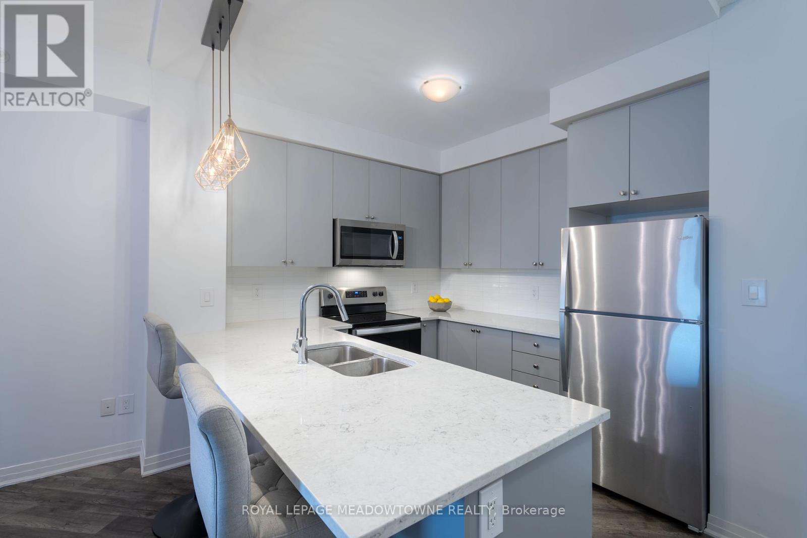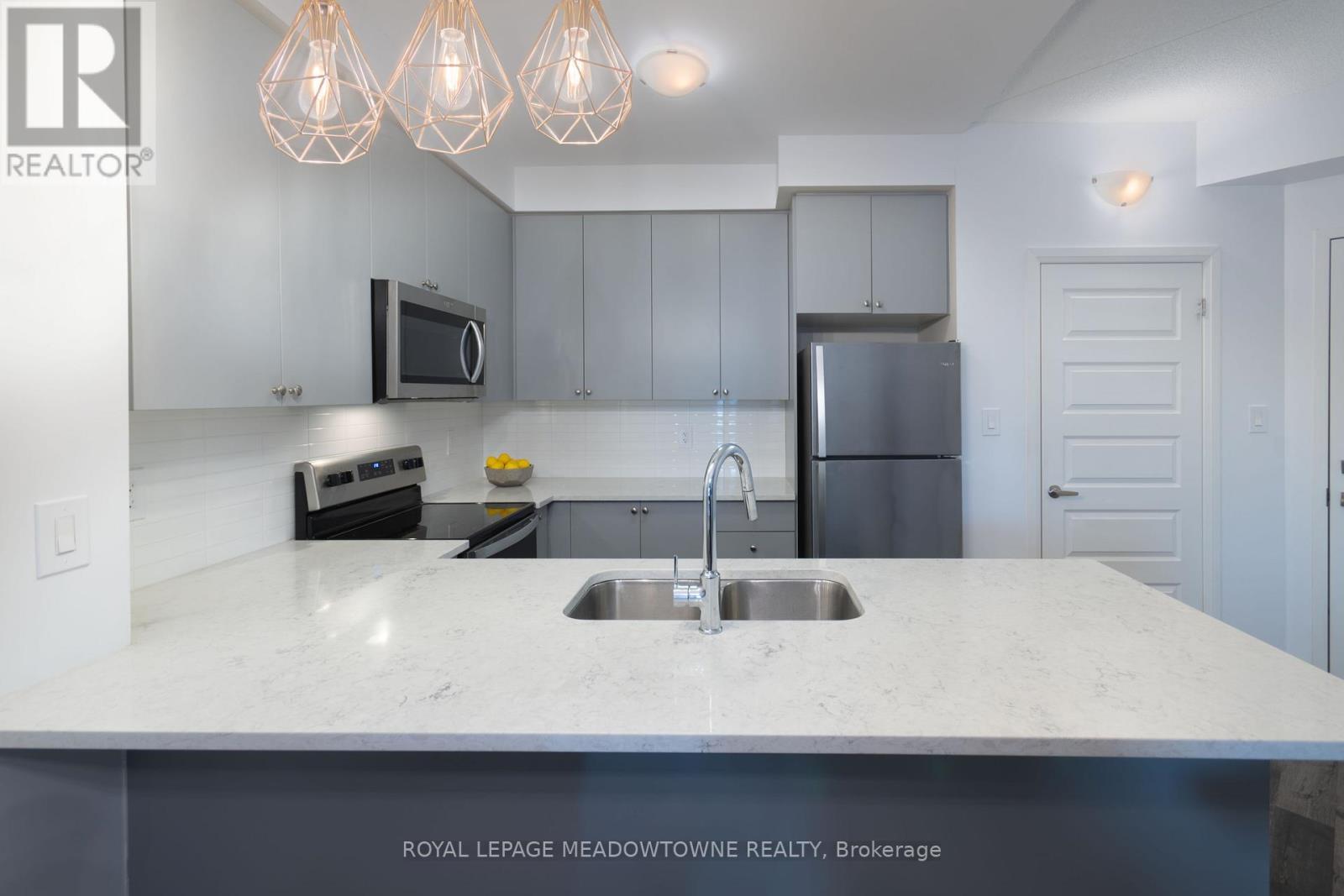 ***1 YEAR FREE MAINTENANCE FEES*** Discover stylish condo living in this beautifully designed one-bedroom suite offering a fantastic open-concept layout and upscale finishes throughout. Featuring a seamless flow from the sleek, contemporary kitchen to the bright living area, this inviting home is ideal for both relaxing evenings and entertaining guests. The chef-inspired kitchen is a true highlight, complete with stainless steel appliances, elegant countertops and backsplash, and high-end light fixtures that add a refined, sophisticated touch. The spacious bedroom easily accommodates a full bedroom set and boasts a large walk-in closet, and a perfect walkout to the private balcony. While the well-appointed bathroom offers ample storage and stylish finishes. Flooded with natural light and enhanced by quality flooring and thoughtful design details, this condo delivers both functionality and flair. Enjoy the added convenience of one underground parking space and one storage locker. Ideally located close to schools, shopping, the hospital, and with easy highway access, this is a perfect opportunity for first-time buyers, downsizers, or savvy investors. Don't miss your chance to call this stunning unit home-book your private showing today! (id:64974)