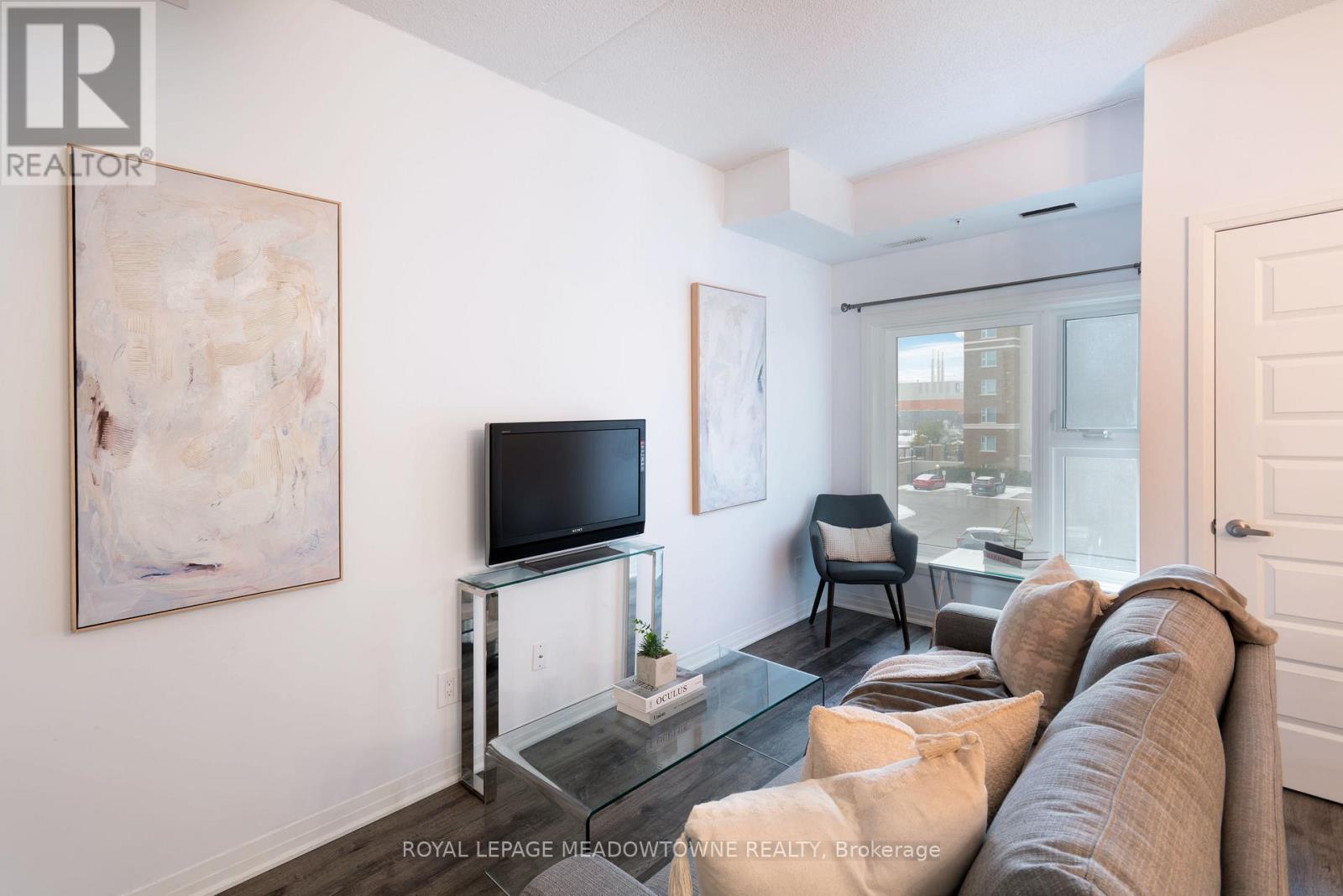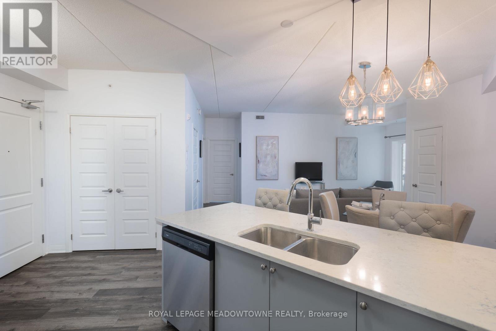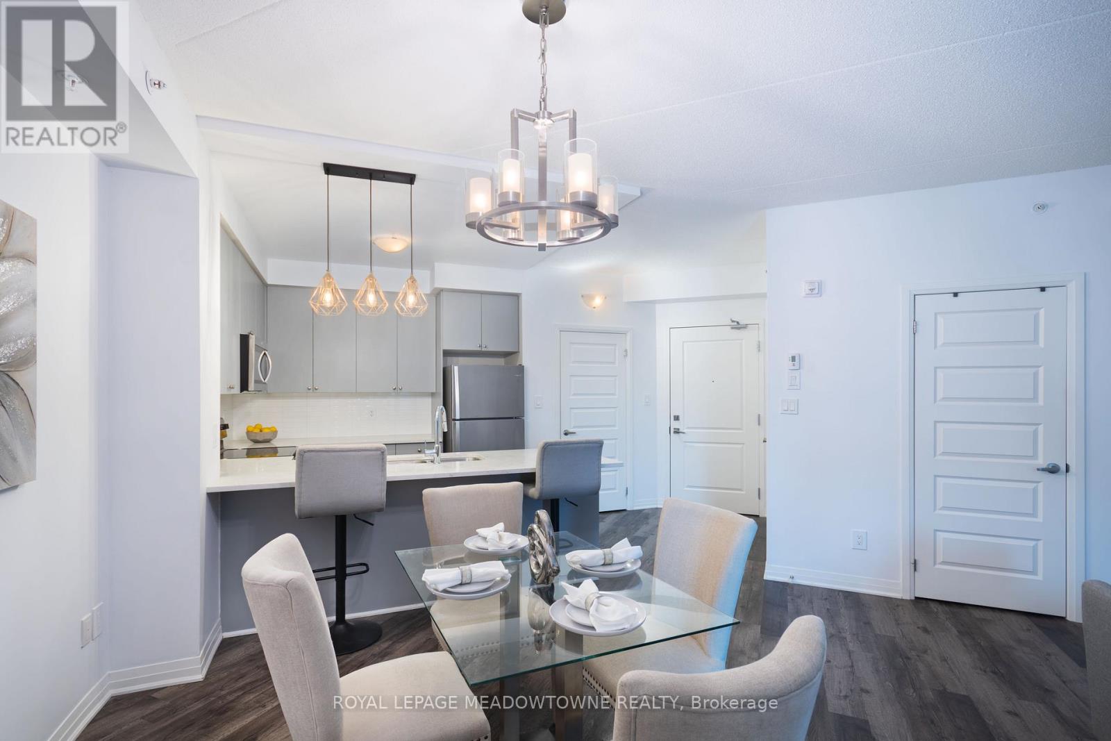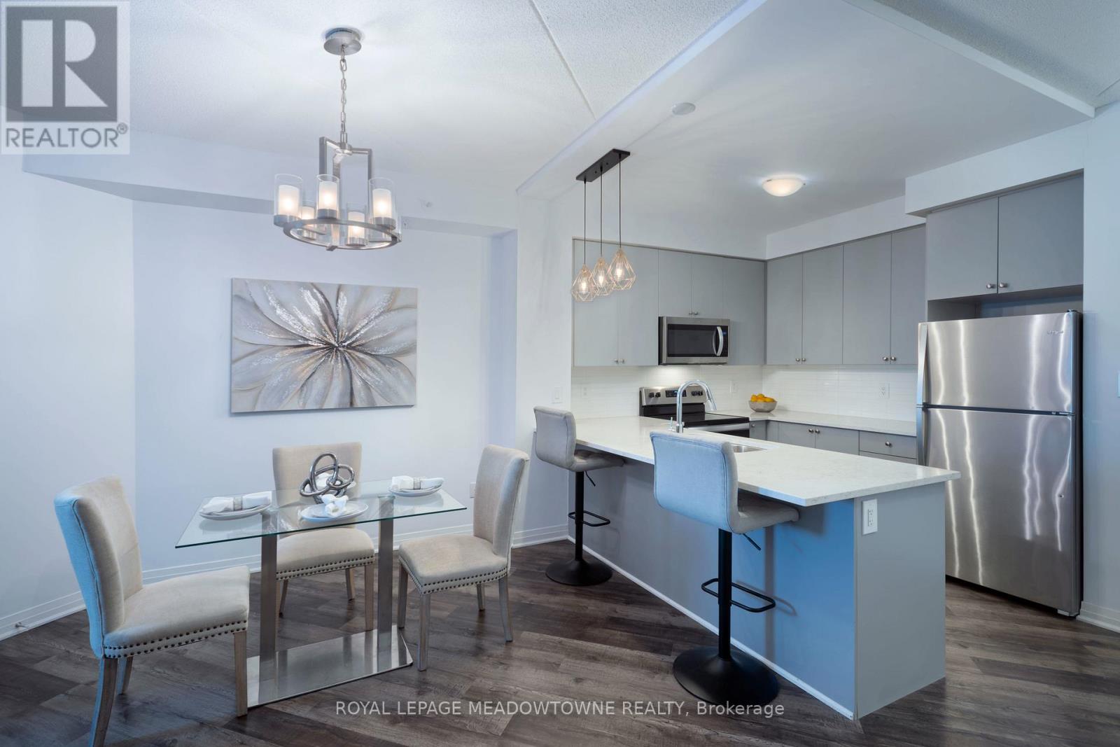 ***1 YEAR FREE MAINTENANCE FEES*** Discover stylish condo living in this beautifully designed one-bedroom suite offering a fantastic open-concept layout and upscale finishes throughout. Featuring a seamless flow from the sleek, contemporary kitchen to the bright living area, this inviting home is ideal for both relaxing evenings and entertaining guests. The chef-inspired kitchen is a true highlight, complete with stainless steel appliances, elegant countertops and backsplash, and high-end light fixtures that add a refined, sophisticated touch. The spacious bedroom easily accommodates a full bedroom set and boasts a large walk-in closet, and a perfect walkout to the private balcony. While the well-appointed bathroom offers ample storage and stylish finishes. Flooded with natural light and enhanced by quality flooring and thoughtful design details, this condo delivers both functionality and flair. Enjoy the added convenience of one underground parking space and one storage locker. Ideally located close to schools, shopping, the hospital, and with easy highway access, this is a perfect opportunity for first-time buyers, downsizers, or savvy investors. Don't miss your chance to call this stunning unit home-book your private showing today! (id:64974)