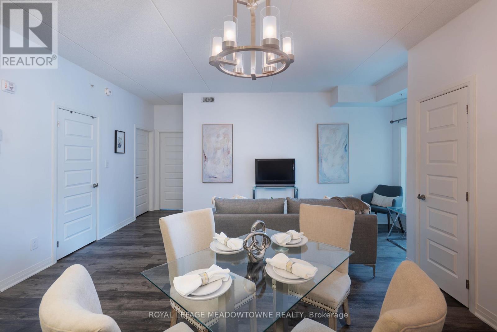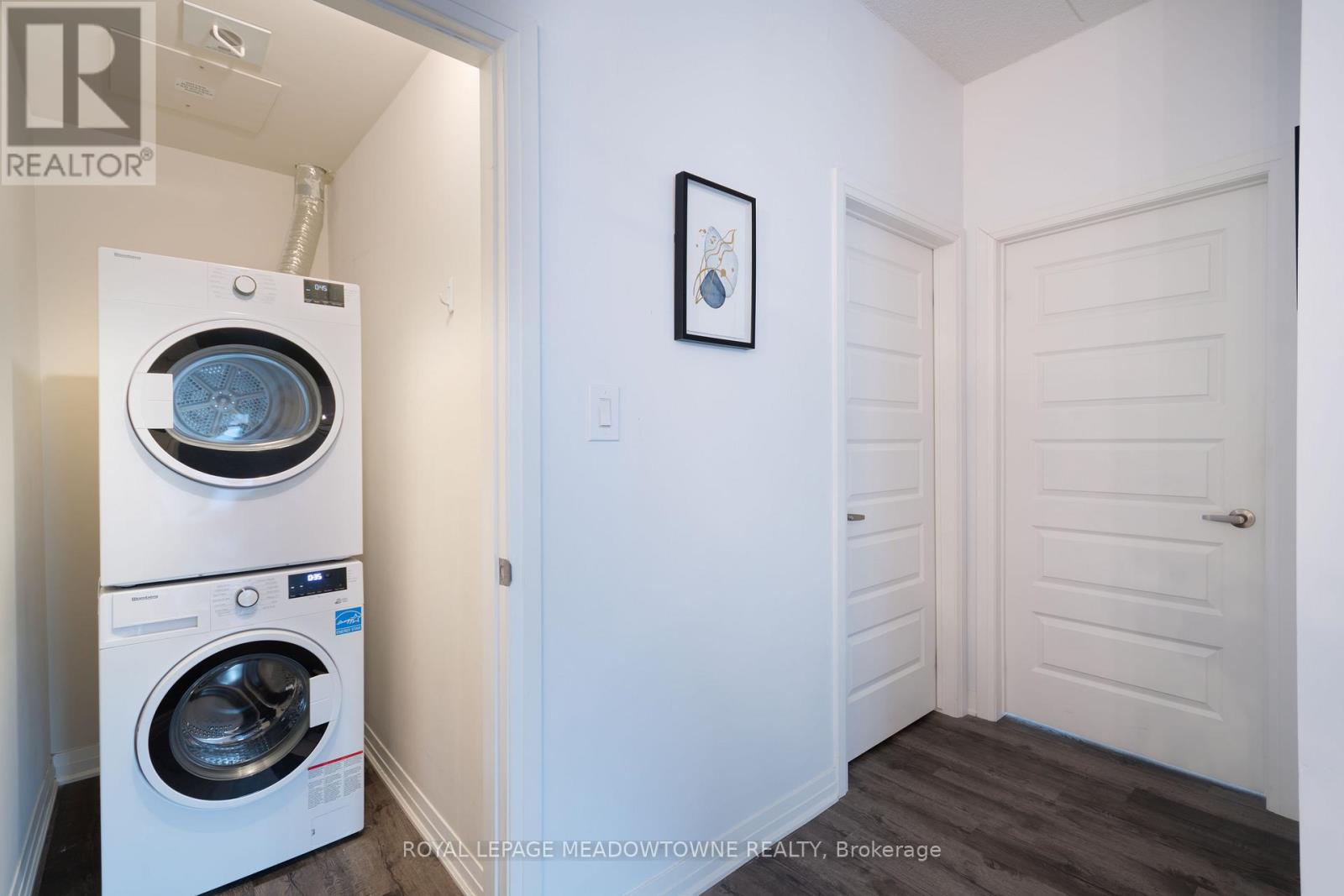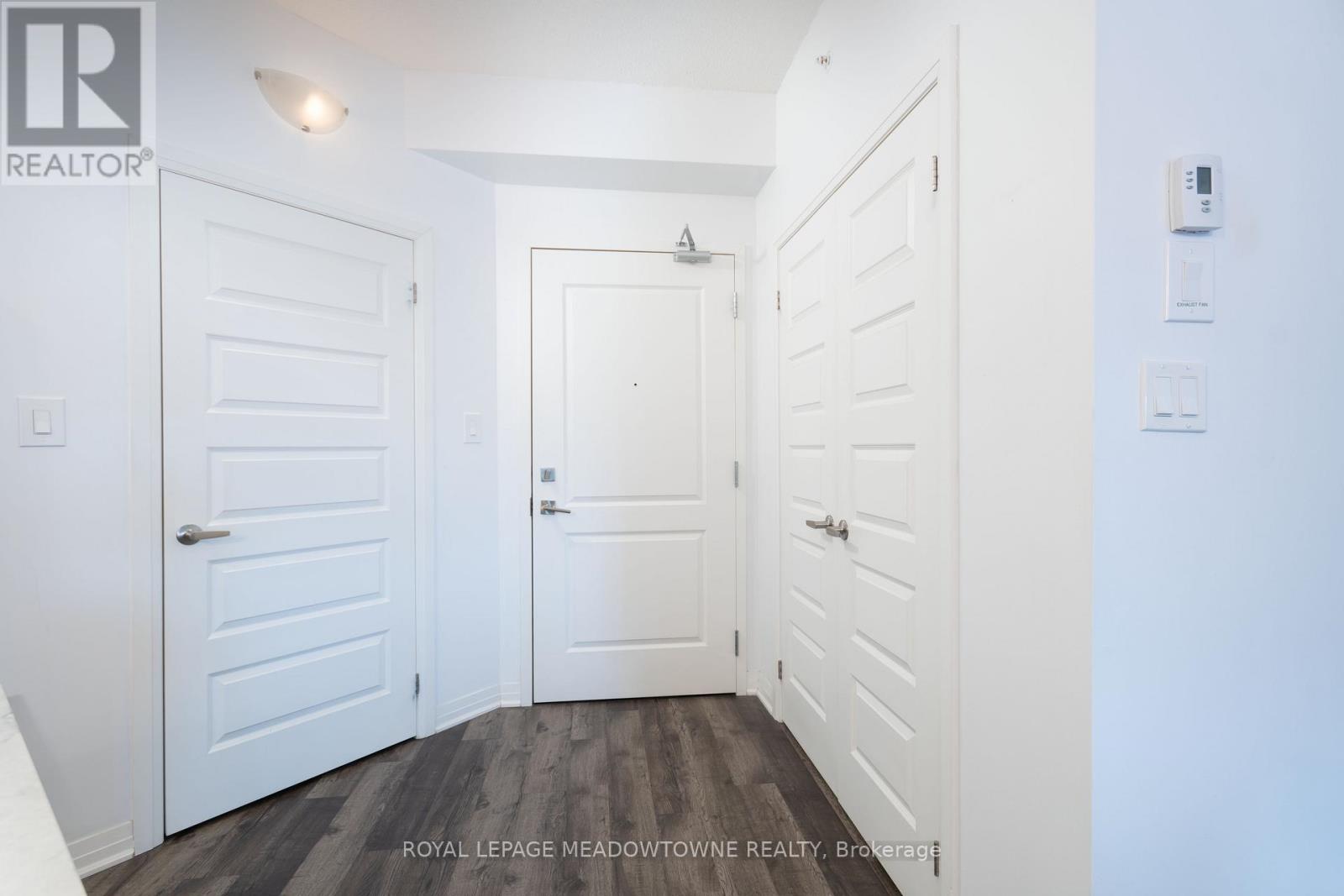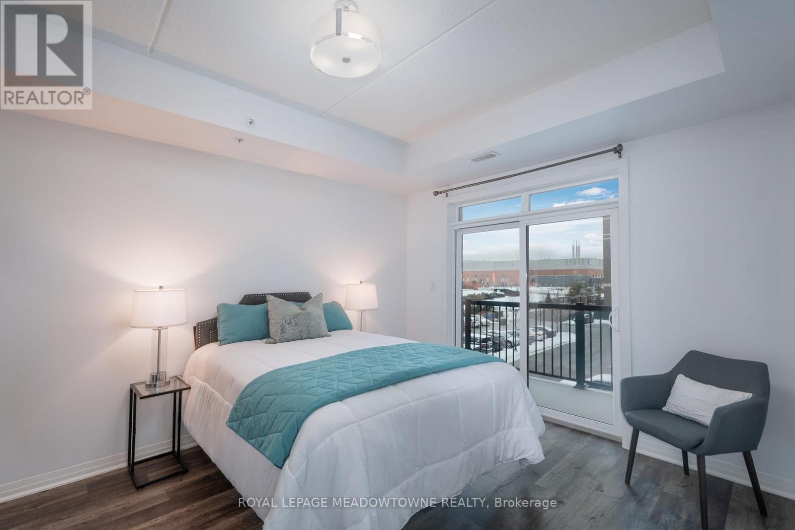 ***1 YEAR FREE MAINTENANCE FEES*** Discover stylish condo living in this beautifully designed one-bedroom suite offering a fantastic open-concept layout and upscale finishes throughout. Featuring a seamless flow from the sleek, contemporary kitchen to the bright living area, this inviting home is ideal for both relaxing evenings and entertaining guests. The chef-inspired kitchen is a true highlight, complete with stainless steel appliances, elegant countertops and backsplash, and high-end light fixtures that add a refined, sophisticated touch. The spacious bedroom easily accommodates a full bedroom set and boasts a large walk-in closet, and a perfect walkout to the private balcony. While the well-appointed bathroom offers ample storage and stylish finishes. Flooded with natural light and enhanced by quality flooring and thoughtful design details, this condo delivers both functionality and flair. Enjoy the added convenience of one underground parking space and one storage locker. Ideally located close to schools, shopping, the hospital, and with easy highway access, this is a perfect opportunity for first-time buyers, downsizers, or savvy investors. Don't miss your chance to call this stunning unit home-book your private showing today! (id:64974)
