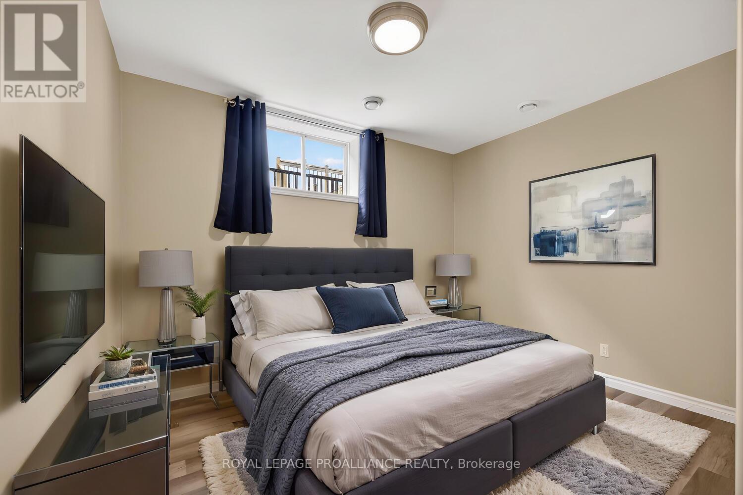 Welcome to 324 Fischl Drive, a beautifully crafted semi-detached home by Mapleview Homes, built in 2014 and thoughtfully designed with retirees and downsizers in mind. Offering 1,252 sq. ft. of well-planned living space, this carpet-free home blends comfort, style, and functionality.Step inside to a large, welcoming foyer, where you'll also find a convenient 2-piece powder room for guests. The space opens into a bright, open-concept layout featuring gleaming hardwood floors that immediately capture your attention. The spacious living room flows seamlessly to a generous back deck-perfect for entertaining family and friends or simply enjoying the outdoors.The main floor also features a convenient laundry room with built-in cabinetry for added storage and organization, along with inside access to the oversized single-car garage for everyday ease.The primary bedroom is impressively sized and includes a California Closet system, for optimal storage. A well-proportioned secondary bedroom offers flexibility for guests or a home office. A gorgeous 4-piece main bathroom completes the main level.The fully finished lower level expands your living space with a large rec room or family room, all finished in durable luxury vinyl plank flooring, making this home 95% carpet-free. The lower level, offering approx 1,000 sq. ft. of living space, is also roughed-in for a future bathroom and includes a spacious utility and storage area. Outside, the fully fenced backyard is perfect for pets and/or children, while the paved driveway and beautifully landscaped grounds enhance the home's curb appeal. Ideally located just 2 minutes from Highway 401 and 5 minutes to Highway 416, this home is perfect for commuters and is centrally situated near amenities, parks, and churches. (id:64974)
