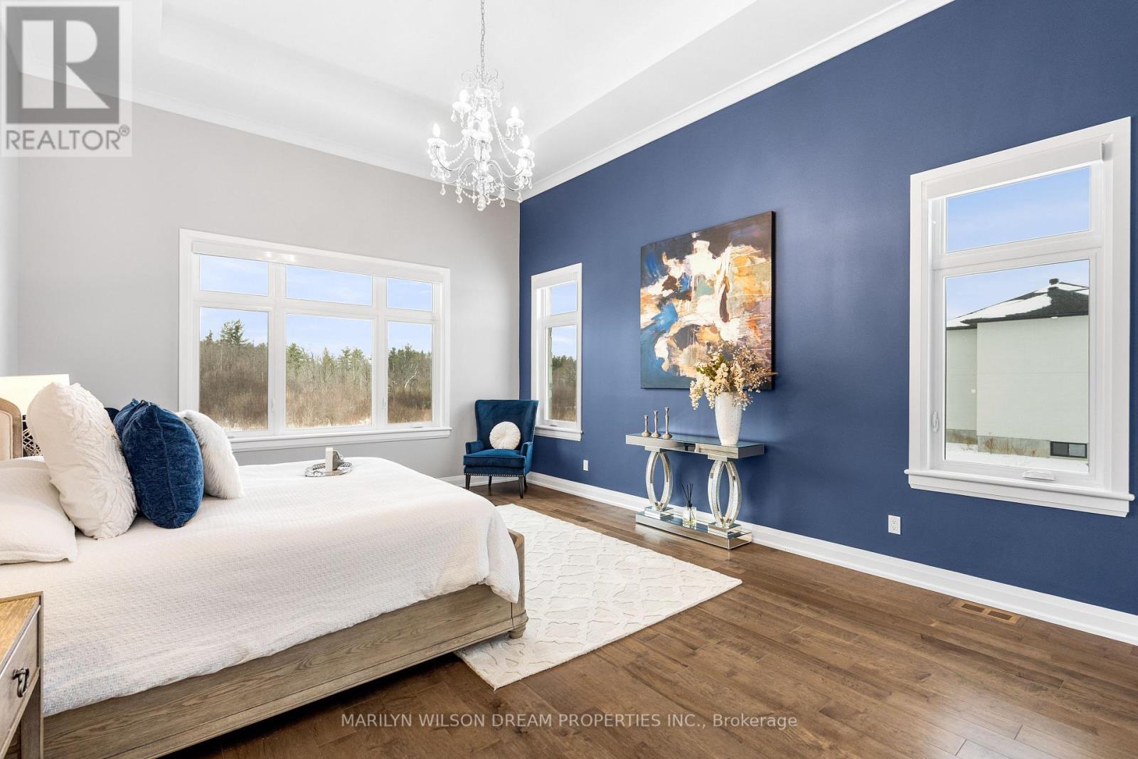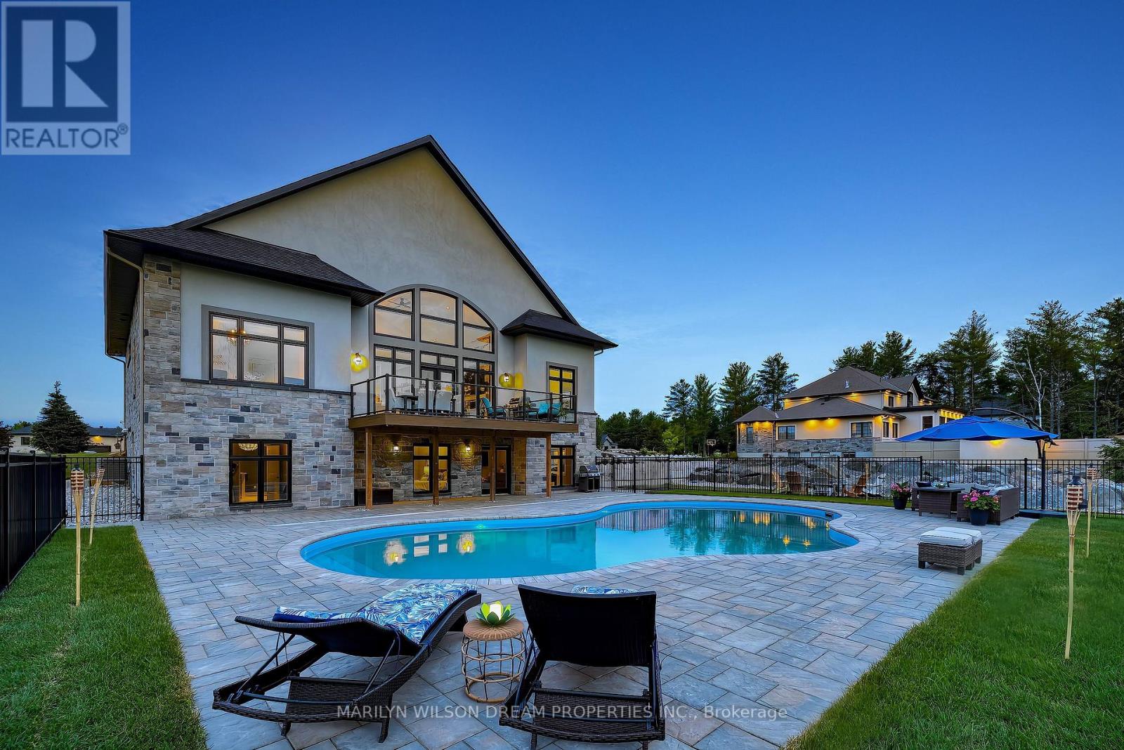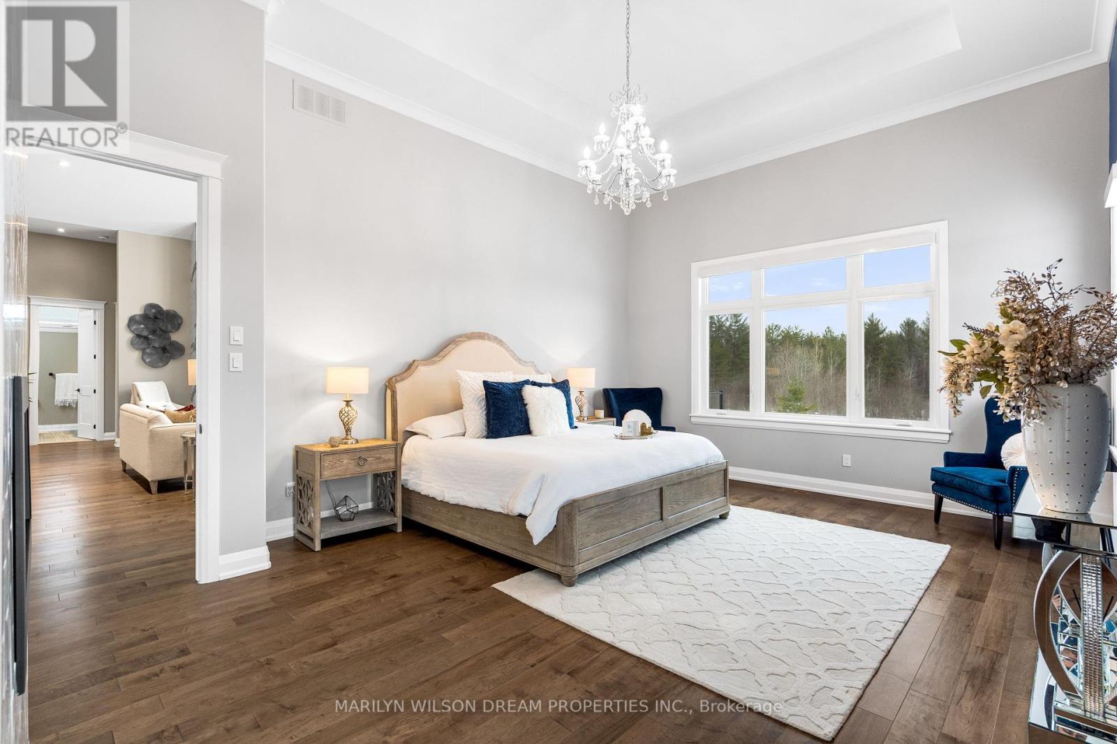 Elevate your lifestyle in this 2021-built executive bungalow at 324 Hedley Way, set on a rare, expansive 182 x 527 ft private lot in prestigious Kanata North, backing onto forest for ultimate seclusion close to everything. A grand driveway approaches the bright 3-car garage, perfect for car enthusiasts or family needs. Step Inside to soaring 12-ft ceilings throughout and a breathtaking 19-ft cathedral great room flood the home with light and volume, one-level luxury redefined. The chef's kitchen is exceptional: hand-glazed cabinetry, expansive granite island, induction cooktop with pot filler, dual ovens, Frigidaire commercial-grade fridge and freezer, dedicated wine bar, walk-in pantry, and integrated workspace. Retreat to the primary suite oasis featuring a double-sided fireplace and spa-like ensuite with oversized 6.5 x 6 ft glass shower, deep soaker tub, dual vanities, private water closet, and massive walk-in closet. The primary suite alone lives like a luxury condo, bedroom, spa bath, and boutique walk-in totalling over 700 square feet. A custom staircase descends to the bright walkout lower level (9'6" ceilings, in-floor radiant heat) boasting a dedicated theatre room, wet bar, games area, and two additional bedrooms sharing a Jack & Jill bath, ideal as a second living space. Outside, resort-style bliss awaits: multi-tiered landscaping, mature forest privacy, and a heated saltwater pool. Your private escape, just minutes from Kanata's tech hub and amenities. True refined resort living in one of Ottawa's most sought-after enclaves. Don't miss this exceptional opportunity. (id:64974)