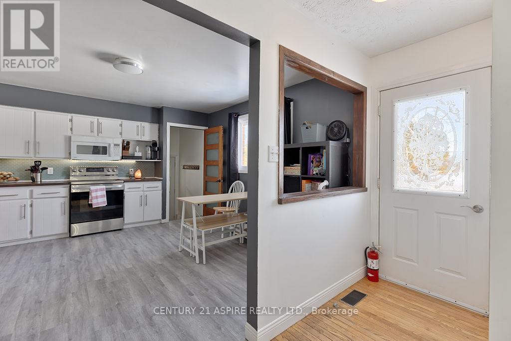 Here's your opportunity to step into homeownership with a property that truly offers space, comfort, and the beginnings of a homesteading lifestyle. Nestled along B-Line and surrounded by open fields, this inviting 4-bedroom, 1-bath home blends rural charm with everyday convenience-just minutes from town and all amenities. Inside, you'll find a bright, move-in ready interior featuring a modern kitchen, updated bathroom, and warm hardwood floors throughout the main level. Three generously sized bedrooms are thoughtfully located on the same floor, making it ideal for families. The fully finished basement adds even more living space with a fourth bedroom, a cozy family room, and a large laundry/workshop area-perfect for hobbies or extra storage. Step outside and discover a backyard designed for both family living and self-sufficiency. Fully fenced and expansive, this property is ready for your homesteading dreams with a chicken coop, greenhouse, and plenty of room for gardens, play areas, or simply enjoying the peaceful surroundings. Kids and pets can roam safely while you take in the wide-open views of the neighbouring fields. A convenient breezeway connects the home to the attached garage, adding function and ease year-round. With a durable metal roof installed in 2015 and all appliances included, this home is truly turn-key. A rare blend of country living, family-friendly features, and close-to-town convenience-don't miss your chance to make it yours! (id:64974)