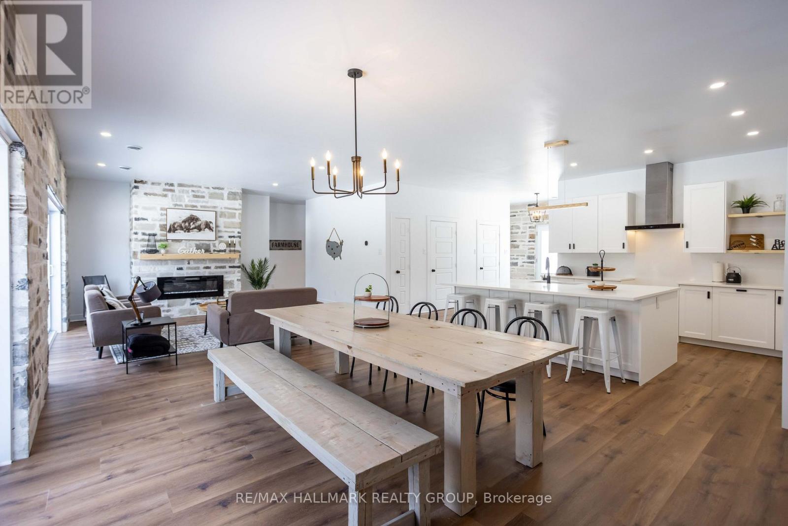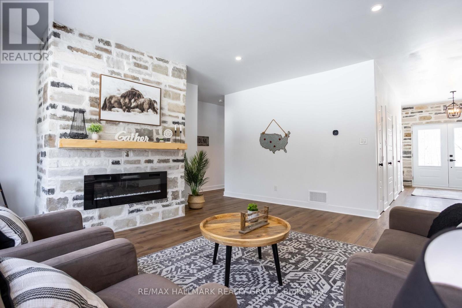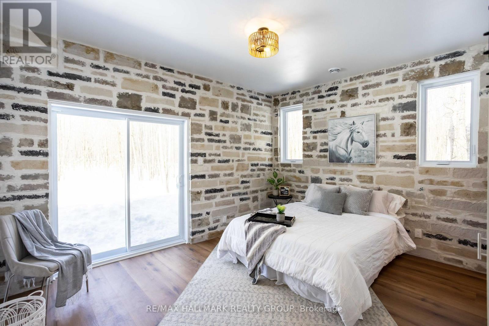 OPEN-HOUSE: MAR 14, SAT 2-4PM! Welcome to this stunning brand new custom-built stone bungalow set on 3.2 private acres, offering a rare blend of luxury, craftsmanship & peaceful country living surrounded by nature. Tucked among mature trees with a natural creek along the back of the property, this home offers exceptional privacy & a tranquil setting that feels like your own private retreat. Inside, the home showcases striking architecture with 10 ft ceilings, expansive windows, & extensive natural stonework that adds warmth & timeless character throughout. High-end luxury vinyl flooring with a durable anti-scratch finish flows seamlessly across the entire home.The open-concept living & dining space is designed to capture the beauty of the surrounding landscape. A stunning stone feature wall with fireplace anchors the room & serves as the focal point, while large sliding doors invite natural light inside & create a seamless connection between indoor living & the peaceful outdoor setting.The kitchen features premium cabinetry, quartz countertops, & a clean modern design that blends functionality with refined style while remaining perfectly connected to the main living space for entertaining.The home offers 3 spacious bedrooms & 2 beautifully finished bathrooms, including a serene primary suite with a walk-in closet & spa-inspired ensuite featuring a double vanity & glass shower. The primary bedroom also offers direct access to the backyard, allowing you to step outside & enjoy the quiet natural surroundings.Comfort & efficiency are enhanced by a high-end heating system valued at approximately $45,000, featuring heated floors throughout the home combined with a thermal heat pump & furnace system. Additional features include an HRV air exchange system & tankless hot water heater.The impressive heated garage offers approximately 1,400 sq ft of space & features a heated garage floor, providing excellent flexibility for vehicles, storage, hobbies, or workshop use. (id:64974)