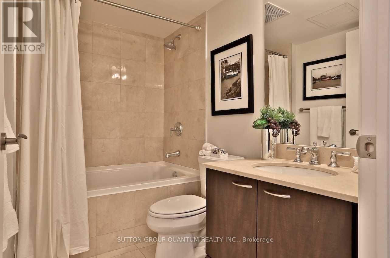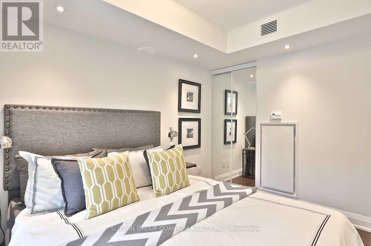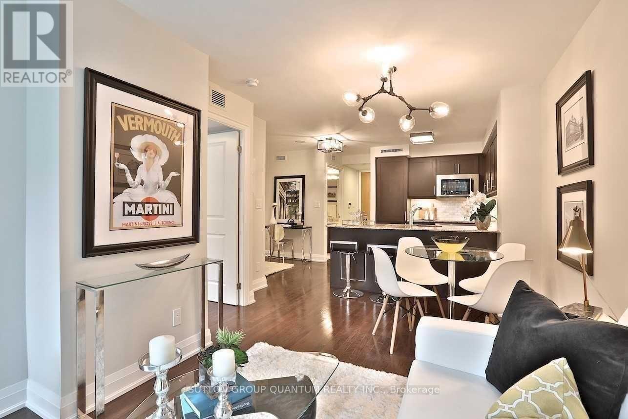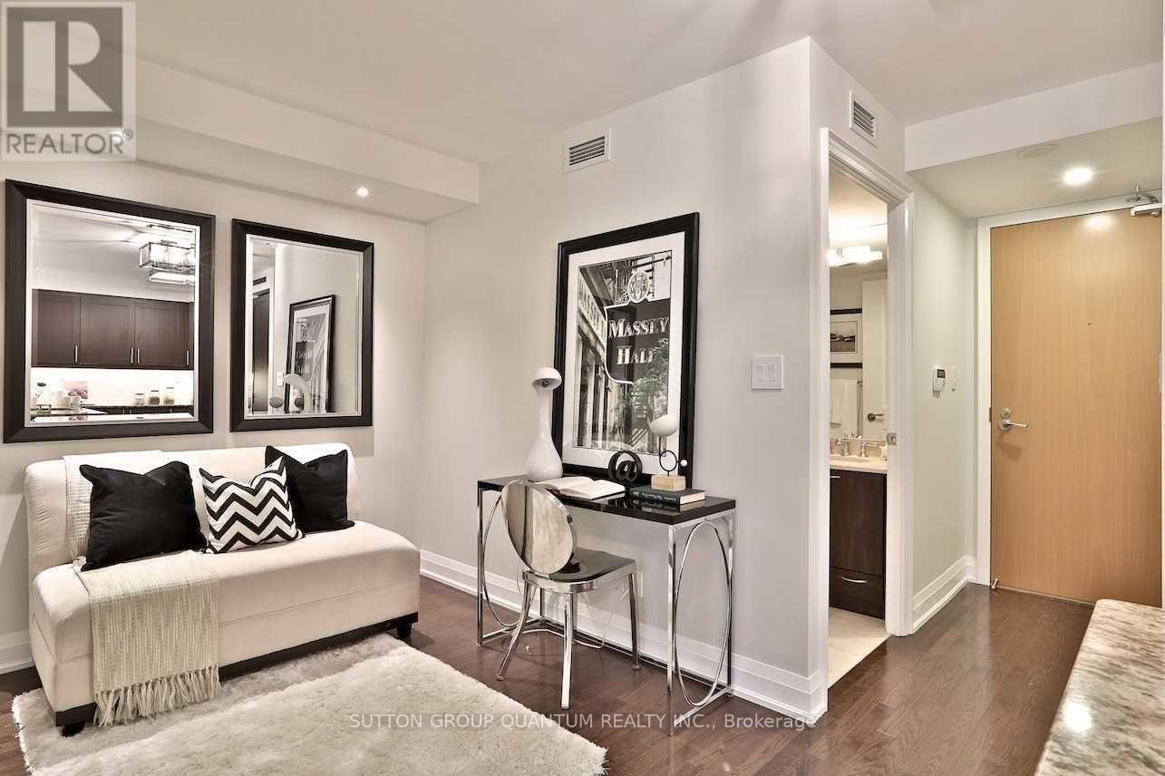 Welcome To The Private Residences At One Bedford At Bloor. This 1 Bedroom + Den Suite Features Approximately 597 Interior Square Feet. Designer Kitchen Cabinetry With Stainless Steel Appliances, Granite Countertops, An Undermount Sink, Under Cabinet Lighting & A Breakfast Bar. Bright Floor-To-Ceiling Windows With Hardwood Flooring Throughout With A Large Full Length Balcony Facing Quiet Inner Courtyard Views. A Spacious Sized Bedroom With A Mirrored Closet & Large Windows. The Separate Den Area Is Perfect For A Home Office Or Dining Area. Steps to Bloor Street - Yorkville Shopping District, T.T.C. St. George Subway Station, Shoppers Drug Mart, Starbucks, Tim Hortons, Restaurants, Cafes, Museums & Universities. 1-Parking Space & 1-Locker Is Included. Visitors Parking. Click On The Video Tour! (id:64974)