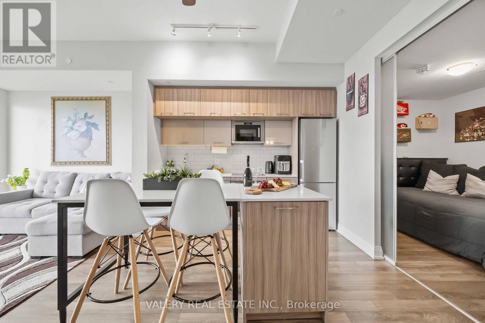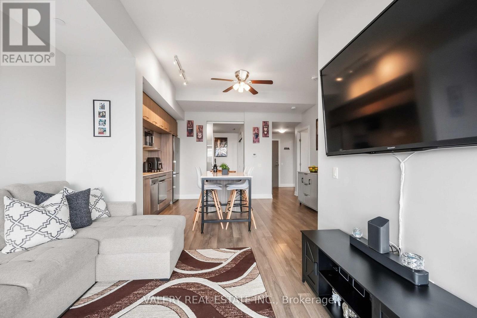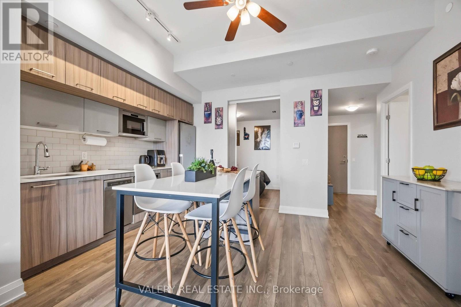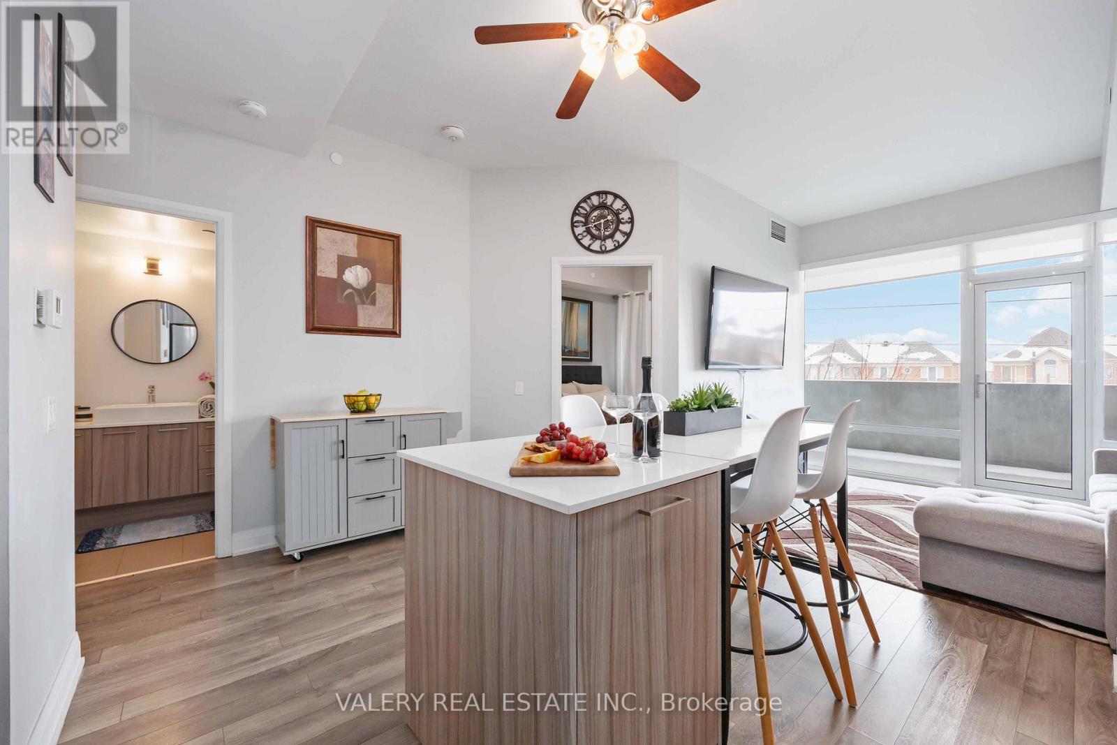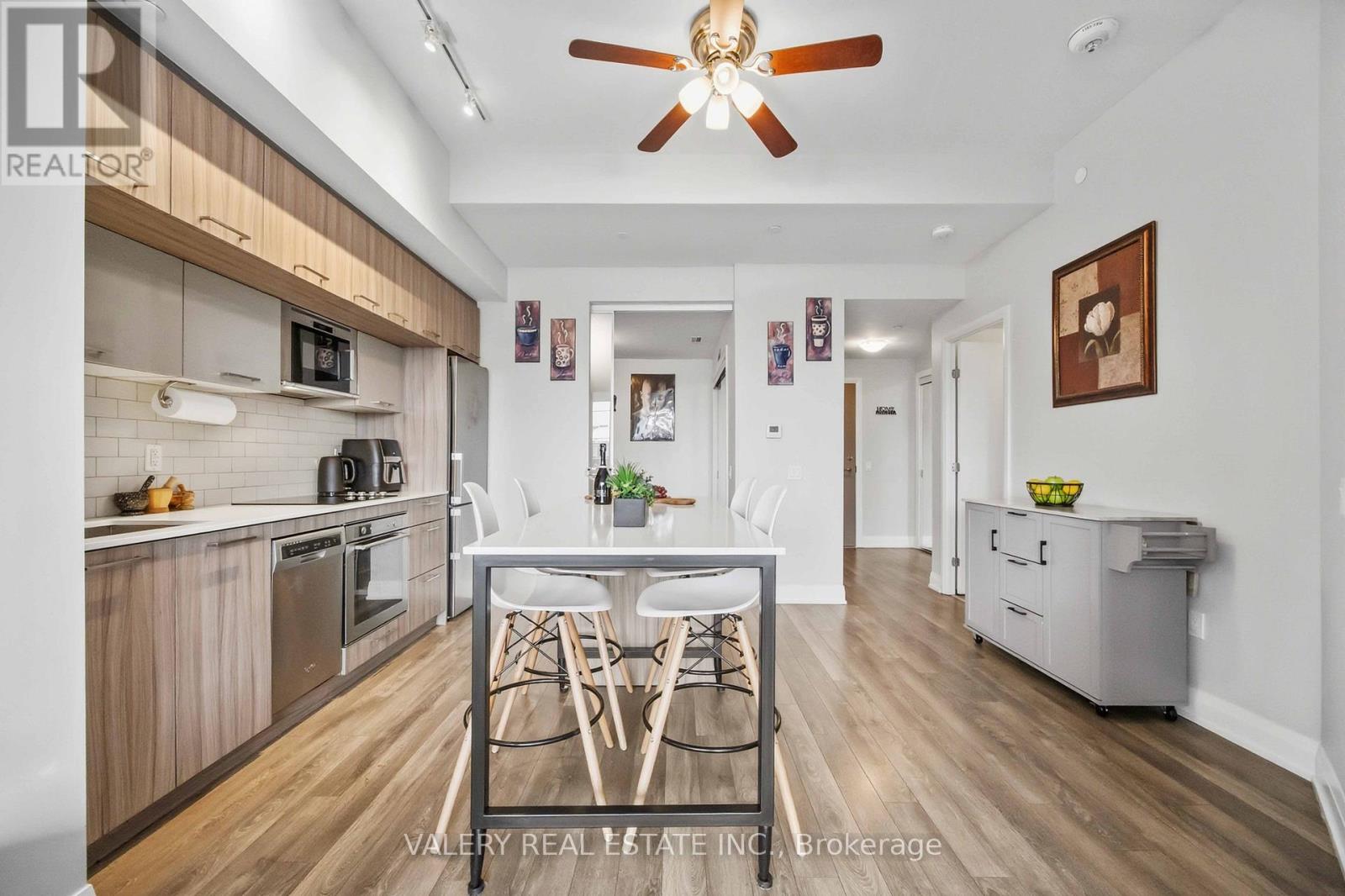 At the edge of East Woodbridge, where neighbourhood calm meets everyday convenience, a quiet rhythm unfolds at 4800 Highway 7. Perched on the third floor with a sought-after south exposure, Suite 325 is filled with steady natural light that carries through the open-concept layout from morning into late afternoon. The kitchen anchors the home with stainless steel appliances, a functional island for gathering, and clean modern finishes that invite both casual meals and unhurried evenings. From the living space, a walk-out balcony becomes an extension of the home, a place to pause, breathe, and take in clear, open views beyond the building.Two well-proportioned bedrooms offer flexibility for growing households, a dedicated work-from-home setup, or overnight guests. The primary bedroom is thoughtfully designed with a double closet and large windows, while the second bedroom easily adapts to changing needs. Ensuite laundry, and a practical floor plan make daily living effortless and efficient. Beyond the suite, the building experience elevates everyday life. Concierge service, an outdoor pool, party and meeting rooms, bike storage, visitor parking, kids playground, and even a car wash reflect a residence designed with comfort and convenience in mind. One owned underground parking space and an owned locker add rare value and ease. Set along Highway 7 at west of Pine Valley, this location offers seamless access to transit, major routes, shops, dining, and the established charm of East Woodbridge. It is a home that balances connection and calm, movement and retreat. Suite 325 is not just a place to live. It is a place to settle into a rhythm that feels both grounded and effortlessly connected. (id:64974)
