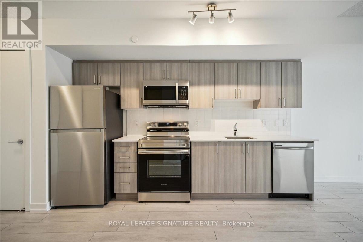 Welcome to The Dylan Condos - a boutique lifestyle residence where striking design meets modern sophistication. This beautifully appointed one-bedroom plus den suite offers exceptional versatility, with the den easily adaptable into a second bedroom to suit your needs. Inside,you'l1 find contemporary finishes throughout, including a sleek open-concept kitchen with stylish cabinetry, elegant stone countertops, and wide-plank flooring that seamlessly ties the space together. Ideally located just a three-minute walk to Glencairn Subway Station and moments from the Eglinton Crosstown LRT, residents enjoy effortless connectivity. Surrounded by shopping, dining, convenient highway access, and nearby green spaces, the location offers the best of urban living.Indulge in an array of premium amenities, including 24/7 concierge service, a fully equipped fitness centre, games room, outdoor dining and grilling areas, a pool and terrace, an entertaining kitchen, and a guest suite for visiting friends and family. Discover the perfect balance of comfort, convenience, and refined luxury at The Dylan Condos. (id:64974)