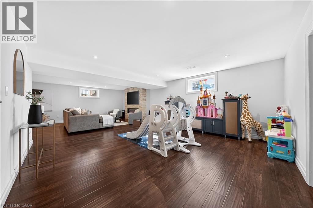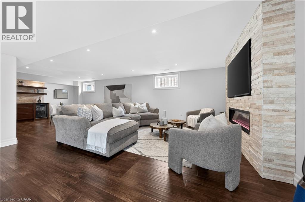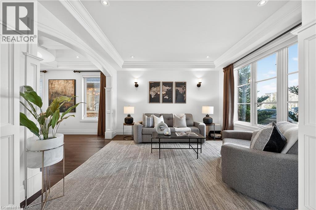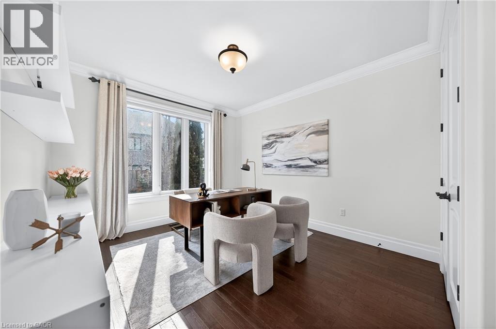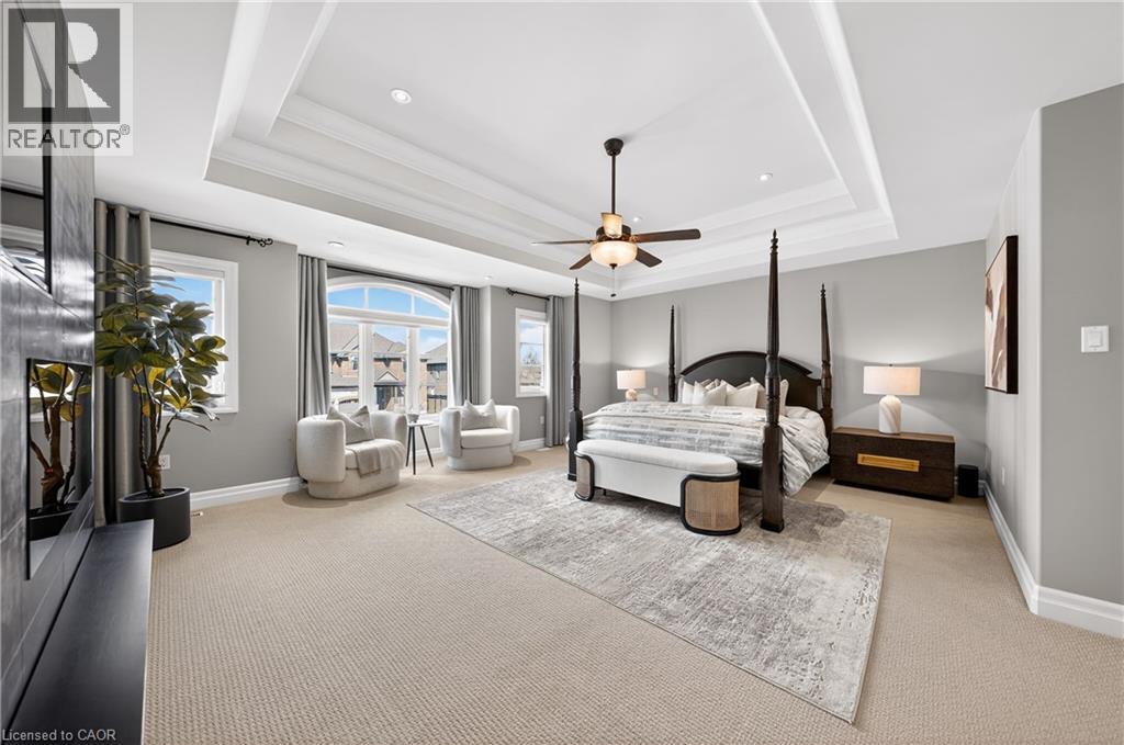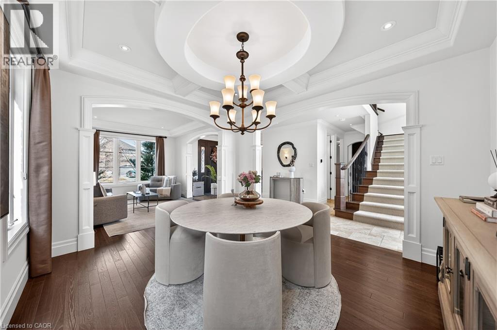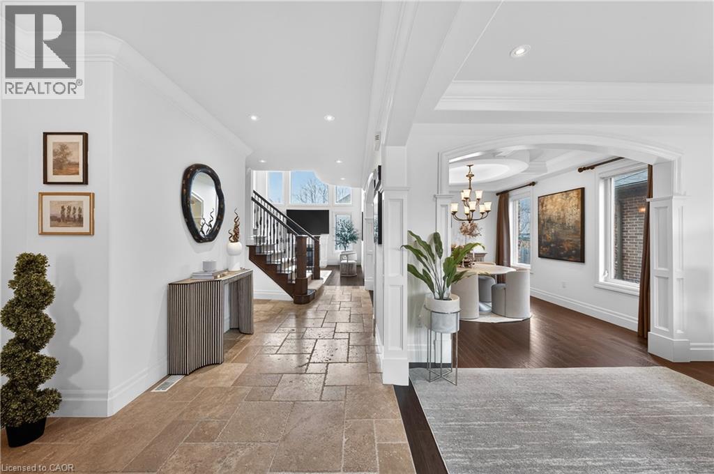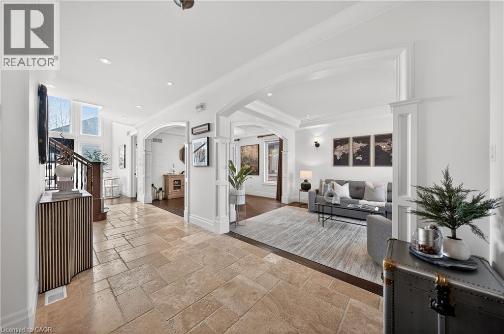 This is your Carriage Crossing dream home. Welcome to 325 Deerfoot Trail, located in one of Waterloo’s most sought-after communities. This custom Klondike-built home offers 5,300+ SF of beautifully finished living space, with 4+1 bedrms & 4 bathrms, thoughtfully designed with quality craftsmanship, timeless finishes, & functional family living. Step inside the grand entry opening to formal living & dining rms with coffered ceilings & detailed millwork. The home is anchored by a stunning 2-storey great rm with gas fireplace & oversized windows flooding the space with natural light. The well-appointed Chervin kitchen features a lrg centre island, granite counters, premium appliances, under-cabinet lighting, backsplash, & a bright breakfast area with walkout to the backyard & covered back porch. The main flr also offers a private office/potential 6th bedrm, mudrm/laundry rm, & powder rm. Upstairs offers 4 spacious bedrms, including an expansive primary retreat with tray ceiling, feature wall with linear electric fireplace, sitting area, walk-in closet with built-ins, additional dual closets, & a 5-pce ensuite with dual vanities, tiled glass shower, & jacuzzi tub. 3 additional sizable bedrms & a 5-pce main bathrm complete the upper level. The fully finished lower level features a lrg rec rm with electric fireplace, additional bedrm, 3-pce bathrm, wet bar (in-law potential), & ample storage. Hardwood & natural stone flring, custom ceiling treatments, crown moulding, curated millwork, & custom window coverings throughout. Set on a professionally landscaped lot with interlocking driveway, covered back porch, expansive patio, & fully fenced private backyard with mature trees, hardscaping, & perennial gardens. Located just mins to top-rated schools, U of W & Wilfrid Laurier University, RIM Park, Grey Silo Golf Club, trails, St. Jacobs Market, & major commuter routes. A rare opportunity to own a beautifully finished home in one of Waterloo’s most desirable neighbourhoods. (id:64974)