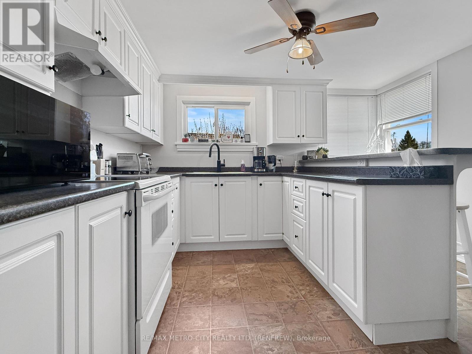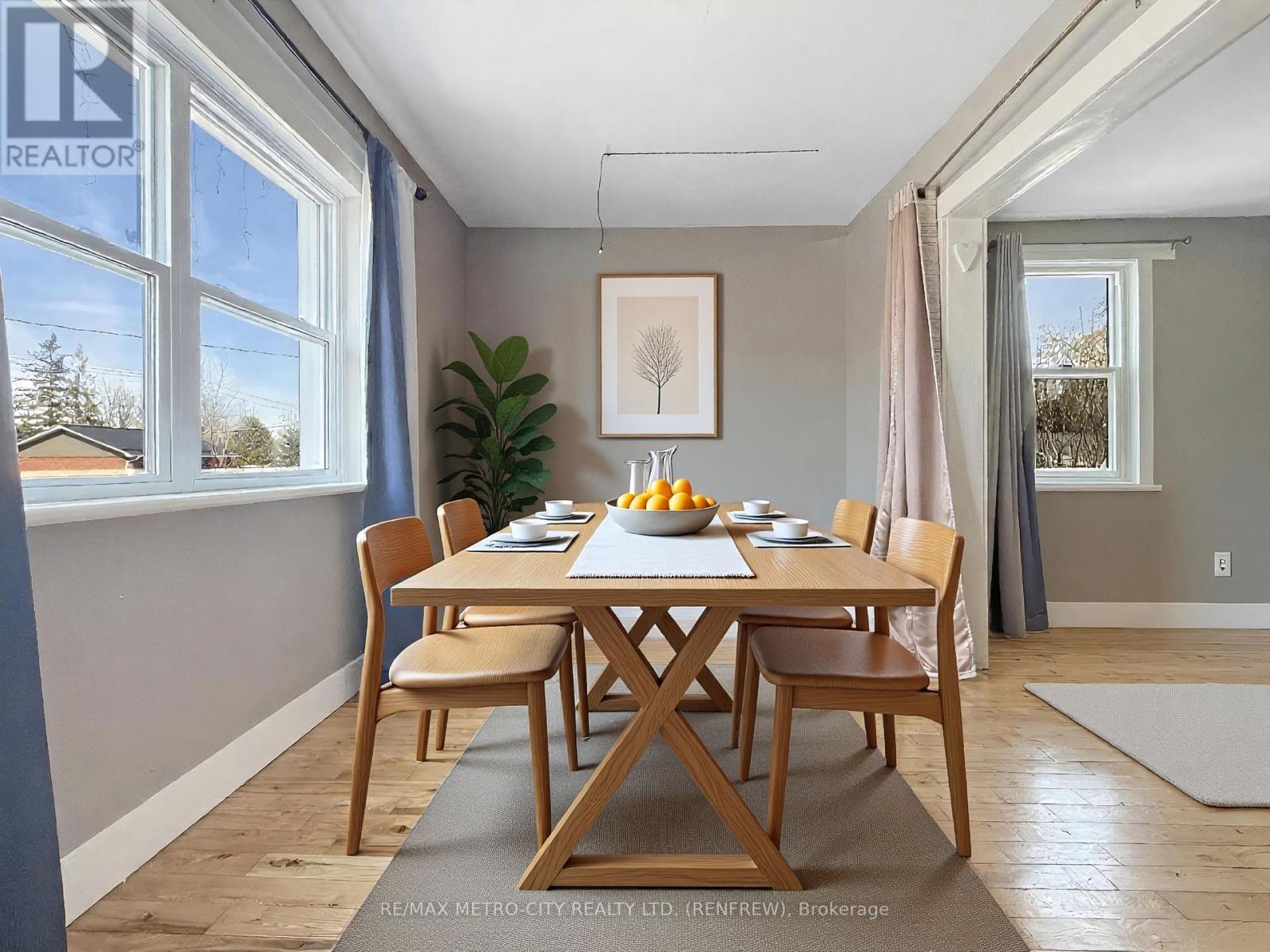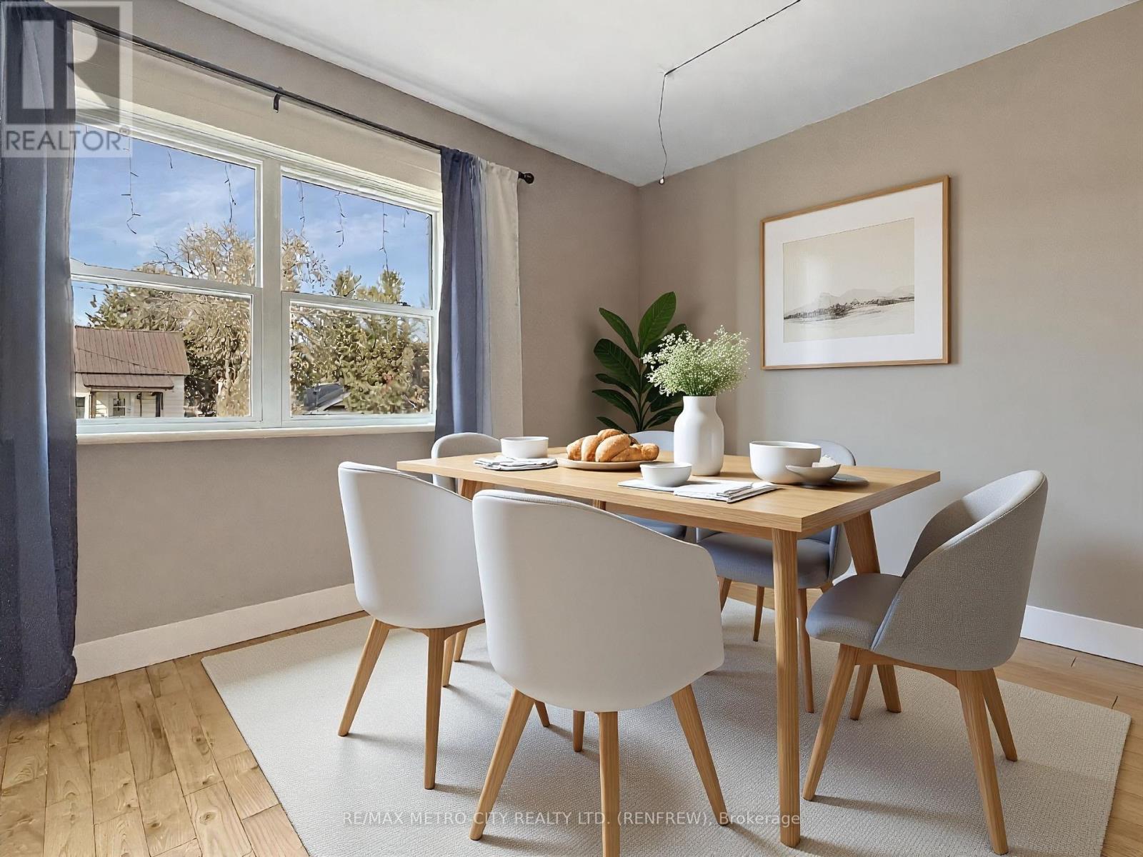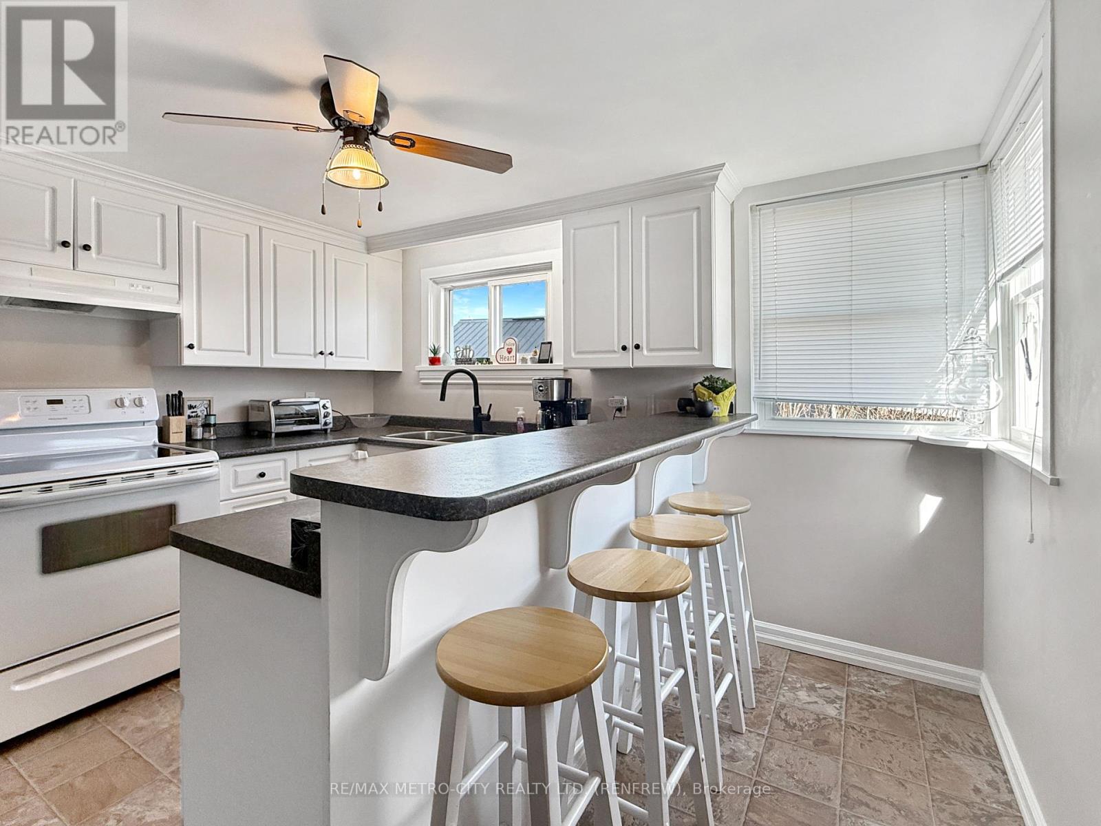 Charming and affordable, this 1.5-storey home is a great opportunity for first-time buyers or anyone looking to get into the market. Offering two bedrooms and 1.5 baths, the home features a bright eat-in kitchen, a formal dining room currently used as a third bedroom, and a comfortable family room perfect for everyday living. Step outside to enjoy the spacious rear yard, ideal for kids, pets, or entertaining. Set on a quiet street within walking distance to the myFM Centre, local schools, scenic trails, and Downtown Renfrew, this home offers both convenience and lifestyle. Important updates include the roof (within the last six years), as well as windows and kitchen improvements completed within the last 15 years. A fantastic chance to own an inviting home in a great location. Water averages $90/month, hydro $95/month and gas $95/month. All offers must have a minimum 24 hrs irrevocable. (id:64974)
