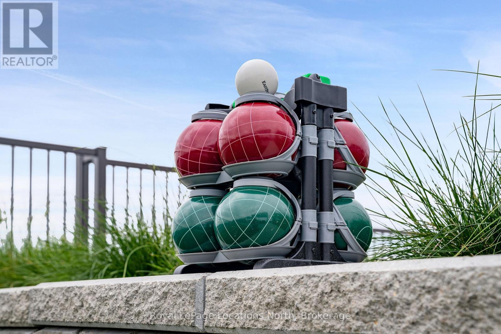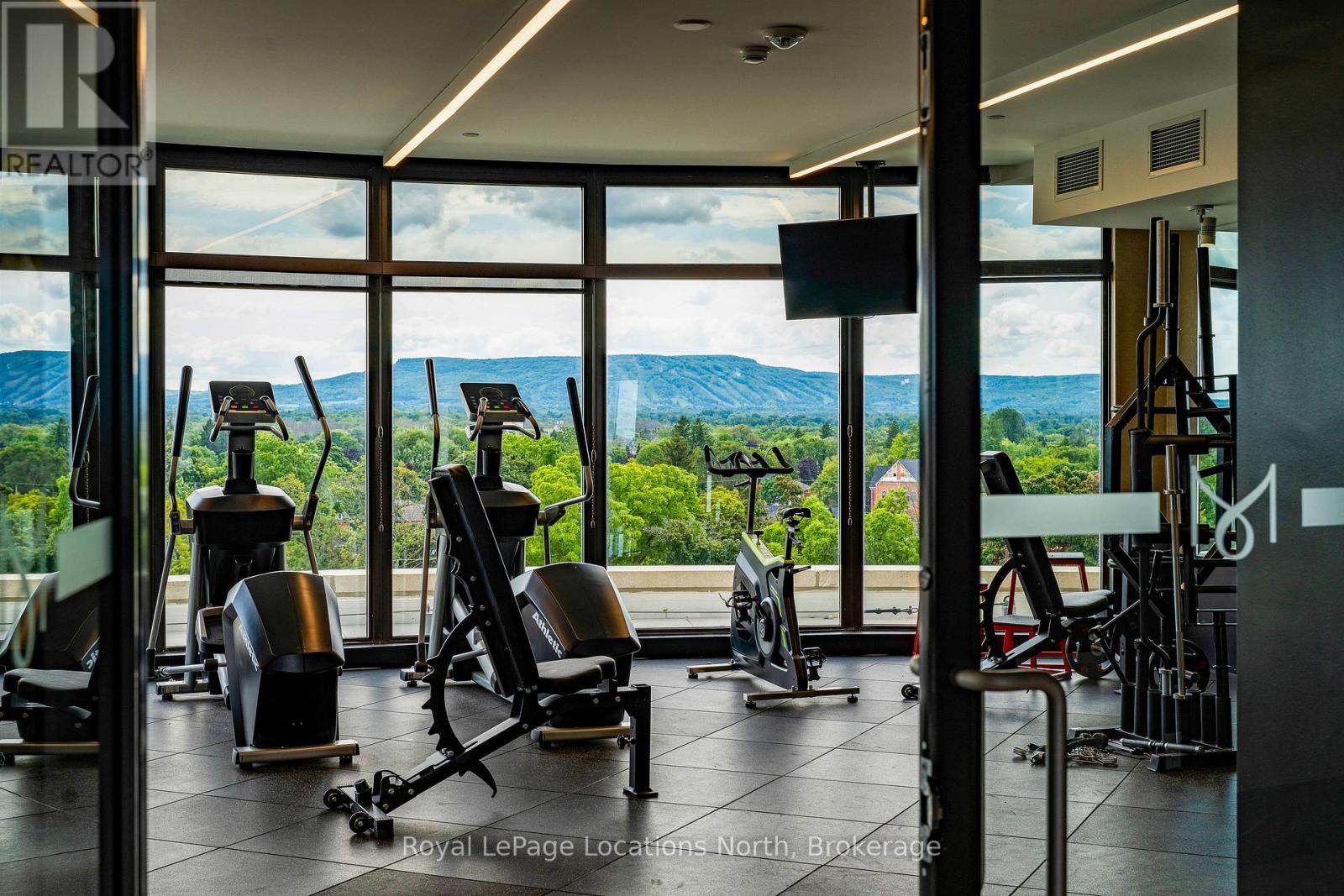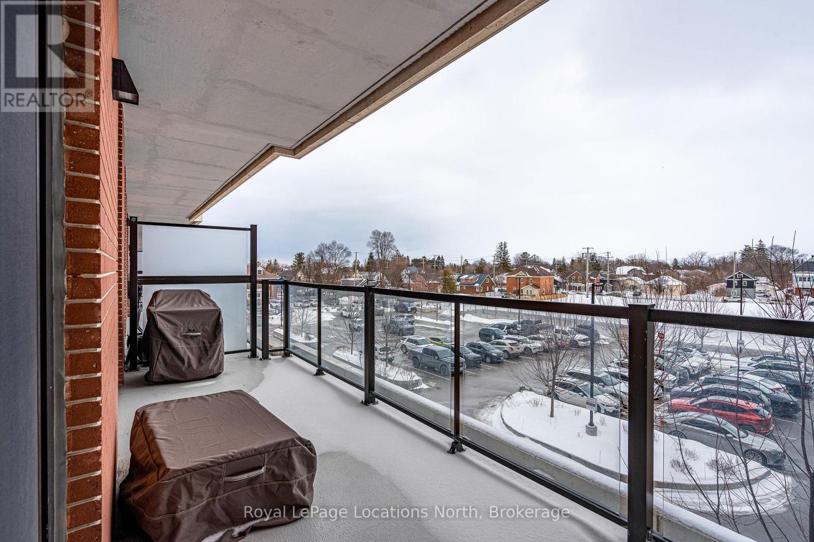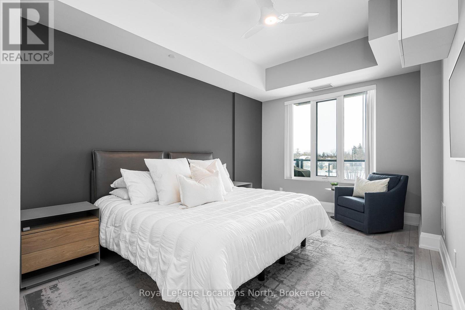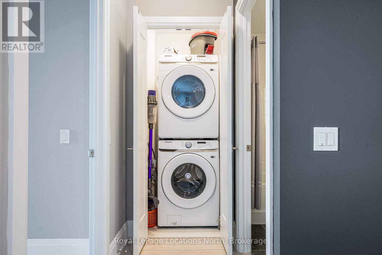 Experience refined living at Monaco, downtown Collingwood's most coveted address. This beautifully appointed "Beatrice" model offers 1,150 sq. ft. of thoughtfully designed space, featuring 10-foot ceilings and an open-concept layout filled with natural light. This particular unit stands out with its generous 226 sq. ft. private terrace spanning the full width of the condo, an incredible extension of your living space and the perfect spot for summer evenings, morning coffee, or entertaining friends. Inside, you'll find two spacious bedrooms plus a versatile flex space ideal for a home office or welcoming entry/mudroom. The primary suite offers a spa-inspired ensuite complete with a walk-in glass shower, double vanities and walk-in closets. The second bedroom is equipped with a built-in Murphy bed and enjoys access to its own private bathroom, perfect for guests. The kitchen is stylish and functional, featuring quartz countertops, ceramic tile backsplash, stainless steel appliances and a large island that connects to the living area, ideal for hosting and everyday living. Residents of Monaco enjoy exceptional amenities, including a stunning rooftop terrace with waterfall and fire pit, alfresco dining area with BBQs, an indoor social lounge with bar and a fitness centre overlooking Blue Mountain. Additional features include secure FOB entry, underground parking with two dedicated spaces, a large storage locker, Wi-Fi-enabled common areas and a pet-friendly atmosphere. With direct access to Collingwood's vibrant main street, you're just steps from restaurants, shops and the waterfront. The on-site upscale market and café add another layer of convenience and community. This is effortless luxury living in the heart of Collingwood where lifestyle truly meets location. (id:64974)