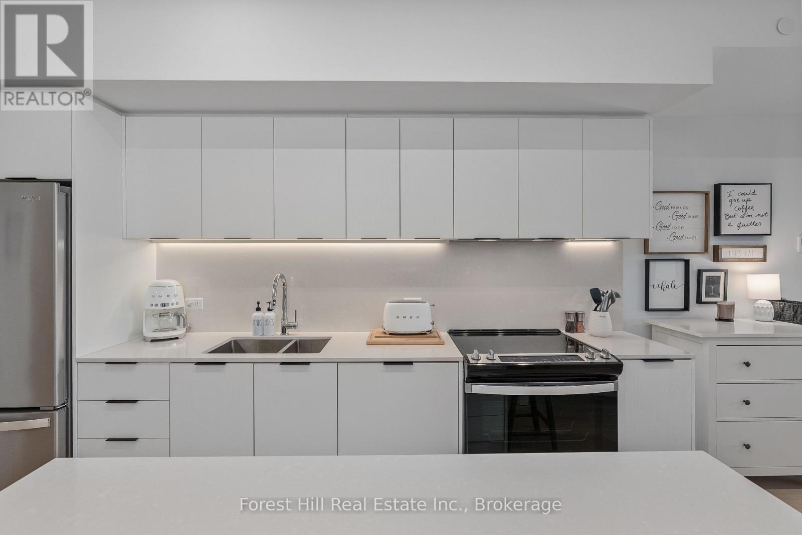 Discover unparalleled waterfront living with gorgeous views of Georgian Bay from stunning one-bedroom plus den, two-bathroom unit. Step inside to a custom-designed open-concept floor plan, meticulously adjusted to create a bright and expansive living space perfect for entertaining or tucking in to the media area. Bright upgraded kitchen with The large primary suite offers a view, ample closet space and a beautifully designed ensuite bathroom. The guest room allows privacy and access to the second full designer washroom. Harbour House, by Streetcar Developments has thought of everything, including concierge service, exceptional fitness center, a pet spa and two fabulous guest suites for ease of hosting out of town family and friends. At your doorstep, experience waterfront living with the Collingwood Yacht Club and marina downtown area, offering an array of exceptional restaurants and shops. Nestled in the heart of Ontario's ski country, this location also provides convenient access to all outdoor activities including extensive hiking and biking trails, golf courses, and so much more, making it an ideal year-round destination. (id:64974)