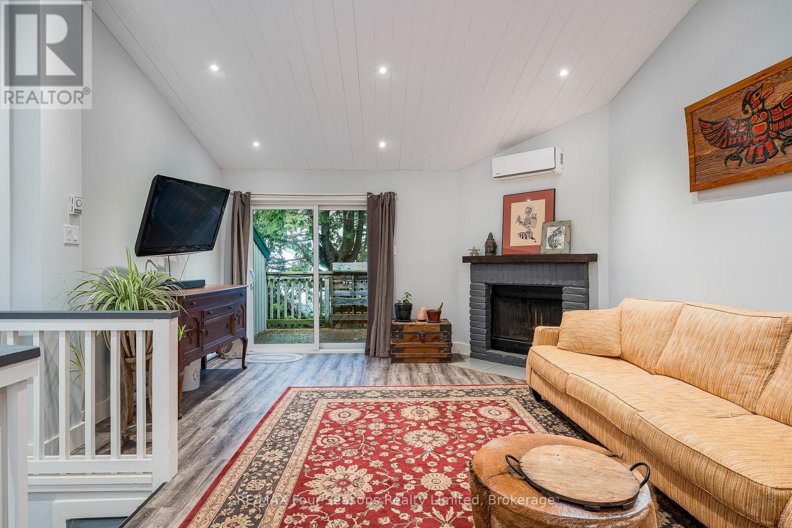 Bright, cozy, and beautifully maintained, this inviting 2-bedroom, 1 bath condo townhome offers the perfect blend of comfort, tranquility, and four-season adventure in Collingwood's sought-after Living Stone (formerly Cranberry/Living Waters) community. Featuring an open-concept layout with updated kitchen, generous counter space and spacious living and dining areas, the home showcases pride of ownership throughout. Enjoy serene views of manicured gardens and mature trees from the private deck and balcony-ideal for morning coffee or evening relaxation-along with features such as vaulted ceilings, skylight, cozy fireplace, efficient heating and cooling systems, and ample storage. Ideally located steps to downtown Collingwood, the Georgian Trail, and Georgian Bay, and within minutes of Blue Mountain ski resort, beaches, golf courses, marina, shopping, restaurants, theatres, schools, and hospitals, this quiet, well-managed community offers an exceptional lifestyle or getaway just in time to enjoy everything Ontario's premier four-season playground has to offer. (id:64974)