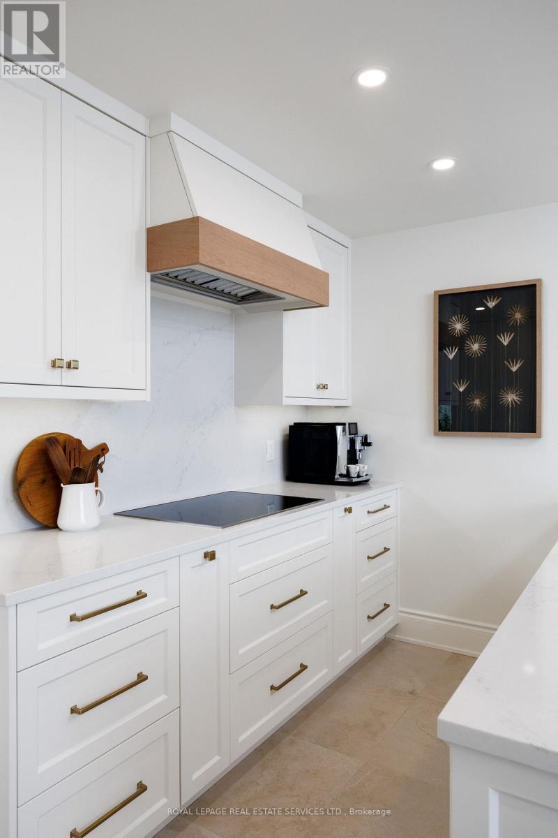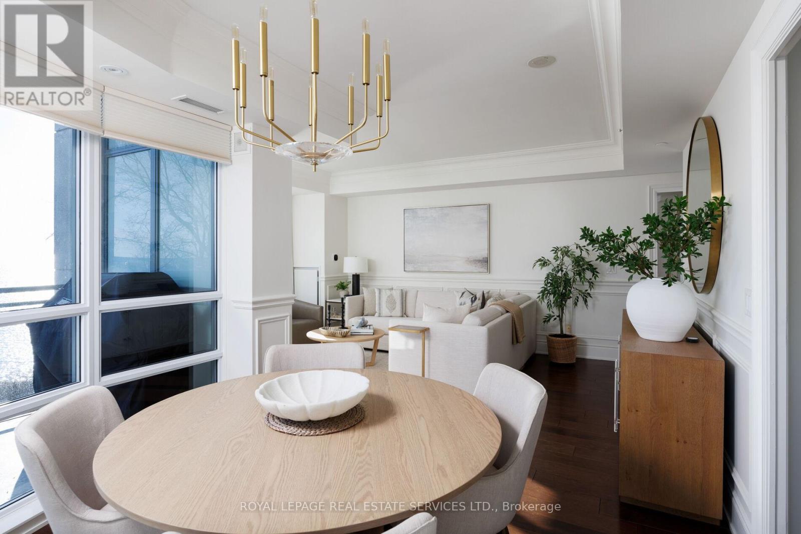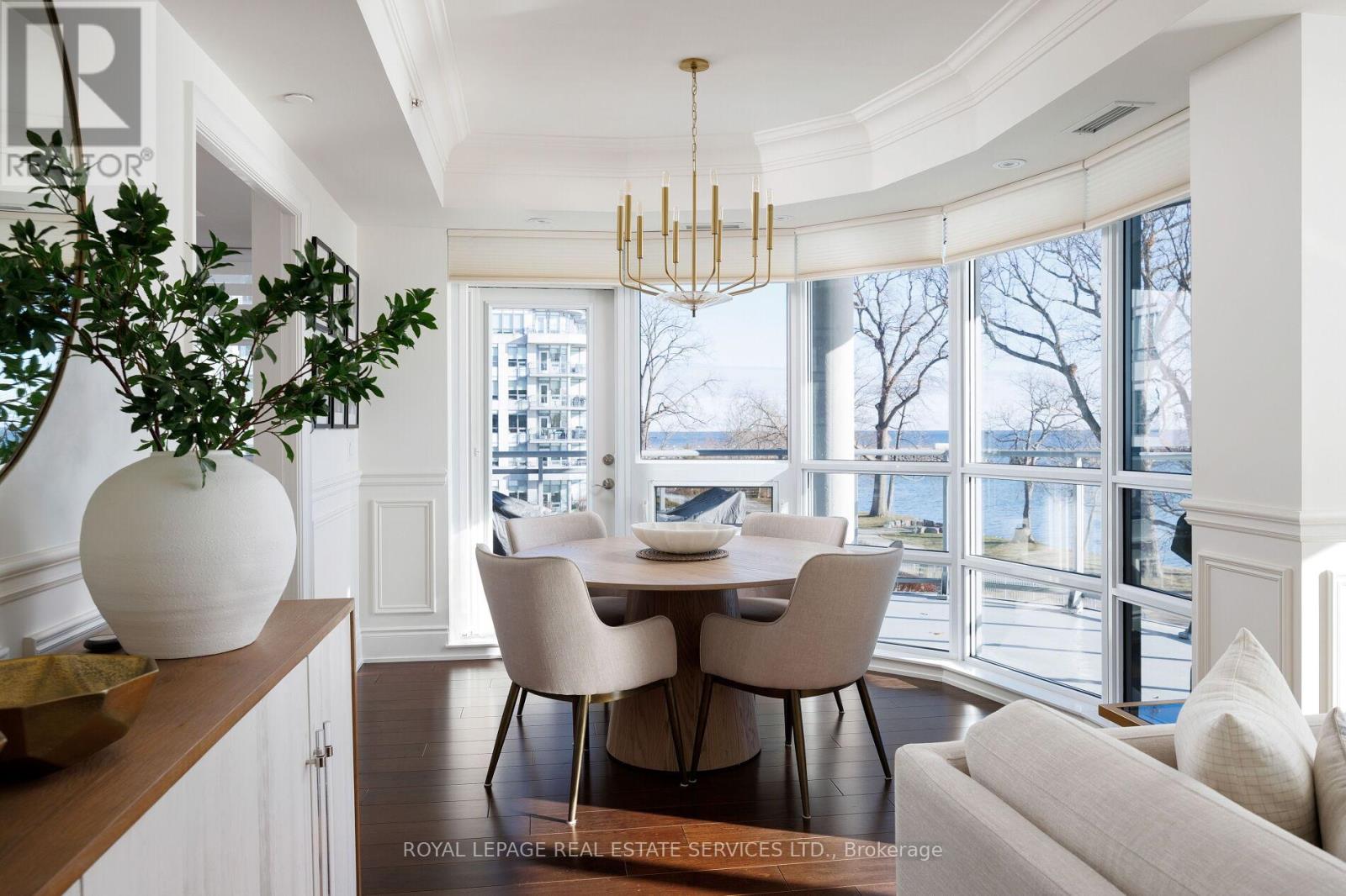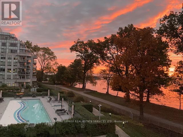 Paradise awaits at Bluwater Condos on Lake Ontario, offering true resort-style waterfront living with exceptional building amenities & unbeatable convenience. Ideally located just minutes from major highways, shopping, dining, & everyday essentials, this coveted community is steps to scenic parks & waterfront trails, with Bronte Harbour & Bronte Village-home to trendy boutiques, cafes, & restaurants-only a 4-minute drive away. This luxury renovated 2-bedroom, 2.5-bathroom condo spans approximately 1,550 sq. ft. & enjoys a premium position in the building, delivering breathtaking lake views, centre courtyard lounge, & plunge pool vistas from every window. Two private balconies provide a front-row seat to spectacular Lake Ontario sunsets. Refined craftsmanship & timeless style throughout, including engineered hardwood floors, crown mouldings, deep baseboards, 9' ceilings, wainscotting, & custom window coverings. Extensive 2025 renovations include the renovated kitchen, ensuite bathrooms, & laundry room, new high-end appliances, designer lighting, & a freshly painted interior, including ceilings, doors, & trim. The spacious formal living room & dining room offer floor-to-ceiling windows, remote-controlled blinds, & a walkout to the balcony-perfect for entertaining or quiet moments of serenity. The chef-inspired kitchen impresses with new custom cabinetry, quartz countertops, Miele appliances, & new flooring. The adjoining family room offers wall-to-wall custom cabinetry & expansive lake views. The primary retreat features its own lake-facing balcony & a luxuriously renovated 5-piece ensuite with a soaker tub & glass shower. Completing this exceptional offering is a second bedroom featuring a renovated 3-piece ensuite, a laundry room, a powder room, an underground storage locker, & two parking spaces. A rare opportunity for luxury condo living on the waterfront in one of Oakville's most desirable communities. (id:64974)