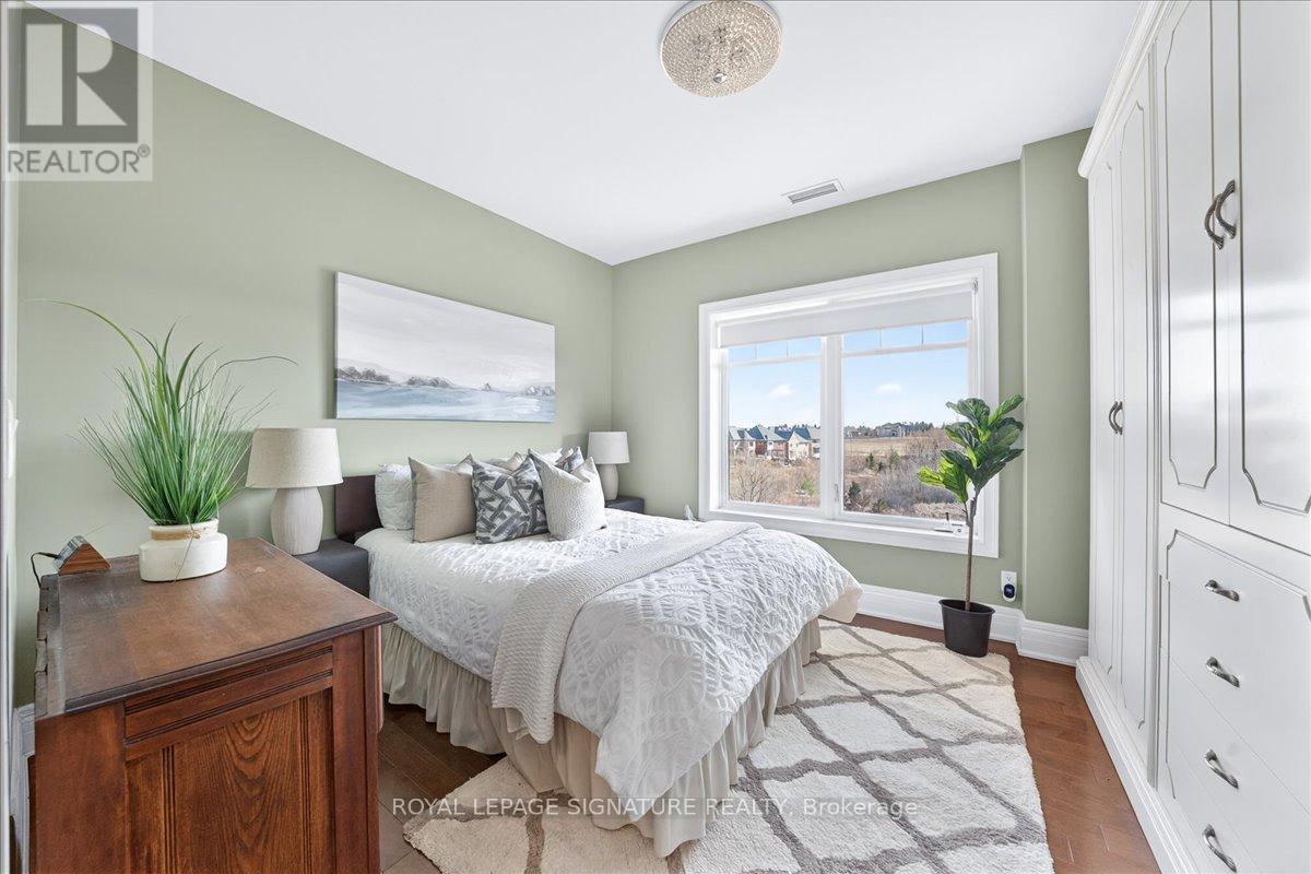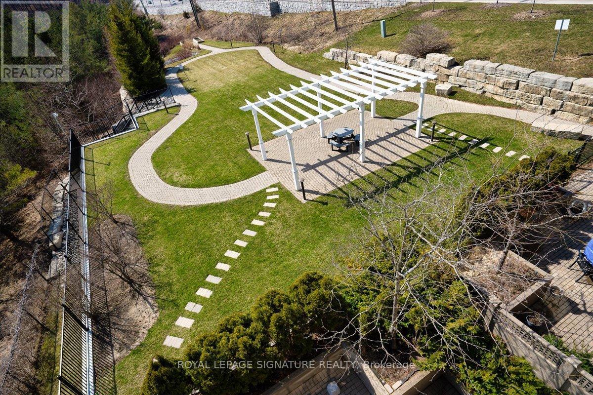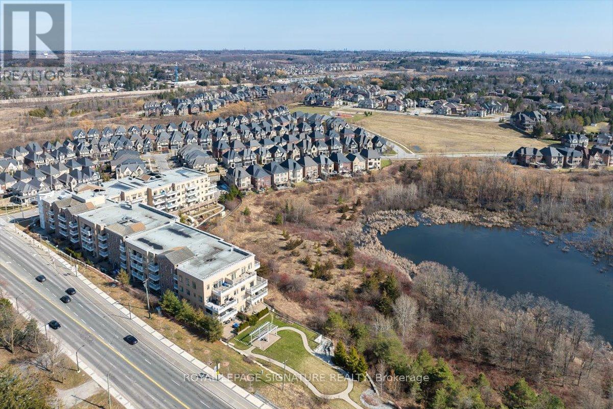 A Rare Opportunity: The Perfect Blend of Country Peace and Urban Convenience. Experience the perfect harmony of nature and city living in this spectacular 1,500 sq. ft. modern condo. Located in an absolute "sweet spot" just 2 minutes from Highway 400 and a 15-minute walk to the GO Train, you are within 30 minutes of premium shopping, exceptional dining, two hospitals, and York University. Yet, step outside onto your expansive double terrace and you are instantly grounded by the healing calm of an unobstructed view over protected ravine wetlands. Watch swans, herons, and wildlife adapt to the seasons while enjoying all-day sun and extraordinary sunsets from a coveted southwestern exposure. Inside, the sun-drenched, open-concept layout seamlessly connects the living and dining areas to a true chef's kitchen featuring a premium Sub-Zero fridge and granite countertops. The versatile floor plan offers a spacious primary suite with a walk-in closet, linen closet, and ensuite, alongside a second bedroom, a large den, and a second full bathroom. Unmatched in convenience, this suite includes two dedicated underground parking spaces (one steps from the elevator), two large storage rooms, and a storage cage. "The Residences of Spring Hill" offers a luxury resort lifestyle with a concierge, heated indoor pool, gym, car wash, billiards room, and cafe. Be prepared for every guest to marvel at your incredible view! (id:64974)