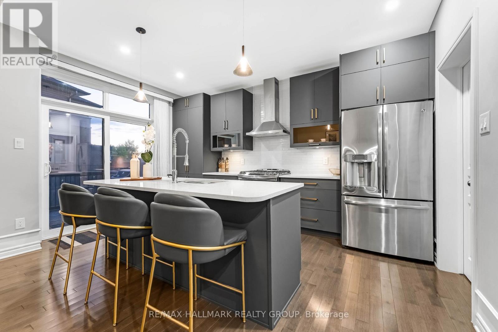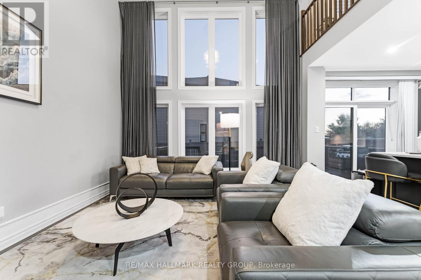 Exquisite Sapphire II by Urbandale Corporation, a luxury upgraded home that blends modern design, comfort, and functionality. This executive 3 Bed + Loft (convertible to 4th) + 4 Bath residence has been extensively upgraded and is presented in true turnkey condition.The main floor impresses immediately with cathedral ceilings and soaring multi level windows that flood the space with natural light. A sleek three sided gas fireplace anchors the open concept layout, while gorgeous maple hardwood floors extend throughout. The custom chef's kitchen is a showpiece with premium cabinetry, quartz counters, designer fixtures, stainless steel appliances, and a gas range, perfect for cooking and entertaining.The second level features an oversized primary retreat complete with a private balcony wired with outdoor speakers, a large walk in closet, and a spa inspired ensuite. This luxury bathroom offers a freestanding tub, glass enclosed shower, dual vanities, and elegant modern finishes. Two additional bedrooms, a bright loft perched over the great room, and a convenient upper level laundry room complete this floor.The fully finished lower level is an entertainer's retreat with a custom wet bar, wine fridge, and upscale full bathroom with a glass shower and contemporary tile. Ideal for gatherings or family movie nights, this versatile basement adds valuable living space.Exterior highlights include professional landscaping, a fully fenced backyard, and a custom deck perfect for outdoor dining and relaxation. The front elevation delivers striking curb appeal, showcasing Urbandale's signature architecture.Located in prestigious Riverside South, one of Ottawa's fastest growing communities. Steps to top rated schools, parks, trails, shopping, and transit. The exciting new Riverside South Square development is underway, bringing additional retail, dining, and lifestyle amenities to your doorstep.A rare opportunity to own one of Urbandale's most sought after models. (id:64974)