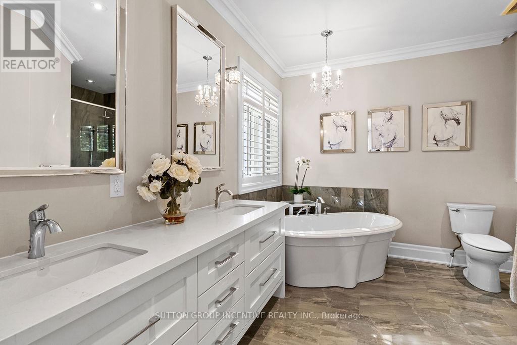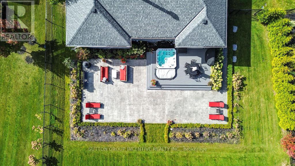 This Stunning Custom Builder Stucco/Stone Bungalow is situated on just over a half-acre private lot, offering a country feel while remaining close to city amenities. It boasts numerous upgrades from the builder and additional enhancements by the owners. Apx 5100 total square feet, finished top to bottom. The property features a gorgeous lot with a huge driveway accommodating 12+ cars (triple-wide at the garage). Inside, you'll find a 14' ceiling in the foyer, a front office/bedroom, a second bedroom, a main 4pc and a 2pc. Hardwood flooring extends throughout the main level, complemented by pot lights, O/S trim, crown molding, 9' doors, and transom windows, creating a bright yet cozy atmosphere. The large master at the rear includes a W/I and 5pc Ensuite with heated floors. The stunning great room offers an open concept design with vaulted ceilings and a floor-to-ceiling stone wood fireplace. The gourmet kitchen features a pantry, wine storage/cooler, B/I glass cupboards, an o/s island, and an o/s stainless steel fridge/freezer combo & gas stove. The DR provides a W/O to a 26x15 composite deck, 8-person hot tub, lighted stairs leading to a huge pattern concrete area-$40k and wrought iron fencing around the rear yard. The exterior is enhanced by mature trees and professional landscaping. The main floor also includes a laundry with a side door and a mudroom leading to a fully insulated garage with an epoxy floor and a gas heater. There is a separate staircase to the basement and a rear door. The gorgeous oak staircase leads to a spectacular Fin Basement with upgraded 9' ceilings, ideal for an in-law setup. It includes a huge R/R with a B/I projector and electric screen, a gas fpl, pot lights, and engineered hardwood t/out. There is a second kitchen with top-end appliances, two bedrooms with 4-piece ens (with heated floors), two exercise rooms (one could be a third bedroom), a utility room, a finished office, and a huge cold room. (id:64974)