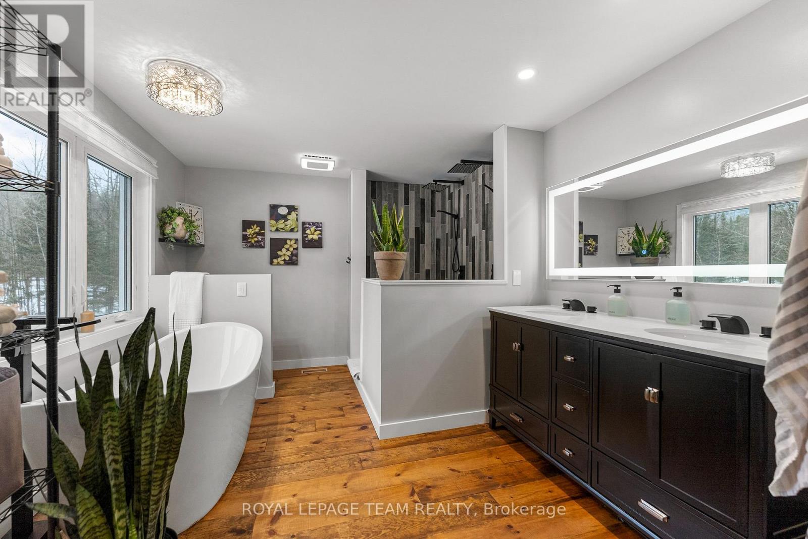 OPEN HOUSE SUNDAY APRIL 19th 2:00PM-4:00PM! Thoughtfully renovated home set on 2.6 private acres with 2 detached heated garages, several outbuildings, and beautifully maintained trails throughout the property. Tucked well back from the road and lined by trees, this home has a peaceful ambiance. Inside, some standout features include the oversized foyer, a convenient main floor bedroom or office, extra wide side-by-side patio doors overlooking the private backyard, a dedicated hot tub room, and a spacious kitchen island big enough for seating the entire family. The primary suite is a highlight, featuring a walk-through closet that leads to a stunning true 4-piece ensuite. This home checks all the boxes and offers space, privacy, and functional layout. Perfect for rural living with direct access to walking, ATV, and snowmobile trails right from the rear of the property. , all less than 25 minutes to Garrison Petawawa and under 5 minutes to Deep River hospital everyday essentials and groceries. (id:64974)