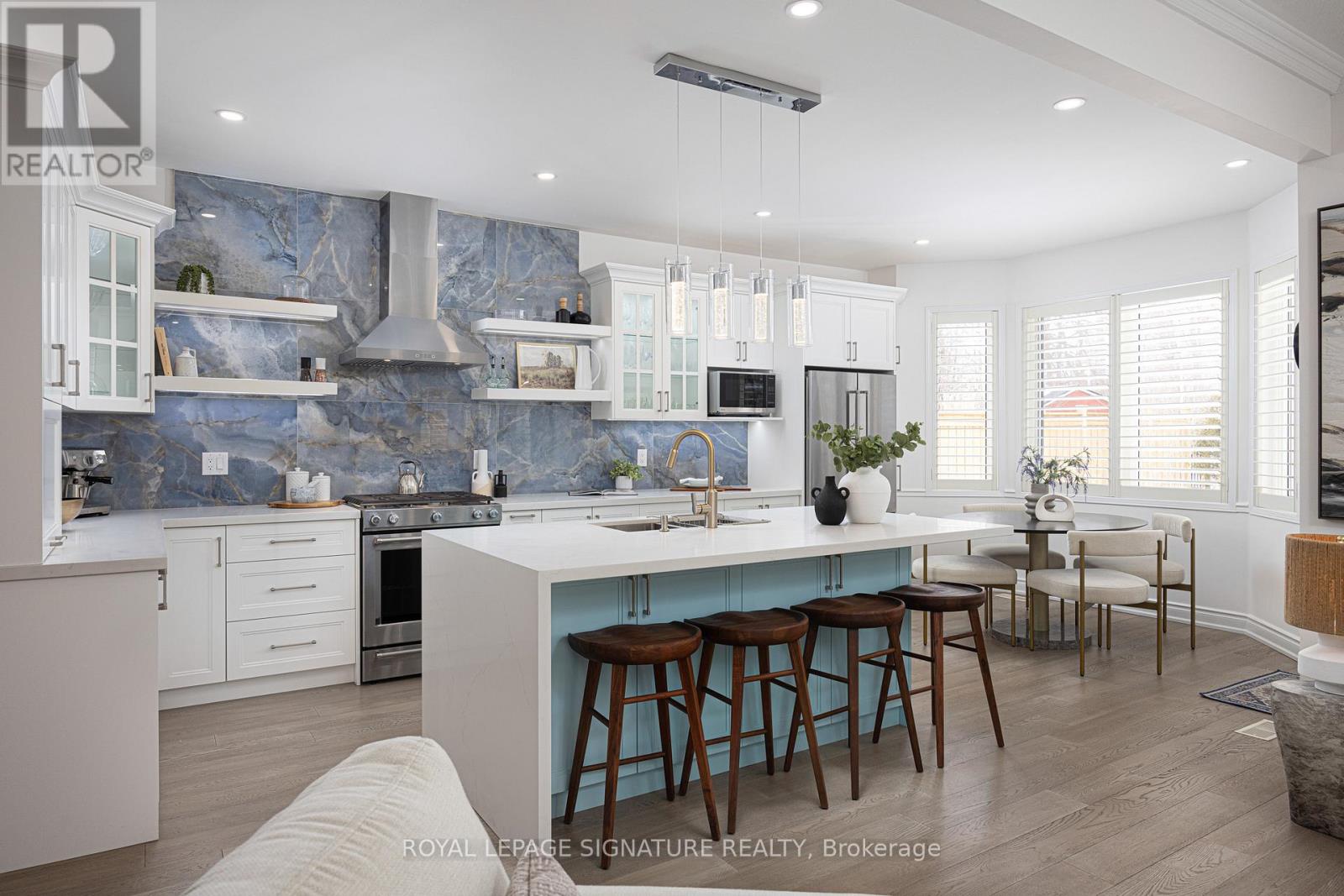 Tucked away on a quiet, low-traffic, family-friendly court in Pickering, this solid all-brick bungalow offers over 3,000 sq ft of beautifully finished living space blending style, comfort, and privacy. A true bungalow with no interior stairs, it provides seamless, accessible everyday living.all Extensively and very recently renovated, this home showcases a stunning new chef-inspired kitchen, updated flooring throughout, and three beautifully remodelled bathrooms completed with impressive attention to detail. The bright open-concept layout is complemented by soaring 9-foot ceilings and elegant, modern finishes. The oversized island and abundant cabinetry make the kitchen the natural gathering place for family and friends.Step outside to your own serene backyard oasis, backing directly onto green space for exceptional privacy and peaceful, tree-lined views.The fully finished basement includes a separate kitchen, bedroom, and bathroom, offering incredible flexibility for guests, extended family, older children, caregivers, or potential rental income.Turnkey, spacious, and renovated where it counts this is bungalow living done right. Welcome Home! (id:64974)