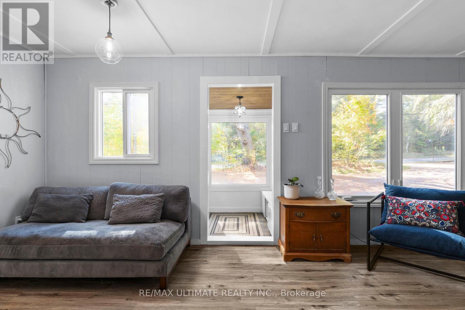 Welcome to this charming 3+1 bedroom, 1 bathroom bungalow in desirable Port Sydney. Located within walking distance to Mary Lake beach and boat launch and just minutes from Huntsville and Bracebridge for shopping, dining, and amenities. The home features a cozy family room with a natural gas fireplace and an updated kitchen with stainless steel appliances and spacious dining area. Recent upgrades include a new gravel driveway, renovated screened-in room, new exterior siding, attic and crawl space insulation, brand new windows, updated flooring, refreshed bathroom and freshly painted interior making this home truly move-in ready.Featuring 3 cozy bedrooms providing plenty of space for your family, plus a versatile +1 room ideal as an office, guest room, or playroom adding flexibility to the layout. Additional highlights include a spacious mudroom, large laundry room with direct garage access, and a single attached garage. Outside you can enjoy a beautiful backyard space with a deck and patio ideal for entertaining all year long. You feel like you are at a peaceful retreat, with everything you need and more like convenient access to highways, a well-maintained, plowed road in winter, and a school just down the road. This property has also operated as a successful permitted Airbnb offering excellent income potential while still providing the perfect opportunity to enjoy it as your own private cottage or full-time home. Whether you choose to host guests seasonally or not, the flexibility makes it a rare and valuable find in Port Sydney. (id:64974)