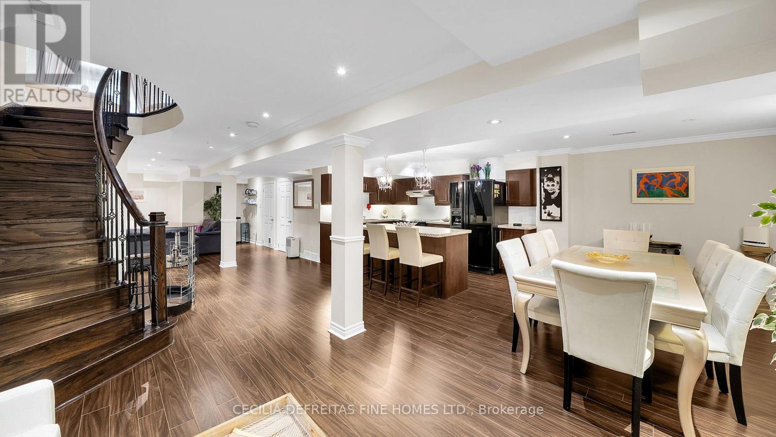 A showcase of elegance and craftsmanship, this exceptionally upgraded Rosehaven residence offers 3,265 sq ft above grade plus a professionally finished lower level in prestigious Vellore Village. Over $250,000 in curated upgrades elevate every space. The main level is adorned with Crema Marfil limestone floors, 9-ft ceilings, and custom handcrafted millwork, while a breathtaking two-storey family room with 20-ft ceilings and dramatic floor-to-ceiling windows creates a grand yet inviting atmosphere. Architectural details include an elegant wrought iron floating staircase, crown mouldings, and integrated surround sound throughout. The professionally finished lower level features a 5th bedroom which can also be a theatre room installed with a projector and a 3-piece bath, ideal for guests, extended family, or private retreat. Luxury, craftsmanship and timeless design converge in this remarkable home. Stunning deck from Master Bedroom. You will love this home! (id:64974)