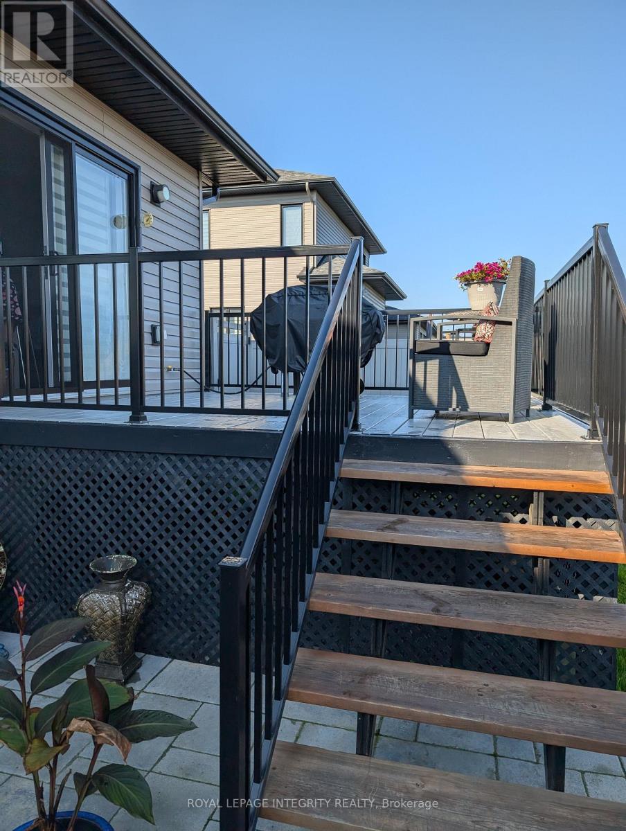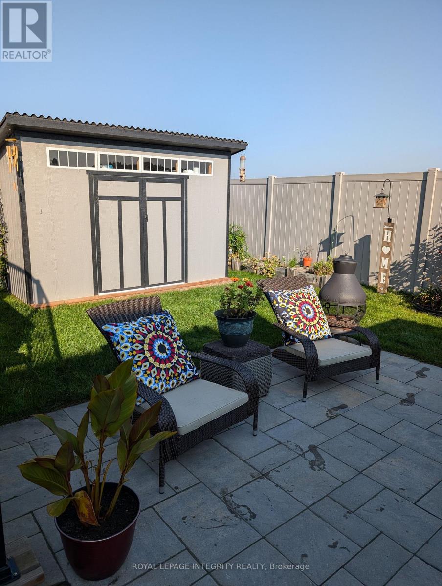 Beautiful stone-front bungalow with impressive curb appeal, featuring interlocking stonework and professionally landscaped grounds. The open-concept main level offers a seamless flow between the living and dining areas, highlighted by hardwood flooring and abundant natural light. The stylish kitchen is complete with quartz countertops, stainless steel appliances, pot lights, a gourmet hood fan, elegant backsplash, undermount sinks, and custom blinds throughout. The main floor includes two well-appointed bedrooms and a modern bathroom featuring a relaxing soaker tub and quality finishes. The fully finished basement expands the living space with a spacious recreation room, full bathroom, dedicated laundry room, and ample storage. A separate storage/workshop area plus additional utility/storage space provides excellent functionality for hobbies or organization. Central vacuum adds everyday convenience. Step outside to a private, fully PVC-fenced backyard designed for both relaxation and entertaining. Enjoy the deck, interlock patio, handy storage shed, and a gas line ready for your BBQ-perfect for summer gatherings. This thoughtfully upgraded bungalow offers comfort, style, and practical living space inside and out-ideal for downsizers, professionals, or families seeking turnkey living. (id:64974)