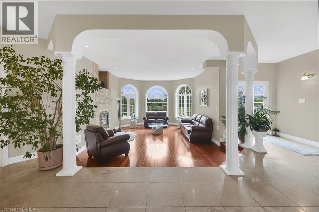 Discover refined living and peaceful countryside charm in this meticulously crafted custom-built retreat, located just minutes from major highways and everyday amenities. Set on 13.83 picturesque acres, this exceptional property offers privacy, beauty, and convenience in one remarkable package. Inside, enjoy elegant, carpet-free living with rich hardwood, marble, and porcelain flooring throughout—timeless, stylish, and easy to maintain. The sunken living room invites relaxation with a cozy gas fireplace and expansive windows showcasing serene views of the surrounding landscape. The spacious primary suite is a private sanctuary, complete with its own gas fireplace, a spa-inspired 6-piece ensuite, oversized walk-in closet, and charming reading room. Step out from the suite or main living area onto the concrete patio with gas BBQ hookup—perfect for entertaining or enjoying quiet evenings by the fire pit in the tree-lined yard. The gourmet kitchen impresses with custom cherry cabinetry, granite countertops, and a large center island designed for gatherings and culinary creativity. A walk-out lower level offers incredible versatility, featuring a rough-in for a future bathroom and endless potential for additional living or entertainment space. Constructed with Insulated Concrete Forms (ICF), this home provides superior durability, comfort, and energy efficiency—offering 50–70% energy savings compared to traditional wood framing. Durable 45-year shingles add long-term value and peace of mind. Approximately 8 acres are currently leased to a tenant farmer, presenting added income potential. This one-of-a-kind estate beautifully blends luxury craftsmanship, modern efficiency, and natural surroundings—an exceptional property that must be seen to be fully appreciated. (id:64974)