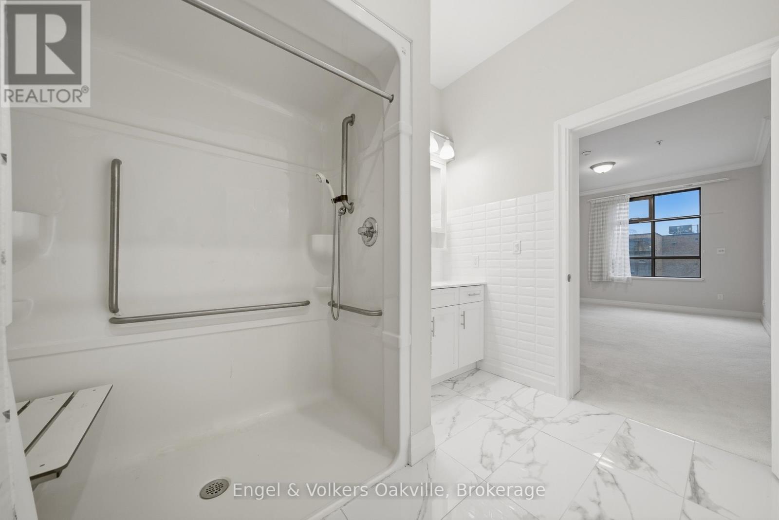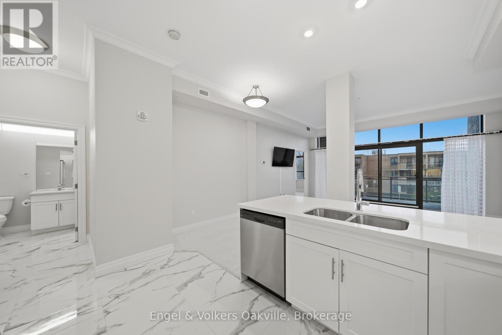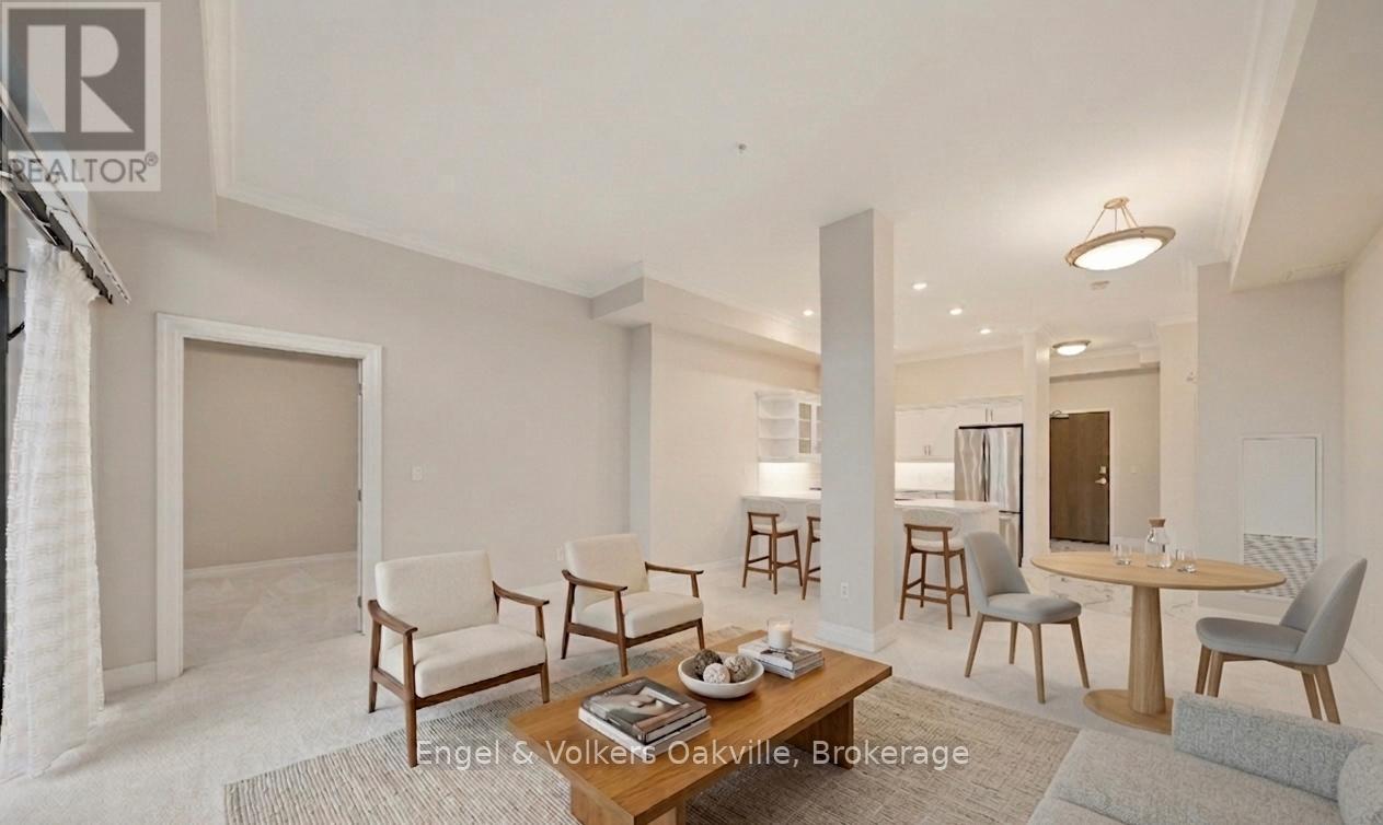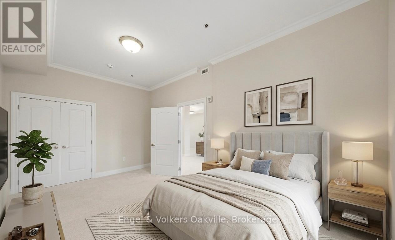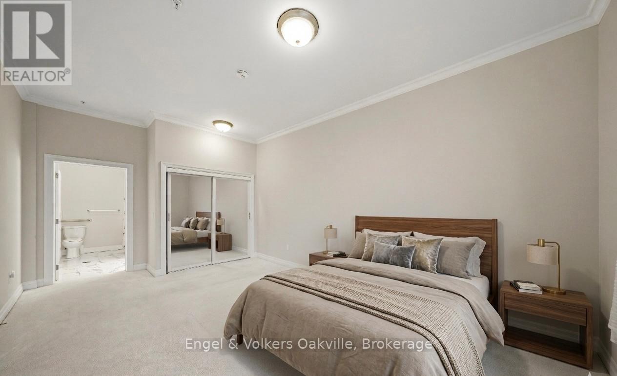 One of a kind retirement living opportunity in sought-after Maranatha Gardens in a desirable 55+ Community near downtown Burlington.This bright 2 bed and 2 bath main floor corner unit showcasing 1296 sq ft has a private oversized balcony featuring side views of the park area bringing in lots of natural light! Spacious open-concept layout, high ceilings, crown moulding w/smooth ceilings, pot-lights, white kitchen w/ stainless steel appliances and dedicated laundry room. Primary ensuite with roll in shower + grab bars, wheelchair friendly. The building is wheelchair accessible and features excellent amenities including workshop, lounge, fitness and party rooms, terrace, underground parking and lockers. Conveniently located close to shopping, dining, and all downtown amenities south Burlington has to offer! **TAXES INCLUDED IN MONTHLY FEES** No condo information due to Life Lease. Follow Your Dream, Home. (id:64974)