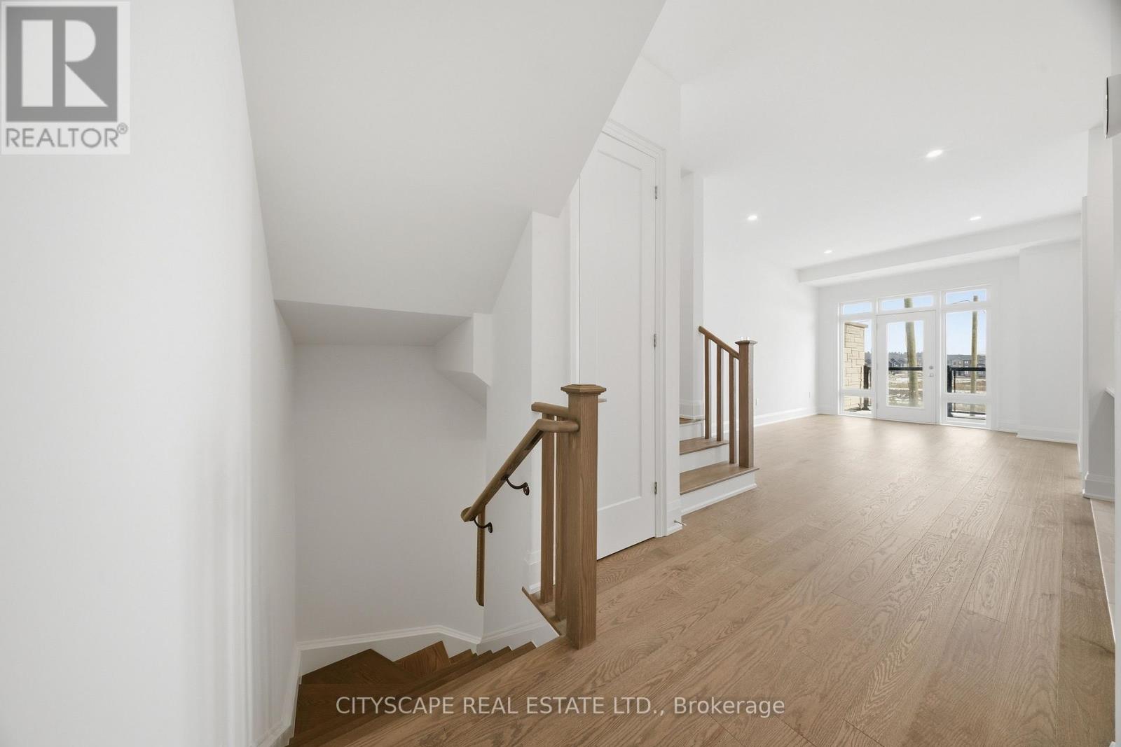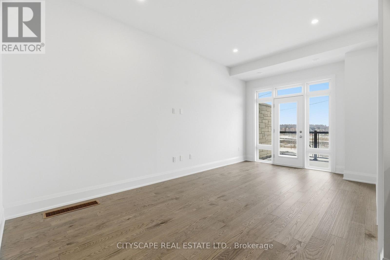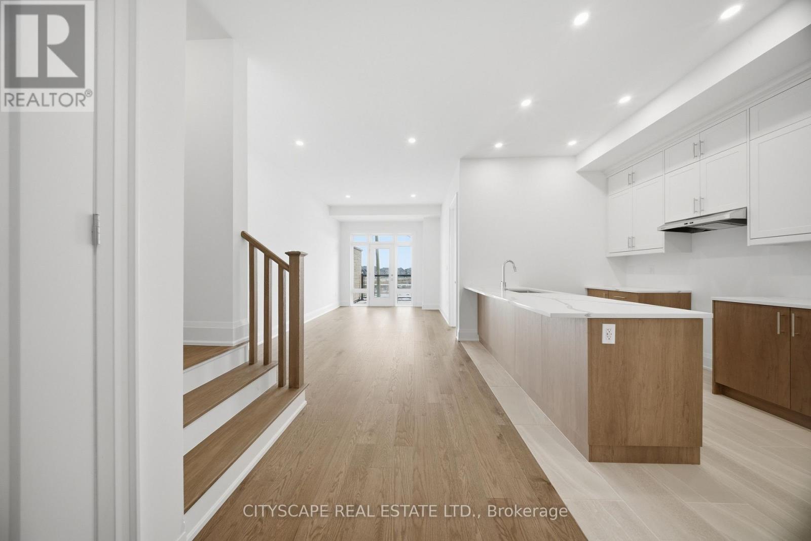 Welcome to this brand new, never-lived-in luxury urban townhouse in the highly desirable NAVA Oakville community. Offering approximately 1,697 sq. ft. of modern living space, this beautifully designed 3-bedroom, 3-bathroom freehold townhouse combines elegant finishes with a highly functional layout, perfect for families or professionals seeking comfort and convenience. The main level features a welcoming foyer and a versatile den/home office, ideal for remote work or additional living space, with convenient access to the garage. The second level showcases an impressive open-concept living and dining area with 10-foot ceilings, large windows, and engineered hardwood flooring, creating a bright and sophisticated atmosphere. The modern gourmet kitchen offers quartz/granite countertops, extended cabinetry, stainless-steel appliances, and a breakfast bar, making it perfect for everyday living and entertaining. The upper level features a spacious primary bedroom with ensuite bathroom, along with two additional bedrooms and a full bath, providing comfortable space for family living. The home is finished with oak staircases, premium flooring, LED pot lights, and contemporary fixtures throughout, delivering both style and comfort. Additionally it includes central air conditioning, EV charging rough-in in the garage, smart home wiring (Cat-6), and energy-efficient construction, ensuring modern convenience and efficiency. Ideally located in North Oakville, residents will enjoy easy access to Highways 407, 403, and QEW, as well as close proximity to top-rated schools, parks, scenic trails, Oakville Trafalgar Memorial Hospital, shopping centres, restaurants, and Sheridan College. This exceptional location offers the perfect balance of suburban tranquility and urban convenience. A fantastic opportunity to live in a brand-new luxury townhouse in one of Oakville's most sought-after neighbourhoods. (id:64974)