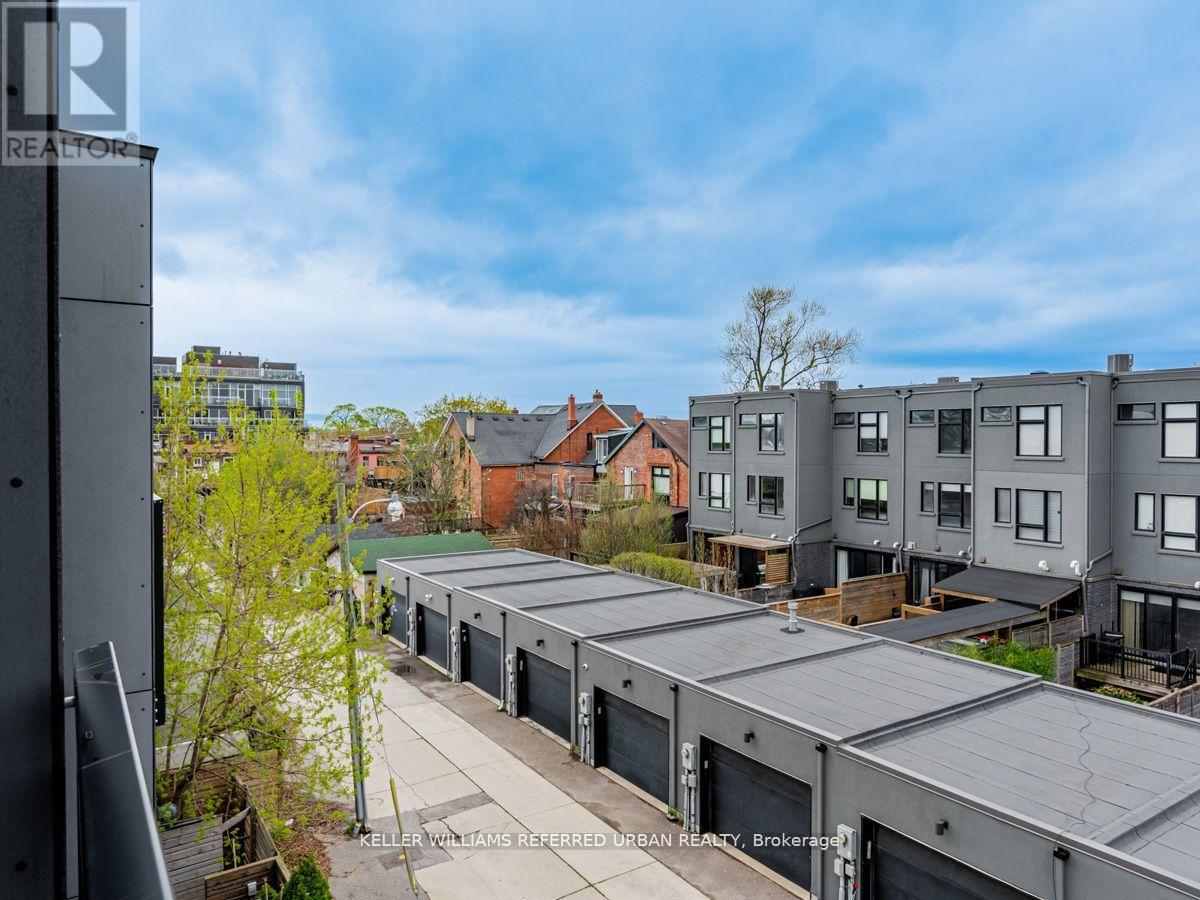 Contemporary corner townhouse situated in the vibrant Little Italy, featuring four levels of bright and spacious open-concept design. This remarkable home boasts impressive elements, including 10 & 12-foot ceilings, a floating staircase, a Scavolini chef's kitchen, bathrooms adorned with Caesar stone counters, and premium appliances. Freshly painted throughout in 2025. Enjoy outdoor living on the main floor private terrace and the convenience of a private underground's built-in garage. The stunning primary suite occupies the entire third floor, complete with a walk-in closet and a luxurious 5-piece spa ensuite. Unbeatable location! Steps to some of the city's best restaurants, bars and groceries. Little Italy, Ossington, trinity Bellwoods with Subway and Streecar at your door. (id:64974)
