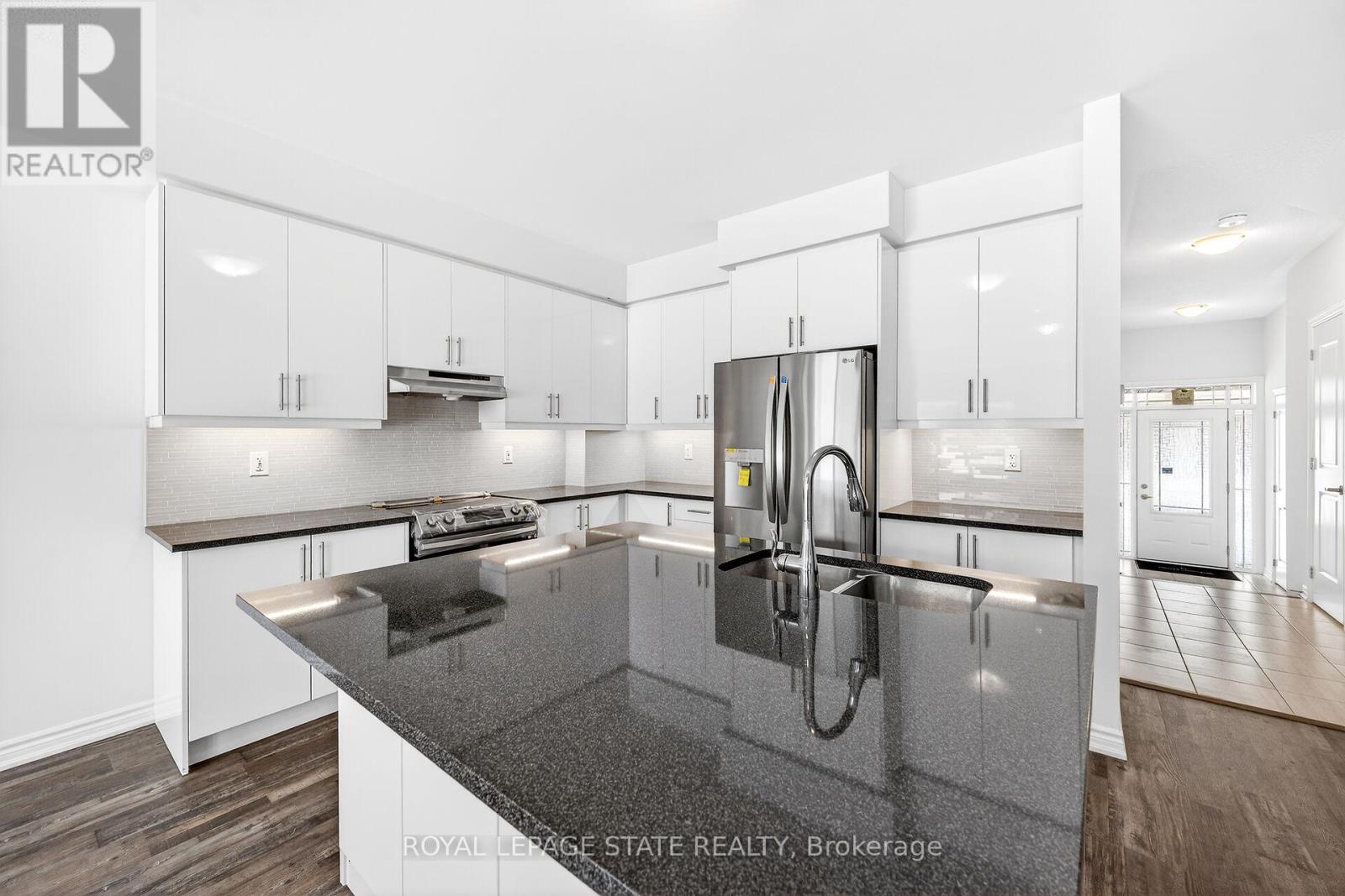 3 bedrooms, 2 years new, never lived in freehold townhome with attached garage and 2 car driveway. No Condo-Fees. Sitting in a very modern, prestigious, newer, quiet, development of Welland. Open-concept from time of front entry. 2pce bath in Foyer that leads into Eat-in-kitchen that over-looks Living-room, Dining-room, sliding doors to backyard. Solid wood staircase that leads up to 2nd. floor. High quality laminate floors throughout main floor. Kitchen having luxurious Quartz countertops, backsplash, under-cabinet lights, and brand-new stainless-steel appliances (double Fridge, Stove, and built in Dishwasher)-never used. Large windows and 9-foot ceilings. Spacious primary bedroom with private 3pce ensuite and walk-in closet. 2 additional bedrooms and convenient 2nd. floor laundry room with new stainless-steel washer and dryer (never used). Unfinished basement with rough-in for bathroom.Property located near Welland Canal, established wineries, biking and walking trails, restaurants, golf courses, grocery stores, shopping, and easy access to Highway 406. (id:64974)
