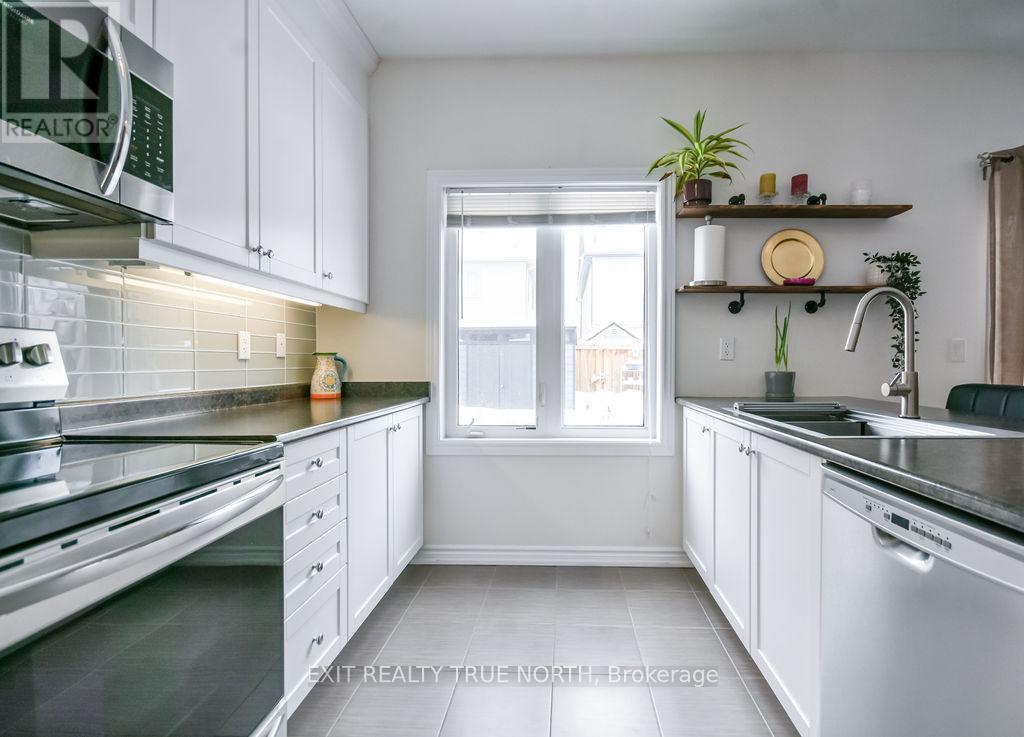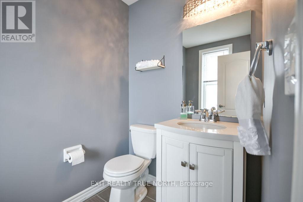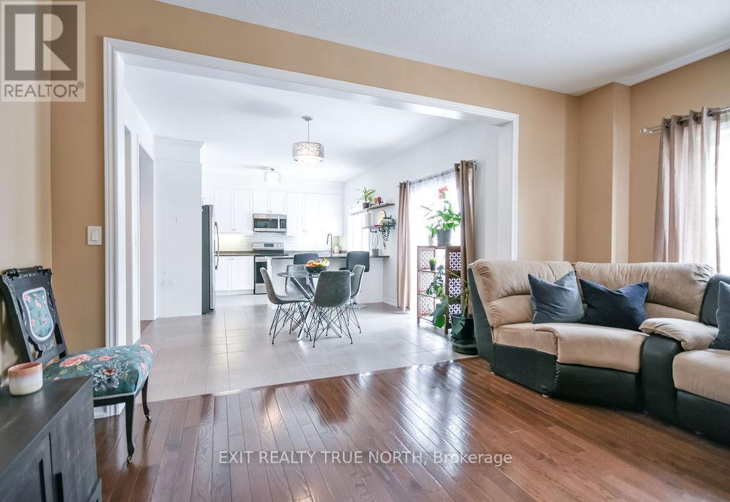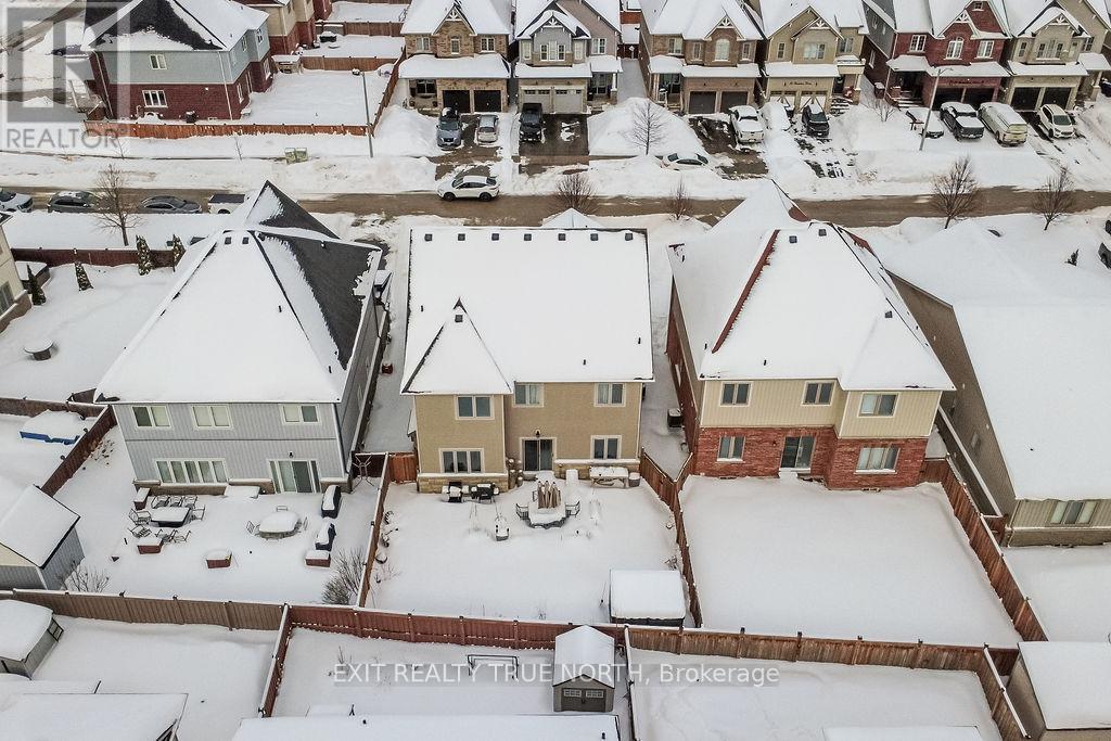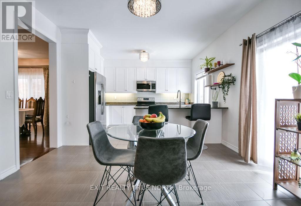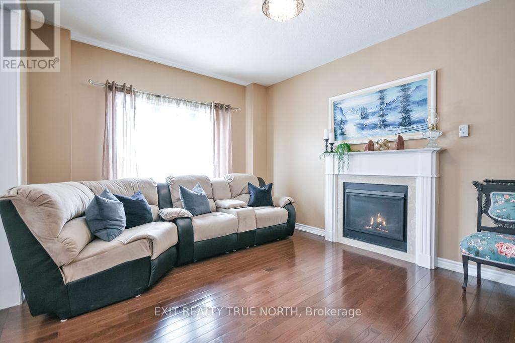 Experience comfort and style in this beautifully appointed home in the sought-after 5th Line community, offering over 2,300 square feet of thoughtfully designed living space. The bright, open concept layout features 9' ceilings, hardwood floors, ceramic tile, and a cozy gas fireplace that creates the perfect backdrop for everyday living and entertaining. The eat-in kitchen is filled with natural light and offers stainless steel appliances with plenty of room to gather. Upstairs, the large primary bedroom is a peaceful retreat with a walk-in closet and a private 4-piece ensuite, complemented by well-sized additional bedrooms. The lower level is unfinished and ready for your vision, complete with a bathroom rough-in, ideal for creating future living space. Outside, relax and entertain on your patio, enjoy the convenience of a shed, and fire up the BBQ with a ready-to-use gas line-perfect for summer gatherings or quiet evenings at home. Located close to everyday amenities, Barrie, Alliston, and Hwy 400, and just a short stroll to a nearby conservation area with scenic trails, this home offers an easy lifestyle in a great location. (id:64974)