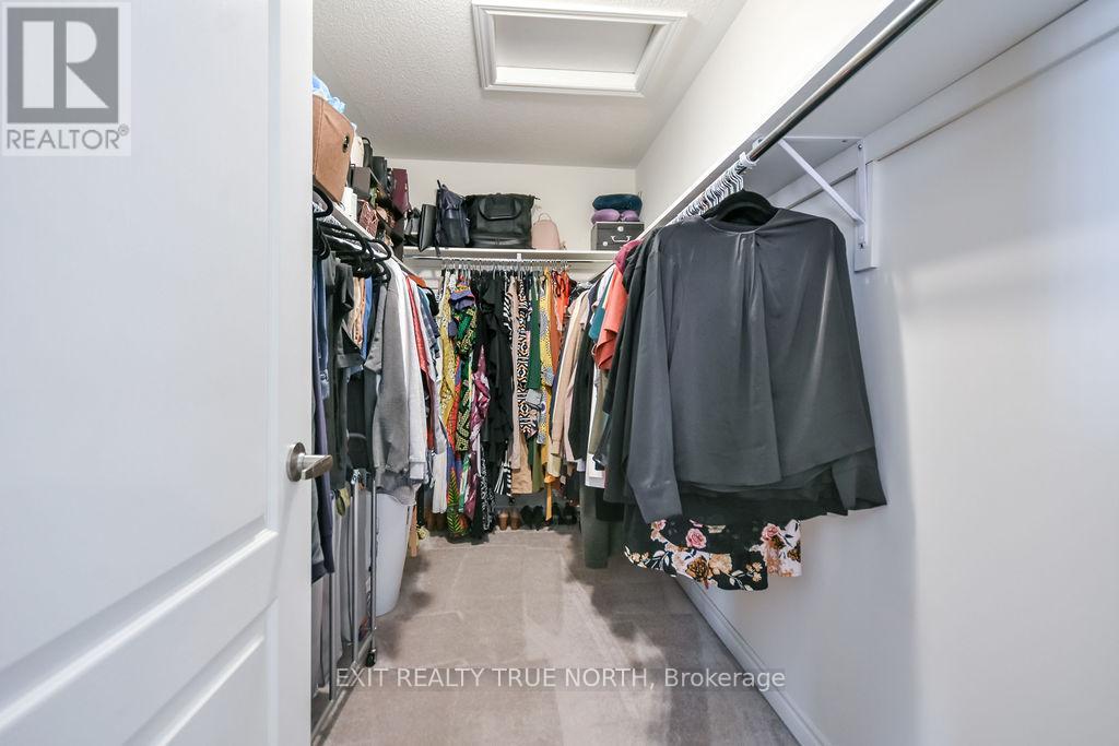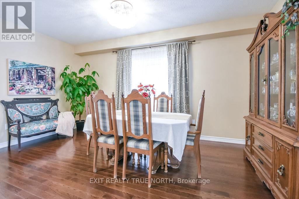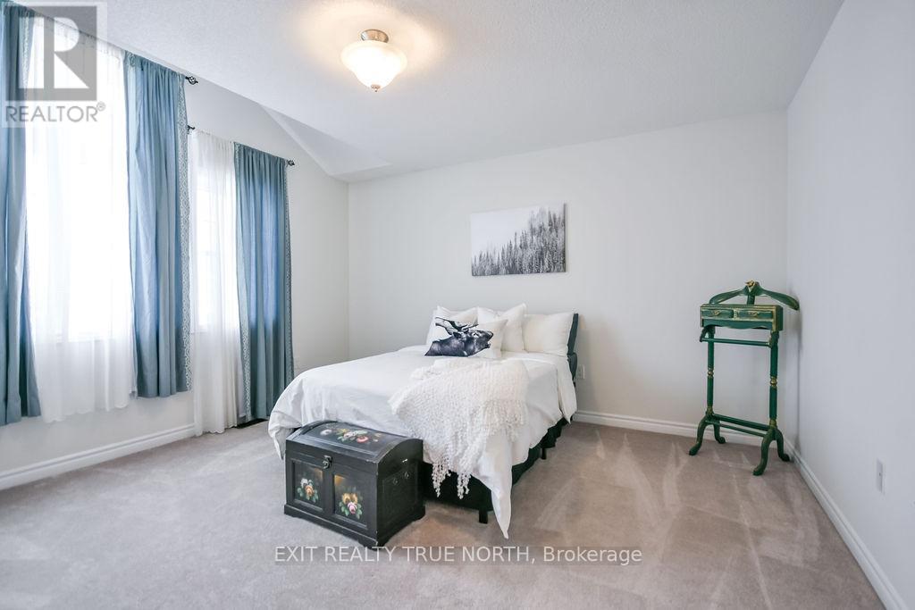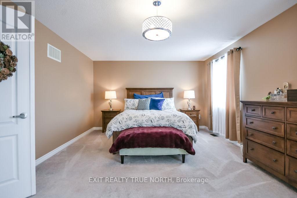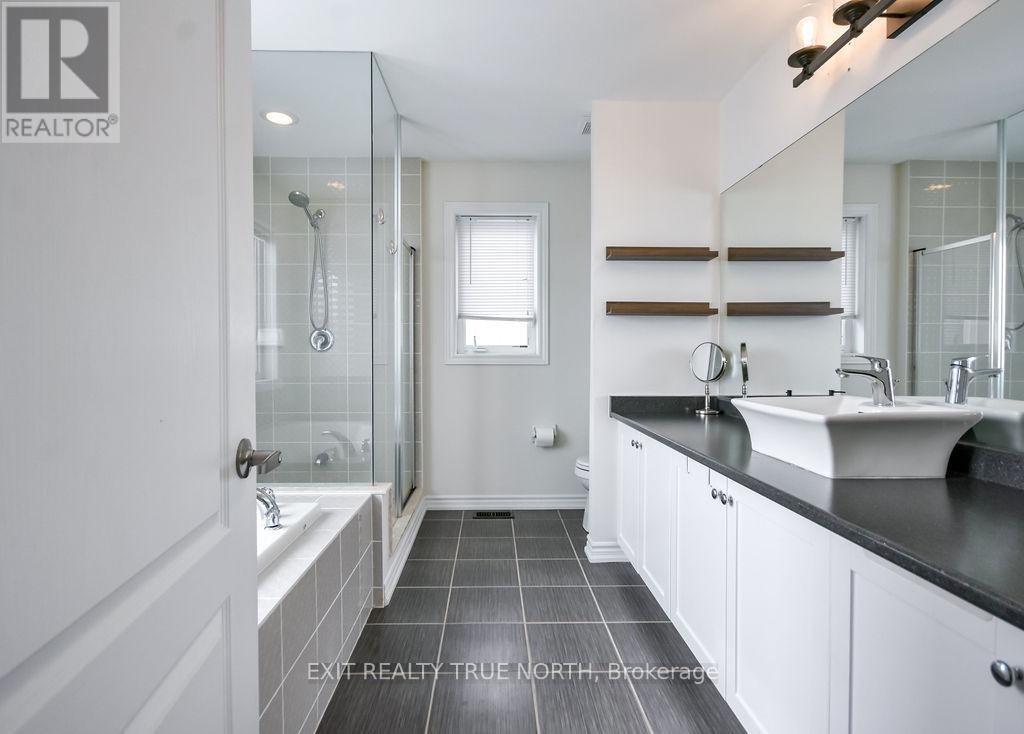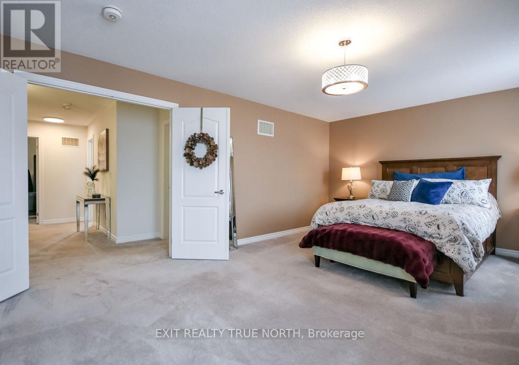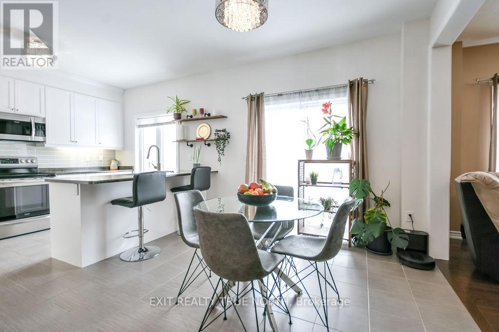 Experience comfort and style in this beautifully appointed home in the sought-after 5th Line community, offering over 2,300 square feet of thoughtfully designed living space. The bright, open concept layout features 9' ceilings, hardwood floors, ceramic tile, and a cozy gas fireplace that creates the perfect backdrop for everyday living and entertaining. The eat-in kitchen is filled with natural light and offers stainless steel appliances with plenty of room to gather. Upstairs, the large primary bedroom is a peaceful retreat with a walk-in closet and a private 4-piece ensuite, complemented by well-sized additional bedrooms. The lower level is unfinished and ready for your vision, complete with a bathroom rough-in, ideal for creating future living space. Outside, relax and entertain on your patio, enjoy the convenience of a shed, and fire up the BBQ with a ready-to-use gas line-perfect for summer gatherings or quiet evenings at home. Located close to everyday amenities, Barrie, Alliston, and Hwy 400, and just a short stroll to a nearby conservation area with scenic trails, this home offers an easy lifestyle in a great location. (id:64974)
