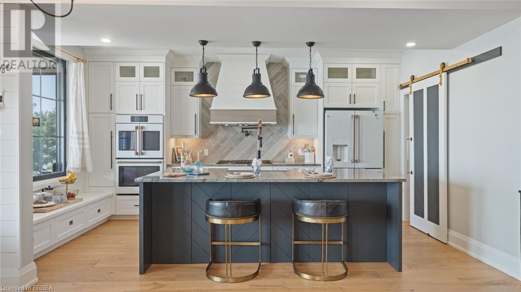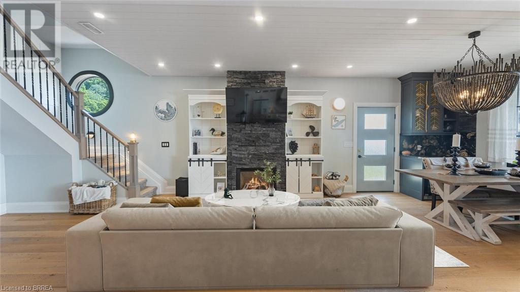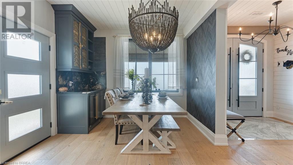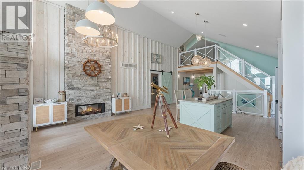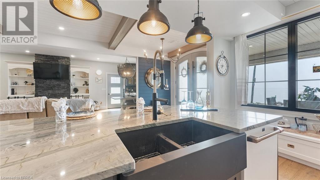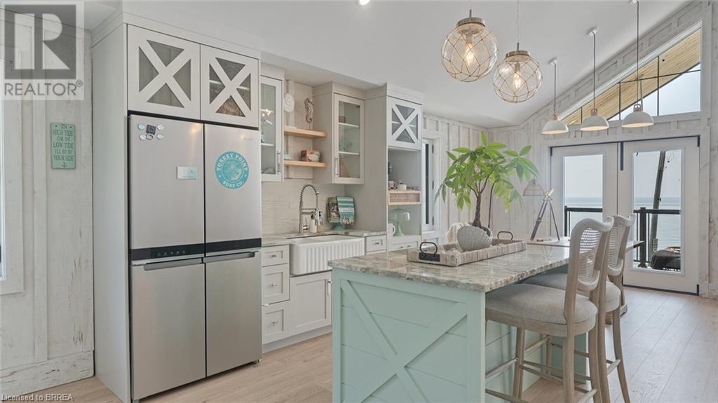 Imagine waking each morning to gentle waves lapping the shore, sunlight dancing across endless water. This is life at Turkey Point, where Lake Erie's northern shore becomes your personal paradise. Nestled in charming Turkey Point, Ontario, this extraordinary property offers the ultimate retreat from everyday life. Here, cozy cottages dot the shoreline, local eateries serve fresh catches, and life moves to the gentle cadence of boats returning to harbor. This peaceful enclave has long been a magnet for those seeking authentic waterfront living, and now it can be yours. Built in 2022 on a tranquil dead-end cul-de-sac, this stunning lake house was designed with one singular vision: to celebrate the magnificent water views that stretch endlessly before you. Every angle, every room, every carefully placed window serves to connect you with the ever-changing beauty of Lake Erie. Step through the front door and be embraced by over 3,800 square feet of thoughtfully designed living space. The modern architecture features soaring windows that frame the water like living artwork, transforming your daily routine into breathtaking moments. The two-story design centers around expansive living areas that dissolve boundaries between indoor and outdoor living. Two great rooms provide multiple gathering spaces, each offering its own unique lake perspective. Whether hosting intimate dinners or grand celebrations, guests will be captivated by the ever-present backdrop of shimmering water. The dual kitchen concept ensures entertaining flows seamlessly. Imagine preparing meals while watching sailboats drift by, or enjoying morning coffee as sunrise paints the water in brilliant hues. An elevator provides effortless access to both levels. Five bedrooms offer peaceful retreats. Three bathrooms provide comfort, while the three-car garage includes upper suite potential. From this vantage point, Lake Erie becomes your playground. Nothing beats life on the water! Luxury Certified. (id:64974)