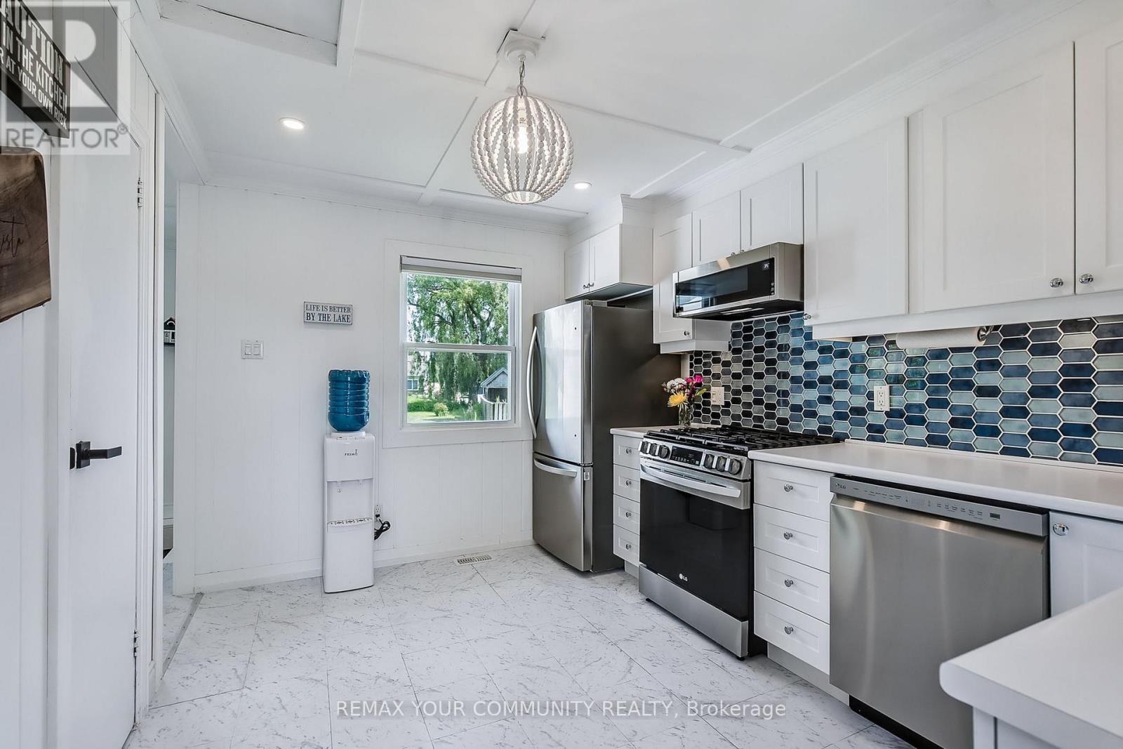 Welcome to 33 Fairwell Avenue, a stunning retreat steps from Lake Erie. Known as "Lucy's Lake House," this elegant two bedroom raised bungalow offers tranquility in one of Haldimand County's most peaceful lake communities and is currently used as a seasonal property. Set on a generous 100x100 lot with no rear neighbours and panoramic farm field views, this property invites you to relax, recharge, and entertain. Inside, you'll find crisp whites, nautical blues, shiplap walls, custom barn doors, ambient lighting, and new flooring throughout. The spacious bright white kitchen opens directly onto your deck - ideal for morning coffee or sunset cocktails while the sun-filled living room is framed by a large picture window. The home was raised in 2022 and features a 8-foot poured concrete basement, providing excellent storage space. Mechanicals include a gas furnace, central air conditioning, central vacuum, a 2,000-gallon cistern, and a 2,000-gallon holding tank. The professionally landscaped grounds at 33 Fairwell Avenue are designed to impress, and built to enjoy.Centered around a custom herringbone patio, the spa-style firepit lounge area is complimented by an 8x8 freestanding timber structure ready for hammocks, hanging chairs, or romantic string lights.A glowing white arbour captures golden hour perfectly, offering an ideal backdrop for sunset toasts, wedding photos, or milestone memories.From morning coffee in the breeze to starlit evenings around the fire, every corner of this property invites you to slow down and soak it all in. The whimsical treehouse is a favourite for kids and grandkids, while two sheds offer space to store, create, or retreat. Whether you're hosting family reunions, summer celebrations, or simply enjoying peaceful time by the lake, this property delivers the energy of a luxury resort with the privacy of a tucked-away lakeside escape. Loved by one family for over 2 decades. (id:64974)