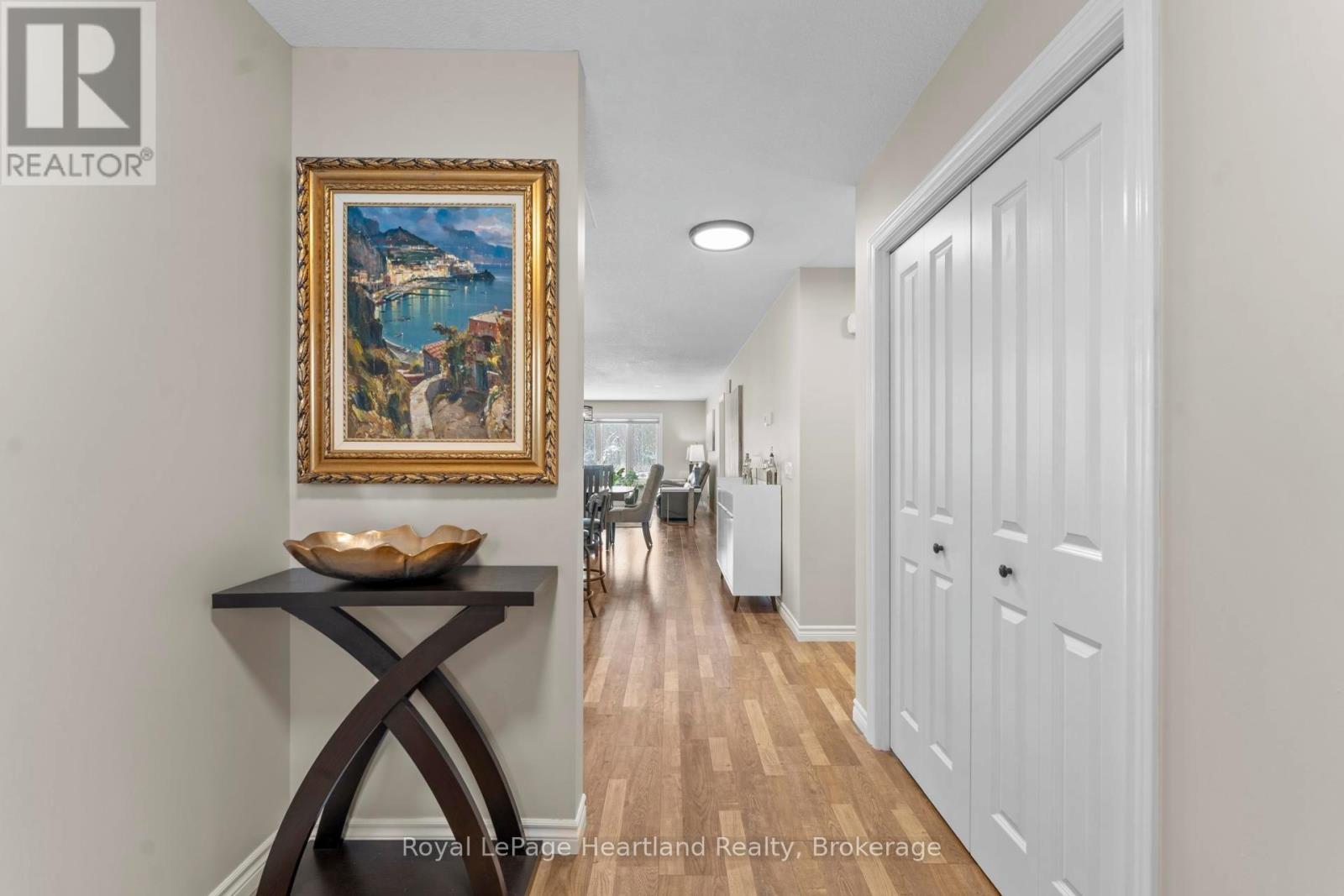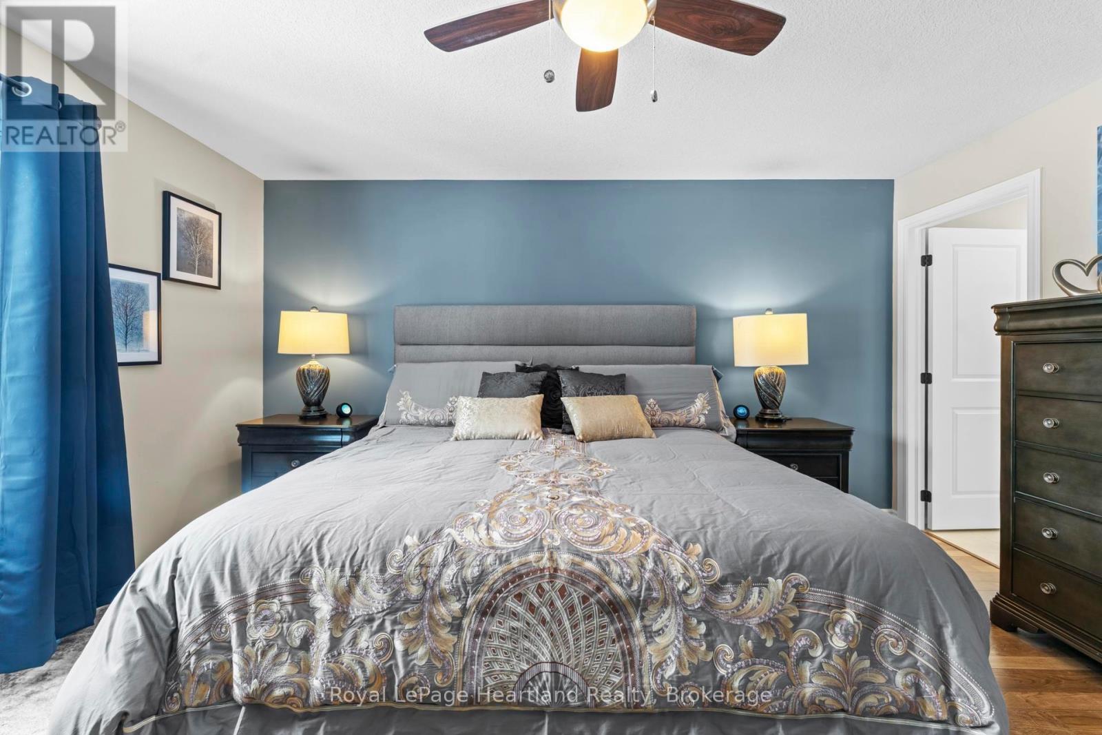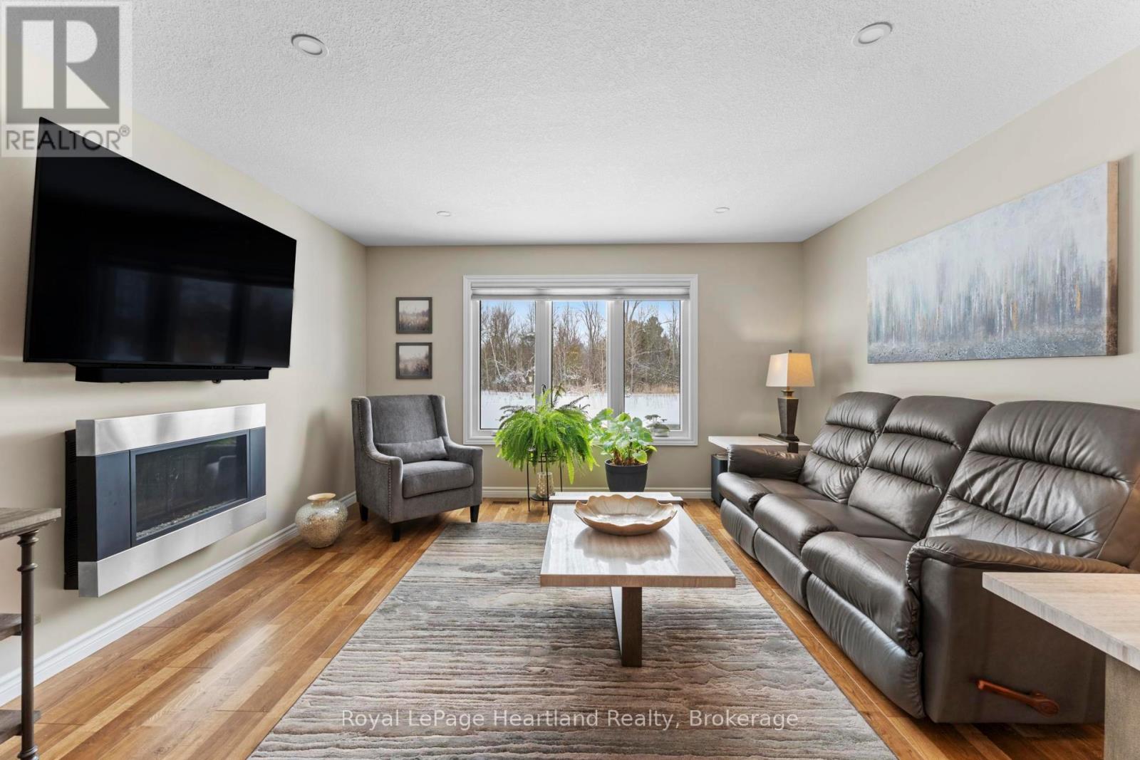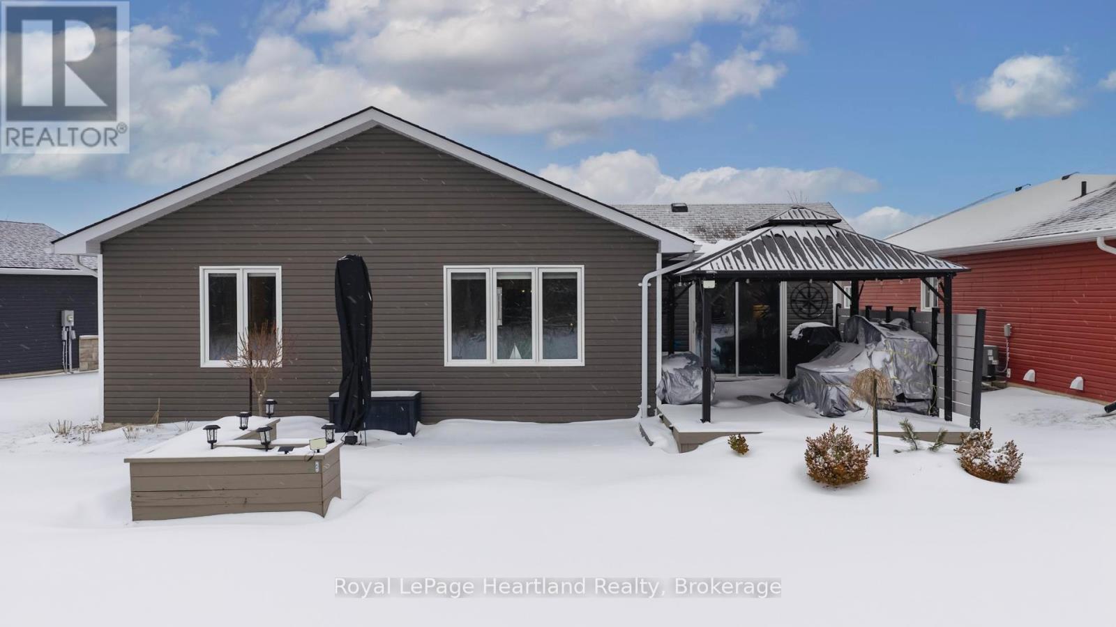 Prime location near the lake! Set in the highly sought-after Bluffs at Huron, this immaculate bungalow backs onto an open field and natural environment, offering a peaceful backdrop and privacy, while still being a short stroll to the community rec centre, lake access, and all the lifestyle perks that make this waterfront neighbourhood so desirable. This impressive "Lakeside with Sunroom" model offers approx. 1,455 sq ft of designed living space and a long list of quality upgrades. Curb appeal shines with manicured landscaping, mature trees and an inviting front porch. Inside, the bright, welcoming layout is finished with high-end continuous flooring and upgraded lighting. The custom kitchen is a standout with abundant cabinetry topped with crown moulding, soft-close doors, quartz countertops, tile backsplash, under-cabinet lighting, an enlarged centre island, built-in microwave, high-capacity range hood fan, Bosch panel dishwasher, and induction stove. The kitchen flows seamlessly into the dining area and sunroom featuring a tray ceiling and patio doors to the outdoors. Step outside to a spacious south-facing composite deck complete with gazebo, privacy wall, and a professionally installed 16' x 16' stone patio-perfect for entertaining or quiet evenings. The generous primary bedroom offers a walk-in closet and 3-piece ensuite. A second bedroom and a stylish 4-piece main bath complete the main level; both baths are upgraded with quartz counters, tile details and glass sliding shower doors. Relax in the living room beside the contemporary low-profile Solas gas fireplace with remote. Enjoy plenty of storage with multiple closets, a full crawl space, and an attached two-car garage. Bonus: six appliances included. Located in an upscale land lease community with a private recreation centre and indoor pool, close to shopping and several golf courses. Book your private showing today! (id:64974)