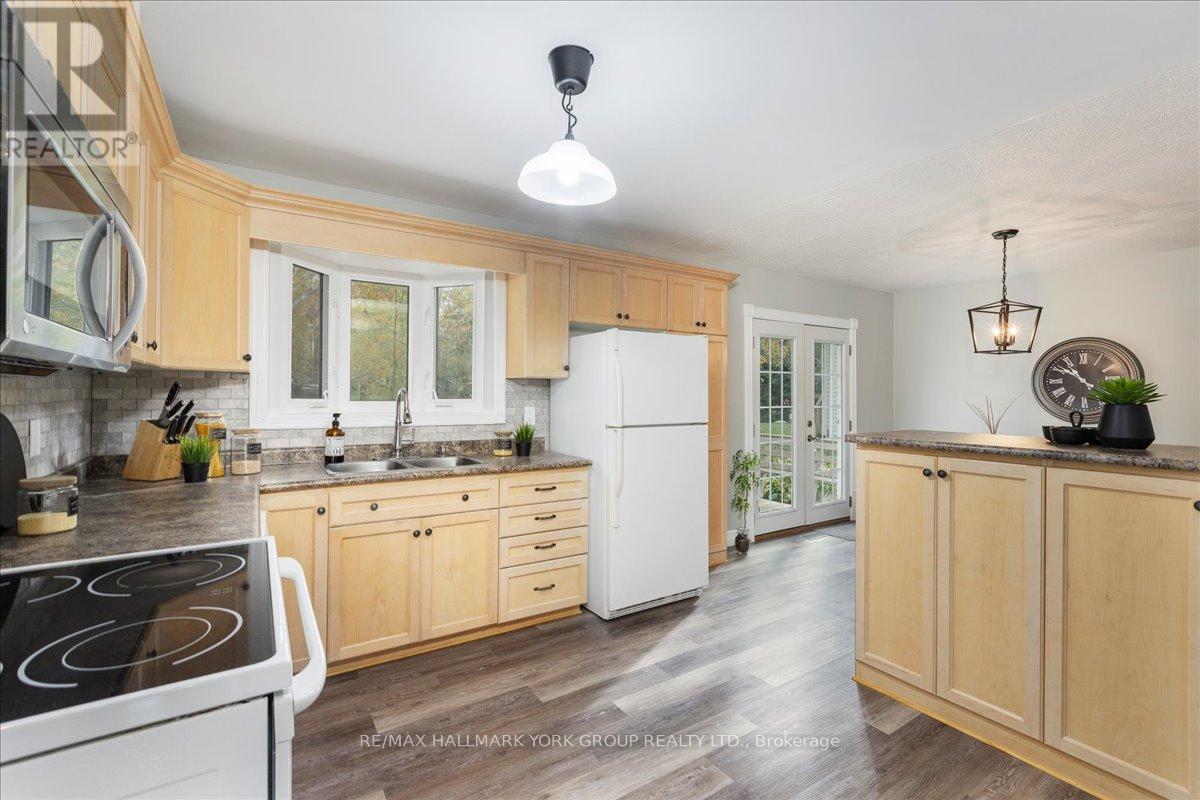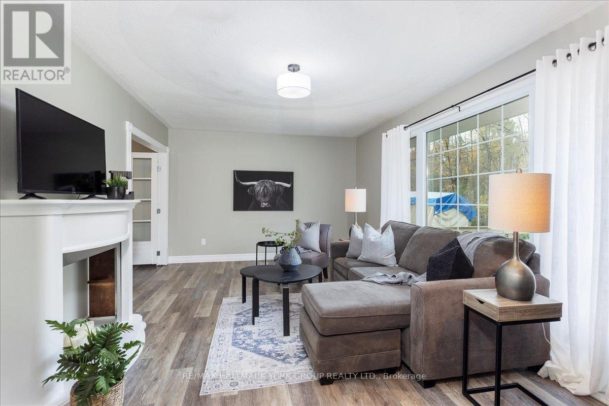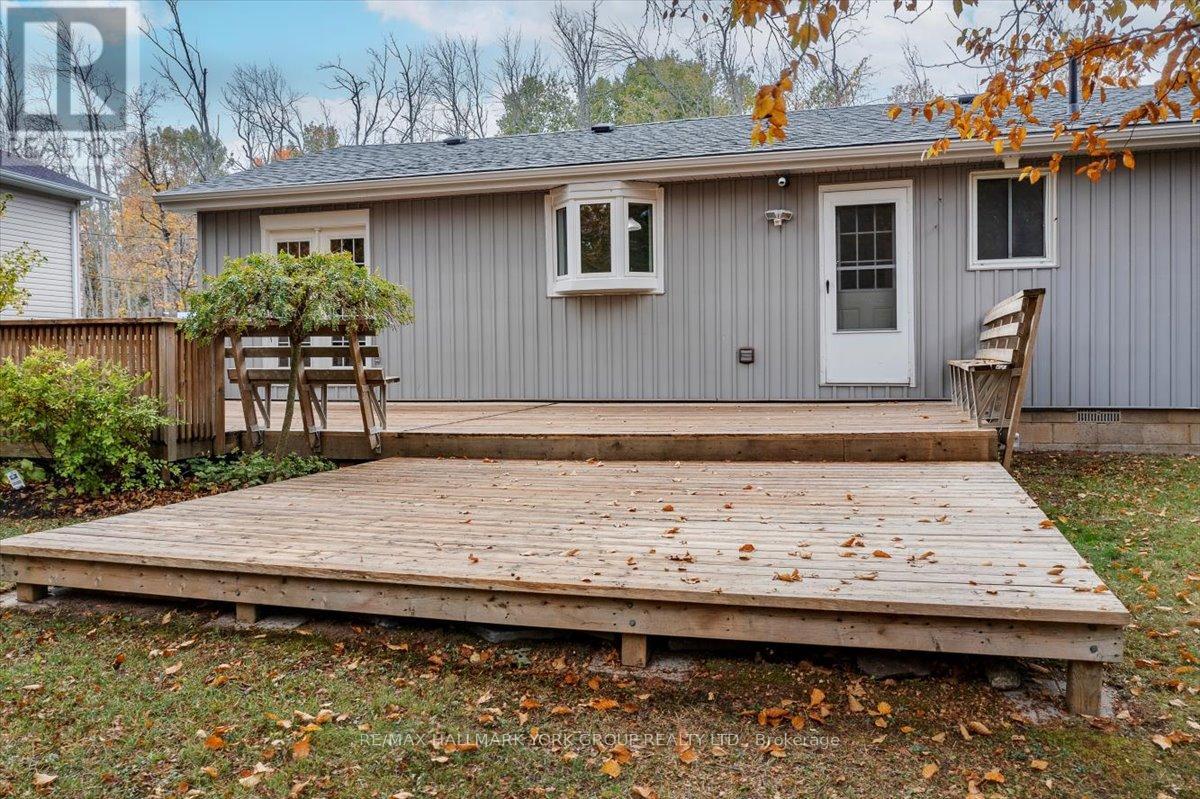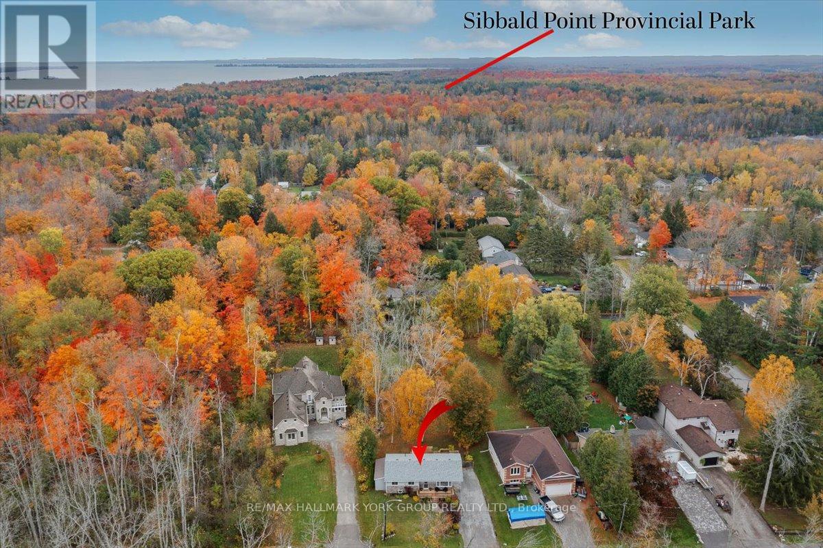 Charming 3-Bedroom Bungalow nestled on a quiet no-exit street and set on nearly half an acre, this delightful 3-bedroom Viceroy offers the perfect blend of comfort, privacy, and nature. Enjoy peaceful views of the surrounding forest, all within a short walk to Sibbald Point Provincial Park and the sparkling shores of Lake Simcoe. The home features a bright and spacious living room with a stylish barn door entry and a large picture window that fills the space with natural light. The eat-in kitchen and dining area provide plenty of room for family meals and gatherings, with a walk-out to a 30 Ft. x 12.5 Ft. tiered entertainer's deck-perfect for summer barbecues and outdoor living. Relax by the cozy firepit or unwind in your private, treed backyard, surrounded by nature. This year round residence offers a serene lifestyle just minutes from parks, trails, and the lake. (id:64974)