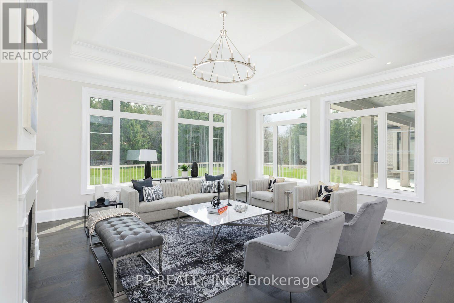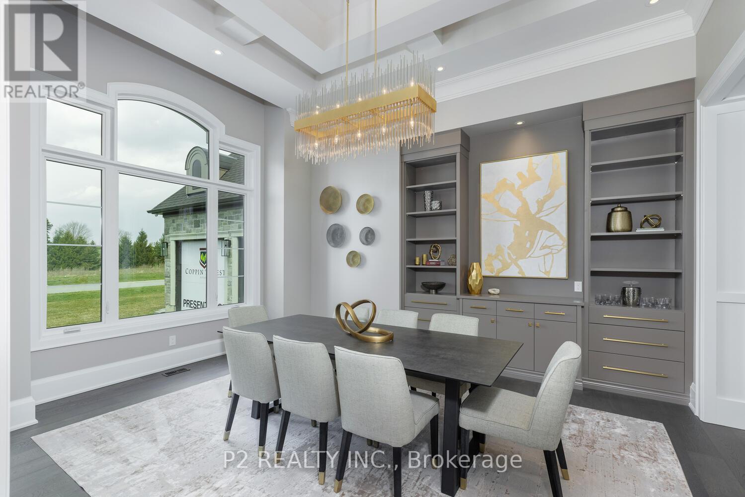 Coppin Forest Estates is a boutique collection of luxury estate homes on expansive 1 to 4 acre lots, offering a rare pre-construction opportunity in the heart of Uxbridge's sought-after Goodwood community. Introducing the Inverness Model (Elevation A). An architectural masterpiece spanning approximately 4,050 sq. ft., on a 2.14 acre lot, thoughtfully crafted by Oxford Developments and set within the exclusive Coppin Forest Estates community in Goodwood, Uxbridge. This striking bungaloft blends timeless design with modern sophistication, a rare opportunity to own an estate home surrounded by nature, rolling hills, and luxury custom residences. The main level showcases soaring 10-ft ceilings, expansive living and dining spaces with open-to-above volume, and a seamless flow into the designer kitchen, complete with extended-height Canadian-made cabinetry, quartz countertops, a generous breakfast area, and a walk-in pantry with optional servery. An oversized mudroom with laundry adds practical elegance, connecting directly to the garage. This home offers 5 spacious bedrooms and 4 well-appointed bathrooms, including a main floor primary retreat with walk-in closet and spa-inspired ensuite. Premium finishes include: 5 prefinished hardwood flooring, large-format 12"x24" porcelain tile (as per plan), 7 -1/4" baseboards, quartz surfaces in all bathrooms and laundry room, crown moulding, and 20 interior pot lights. Ceilings soar to 9 feet on the second level and throughout the basement. Steps to premiere golf clubs, scenic nature trails, and a short drive to boutique shopping and amenities. EXTRAS: Upgraded 8' interior doors on main level * Elegant veranda * Open-to-above ceilings in living room and dining room * Tarion Warranty included * Closings starting in 2027. *** Photos are renders and from model home*** (id:64974)