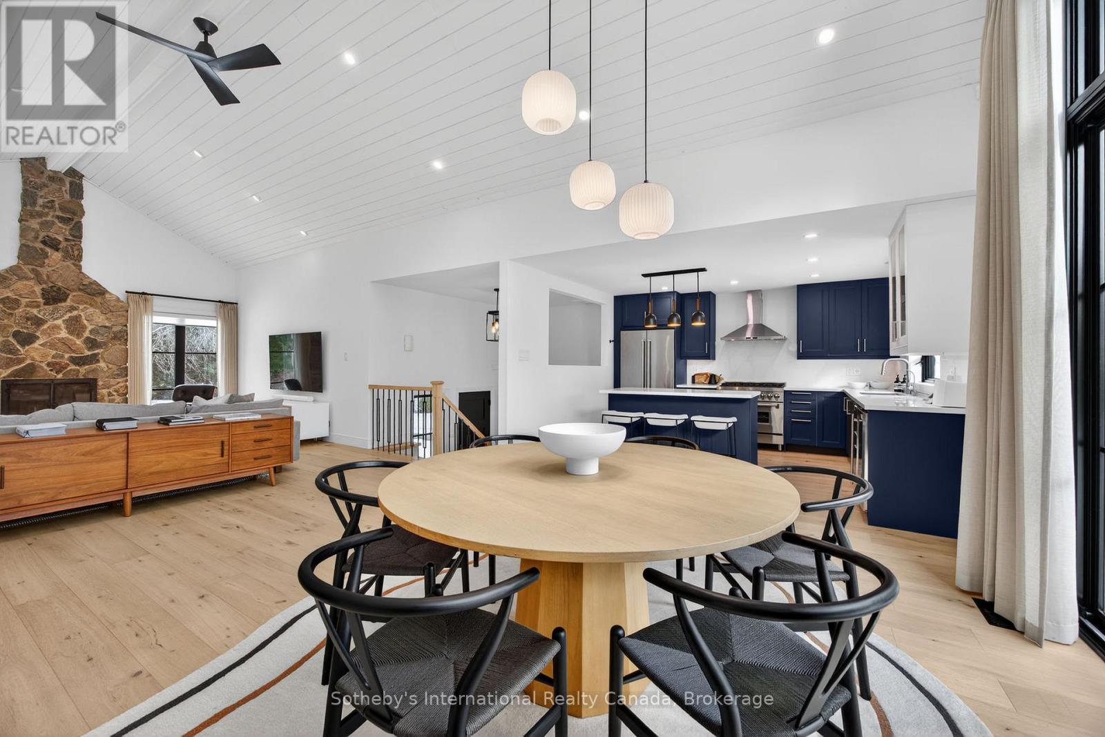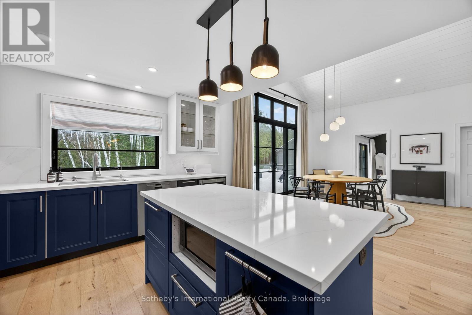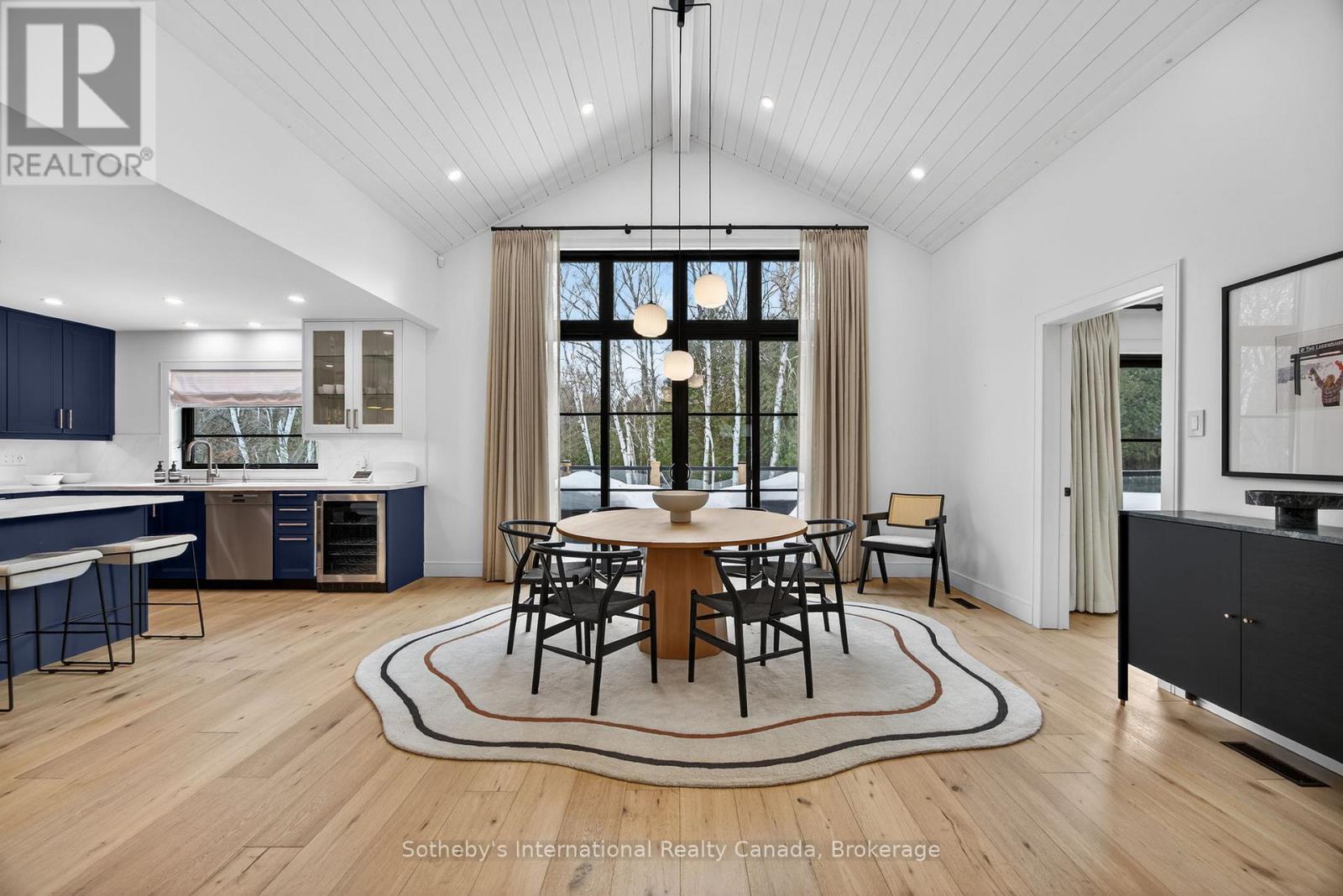 Discover this beautifully renovated 4 bdrm custom chalet where modern luxury meets serene natural surroundings, with the Silver Creek flowing through your backyard. Perfectly situated just minutes from Blue Mountain, Osler Bluff, and the area's premier private ski clubs, this raised bungalow features a total of 2263 sq. ft. and is finished to perfection and ready for four-season living.From the moment you step inside, you'll be captivated by the meticulous craftsmanship and contemporary elegance, highlighted by wide-plank hardwood flooring throughout. The main level features a stunning 14' vaulted ceiling in the open-concept Great Room and Dining Room, anchored by a dramatic floor-to-ceiling stone wall w/wood burning f/place. Walk out to both front and rear decks to enjoy peaceful views of Blue Mountain and the Silver Creek- a perfect backdrop for morning coffee or après-ski evenings.The bright, gourmet kitchen is designed for both style and function, offering quartz countertops, stainless steel appliances, and a chef-inspired 36" six-burner Zline gas range, as well as a French door refrigerator, Bosch dishwasher, microwave, and bar fridge.Relax in the main floor private primary suite featuring a vaulted ceiling, two closets including a custom walk-in, and a spa-inspired ensuite complete with a stand-alone soaker tub & glass shower. The lower level walkout offers exceptional versatility with three additional bedrooms that can be easily repurposed as dedicated office space, a fitness room, or recreation areas, depending on your needs. After a day on the slopes, unwind in the built-in steam sauna. Additional upgrades include custom drapery, heated floors in bathrooms, and built-in closet cabinetry throughout. With parking for 6+ cars, this is the ultimate mountain-modern chalet- stylish, luxurious, and equipped with every comfort. (id:64974)