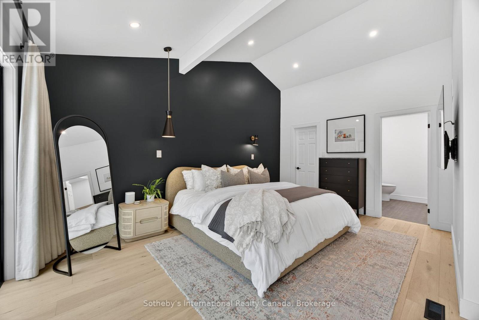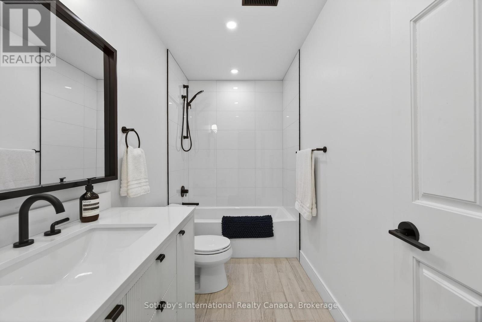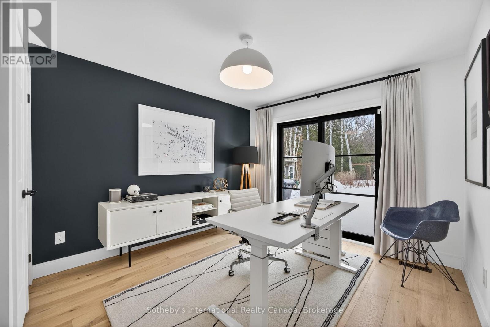 Discover this beautifully renovated 4 bdrm custom chalet where modern luxury meets serene natural surroundings, with the Silver Creek flowing through your backyard. Perfectly situated just minutes from Blue Mountain, Osler Bluff, and the area's premier private ski clubs, this raised bungalow features a total of 2263 sq. ft. and is finished to perfection and ready for four-season living.From the moment you step inside, you'll be captivated by the meticulous craftsmanship and contemporary elegance, highlighted by wide-plank hardwood flooring throughout. The main level features a stunning 14' vaulted ceiling in the open-concept Great Room and Dining Room, anchored by a dramatic floor-to-ceiling stone wall w/wood burning f/place. Walk out to both front and rear decks to enjoy peaceful views of Blue Mountain and the Silver Creek- a perfect backdrop for morning coffee or après-ski evenings.The bright, gourmet kitchen is designed for both style and function, offering quartz countertops, stainless steel appliances, and a chef-inspired 36" six-burner Zline gas range, as well as a French door refrigerator, Bosch dishwasher, microwave, and bar fridge.Relax in the main floor private primary suite featuring a vaulted ceiling, two closets including a custom walk-in, and a spa-inspired ensuite complete with a stand-alone soaker tub & glass shower. The lower level walkout offers exceptional versatility with three additional bedrooms that can be easily repurposed as dedicated office space, a fitness room, or recreation areas, depending on your needs. After a day on the slopes, unwind in the built-in steam sauna. Additional upgrades include custom drapery, heated floors in bathrooms, and built-in closet cabinetry throughout. With parking for 6+ cars, this is the ultimate mountain-modern chalet- stylish, luxurious, and equipped with every comfort. (id:64974)