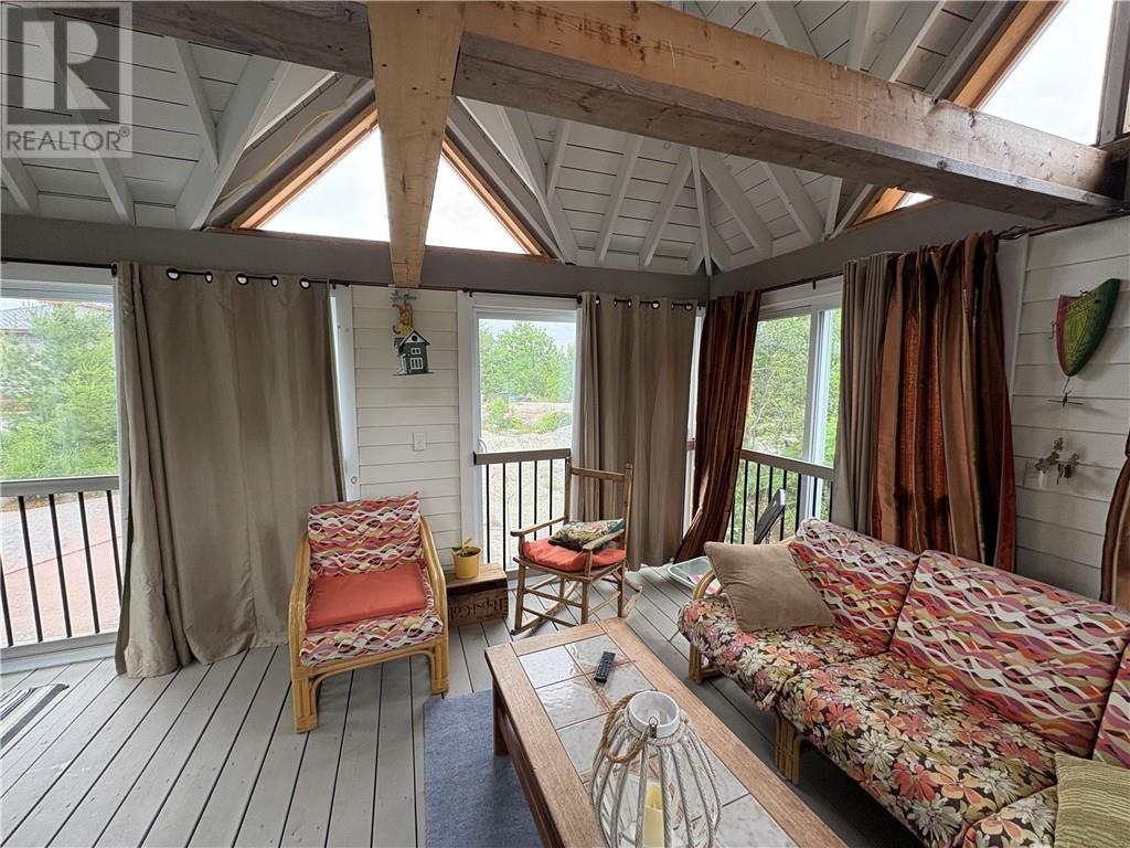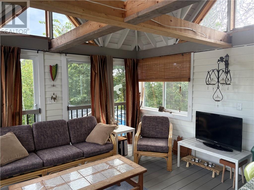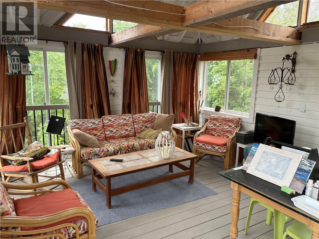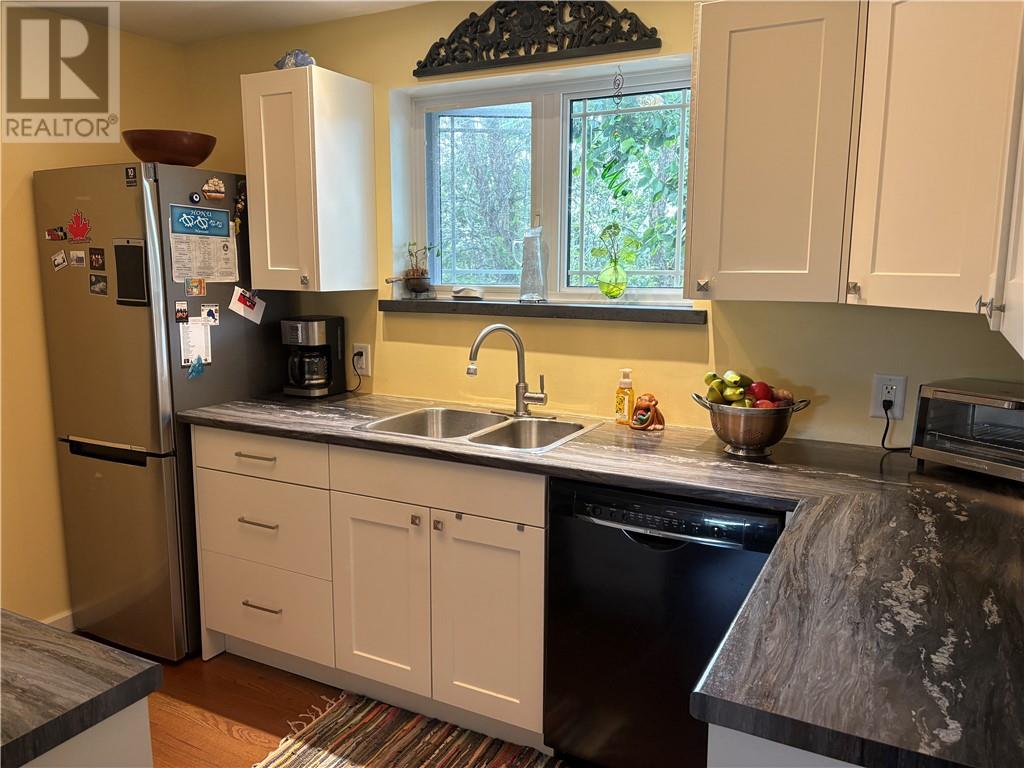 Newer (built in 2013), 3 bedroom home - 2080 square feet of above grade living space on 2 floors. The main living area, including kitchen, living area, 2 bedrooms & bathroom is located on the upper level to maximize the view of the spectacular smooth pink rock outcrop off to the side. The lower level contains a kitchenette\living area, a full bathroom and the 3rd bedroom. This level could easily be used as self contained accommodations (in-laws, guests, etc.). Off the main kitchen\living area and connected by a wooden walkway is the 16’ x 16’ gazebo, with a workshop below. The woodstove comfortably heats the home, backed up by electric baseboards. A good supply of firewood is included. No basement (slab on grade construction). Insulated Concrete Foundation (ICF) construction (first floor only). Privacy is good, and located just 2 blocks from the town waterfront. The sale includes all appliances, and most furnishings are optional. Lot size is .5 acre, with plenty of room to build a garage. Serviced with town sewer and water. Taxes: $2415.10 (2025). (id:64974)