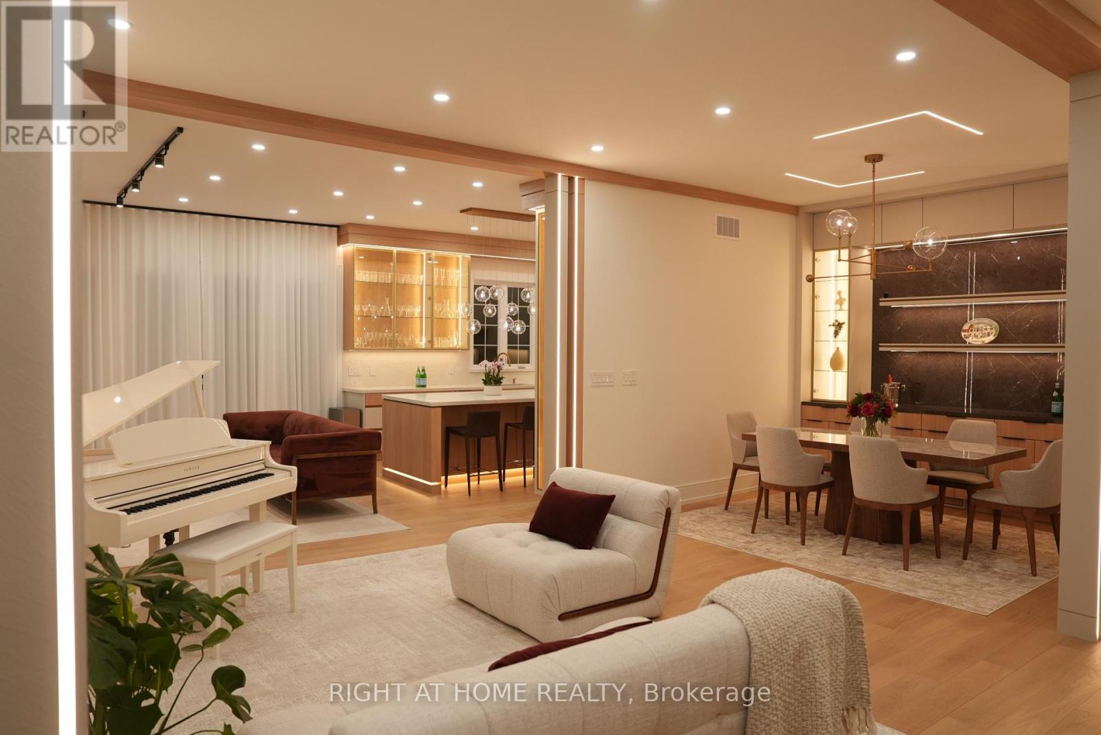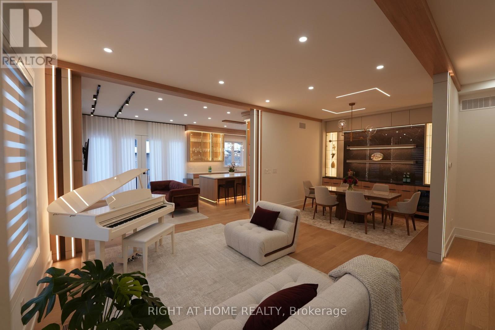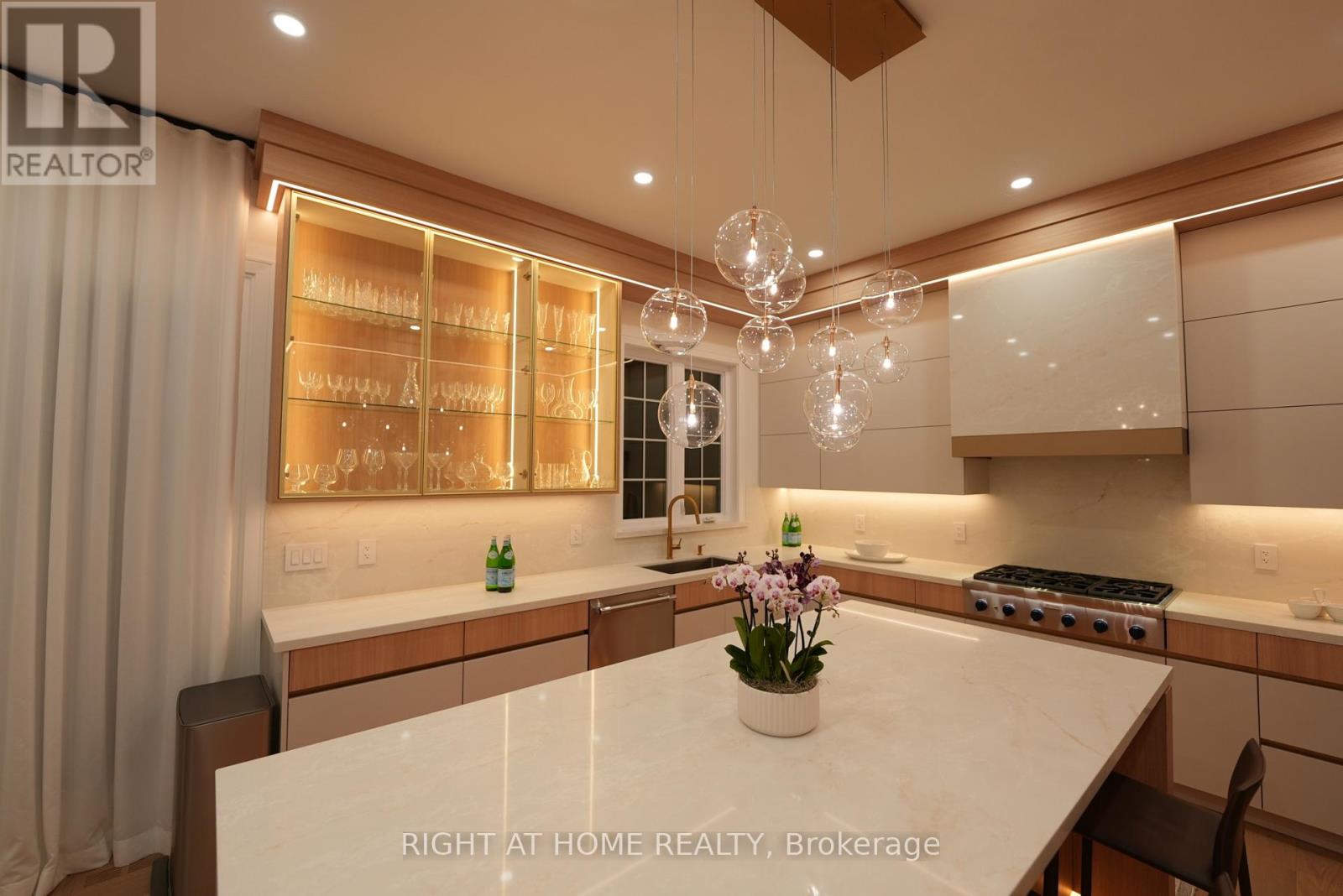 A newly built custom residence in the Kingsway, one of Etobicoke's finest and highly sought-after neighbourhoods known for its vibrant family-oriented community, top schools and walkable neighbourhood charm.This grand three-story home boasts over 5,000 square feet, perfectly designed for a growing family-offering generous gathering areas, comfortable private spaces, and room to create lasting memories together. The ground floor showcases an elegant layout, highlighted by stunning fireplace and exquisite custom millwork. The chef-inspired kitchen features a spacious eat-in island, premium built-in appliances, and abundant prep and storage areas. Seamlessly connected living and dinning areas create an airy, flowing environment idea for everyday living. Upstairs, the primary suite offers a tranquil retreat with a private balcony, custom walk-in closet & make-up table, spa-inspired ensuite & custom window covers.Three additional bedrooms, each with designer finishes and two bathrooms completed this level.The top floor adds a large -scale suit ideal for Guests/Game Room/Teen Haven/Art Studio or more. The lower level impresses with a spectacular recreation room, gym, wet bar, wine rack, nanny suite, bathroom, laundry room & radiant heating. Ideally located just steps from top-rated Lambton Kingsway School, swimming pool, parks, panoramic Humber River trail, picturesque Old Mill Inn, as well as a wide array of shops, cafes, dinning & transit including the subway. (id:64974)