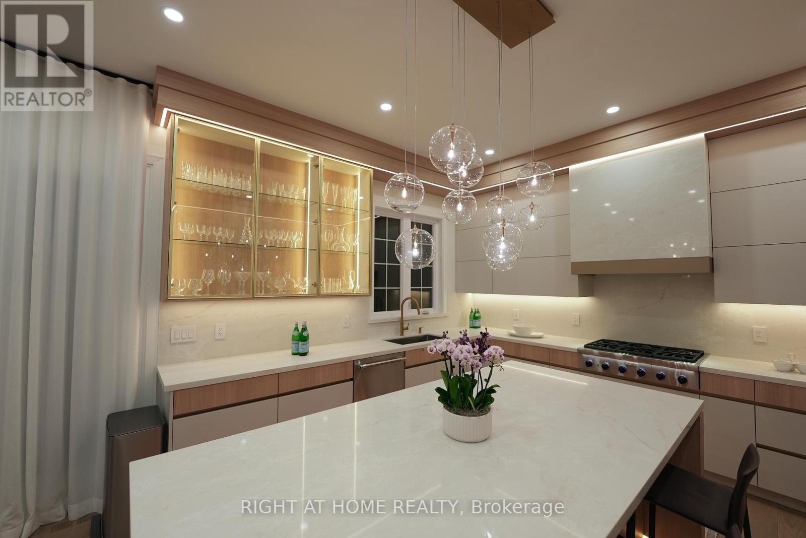 A RARE OFFERING on an impeccable brand new custom residence in the Kingsway, one of Etobicoke's finest and highly sought-neighbourhoods known for its vibrant family-oriented community, top schools, and walkable neighbourhood charm. This grand three-story home boasts over 5,000 square feet, perfectly designed for a growing family-offering generous gathering areas, comfortable private spaces, and room to create lasting memories together. The ground floor showcases an elegant layout, highlighted by stunning fireplace and exquisite custom millwork. The chef-inspired kitchen features a spacious eat-in island, premium built-in appliances, and abundant prep and storage areas. Seamlessly connected living and dinning areas create an airy, flowing environment idea for everyday living. Upstairs, the primary suite offers a tranquil retreat with a private balcony, custom walk-in closet & make-up table, spa-inspired ensuite & custom window covers. Three additional bedrooms, each with designer finishes and two bathrooms completed this level.The top floor adds a large -scale suit ideal for Guests/Game Room/Teen Haven/Art Studio or more. The lower level impresses with a spectacular recreation room, gym, wet bar, wine rack, nanny suite, bathroom, laundry room & radiant heating. Ideally located just steps from top-rated Lambton Kingsway School, swimming pool, parks, panoramic Humber River trail, picturesque Old Mill Inn, as well as a wide array of shops, cafes, dinning & transit including the subway. (id:64974)