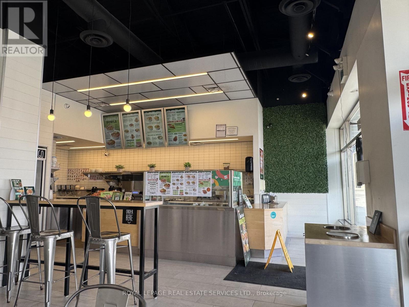 Located at the busy intersection of Trafalgar Road and Dundas Street East, this Freshii presents an exceptional opportunity to acquire a turnkey business in one of Oakville's most desirable and high-traffic commercial corridors. Surrounded by dense residential communities, major retailers, and ongoing development, this location benefits from strong daily foot traffic and excellent visibility, making it ideal for continued operation or a new concept. The premises offer approximately 930 square feet of efficiently designed space, perfectly suited for a wide variety of food and beverage uses. The layout is functional and versatile, allowing for a smooth transition for an incoming operator. Whether you are looking to continue with a recognized brand or convert to your own concept, this space provides the flexibility to bring your vision to life. The lease features approximately two years remaining, along with two additional five-year renewal options, providing long-term security in a premium location. Opportunities in this node are rarely available, making this an excellent chance for entrepreneurs and operators to establish themselves in a thriving and growing market. (id:64974)