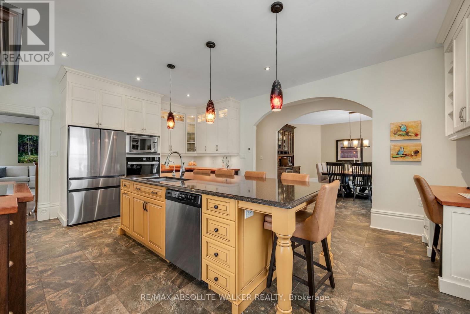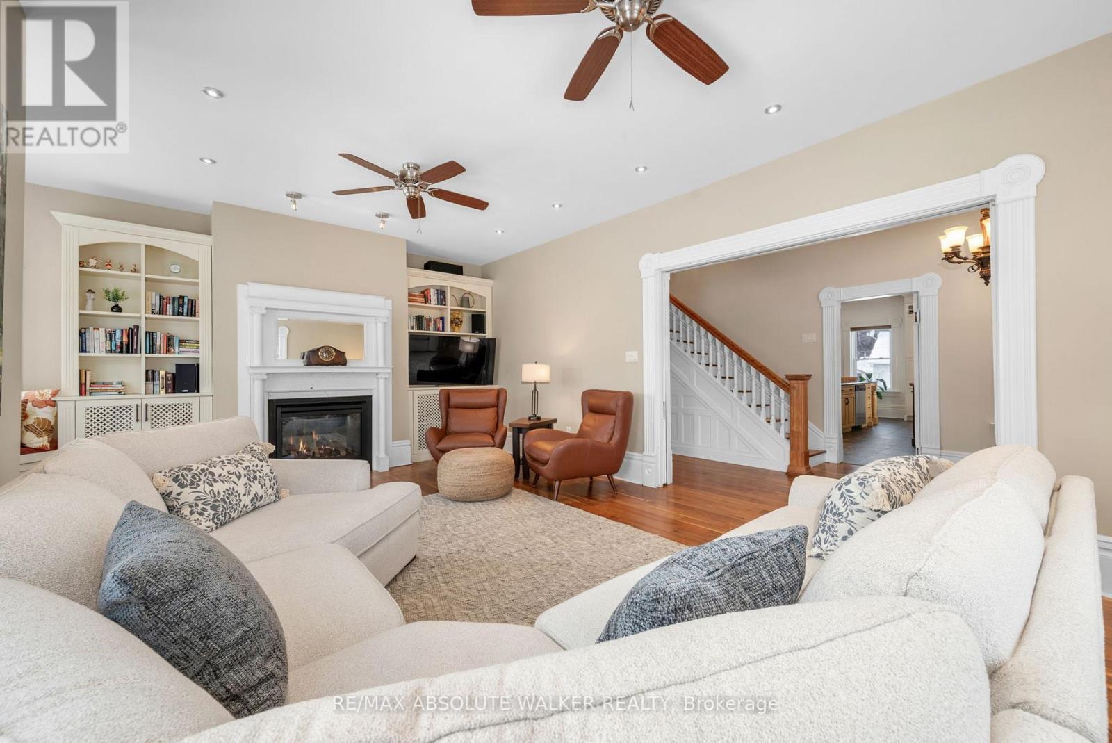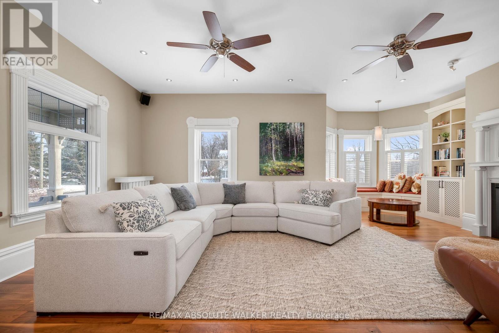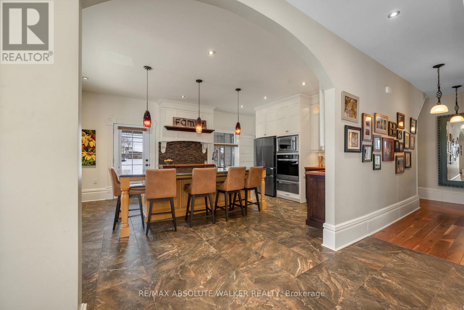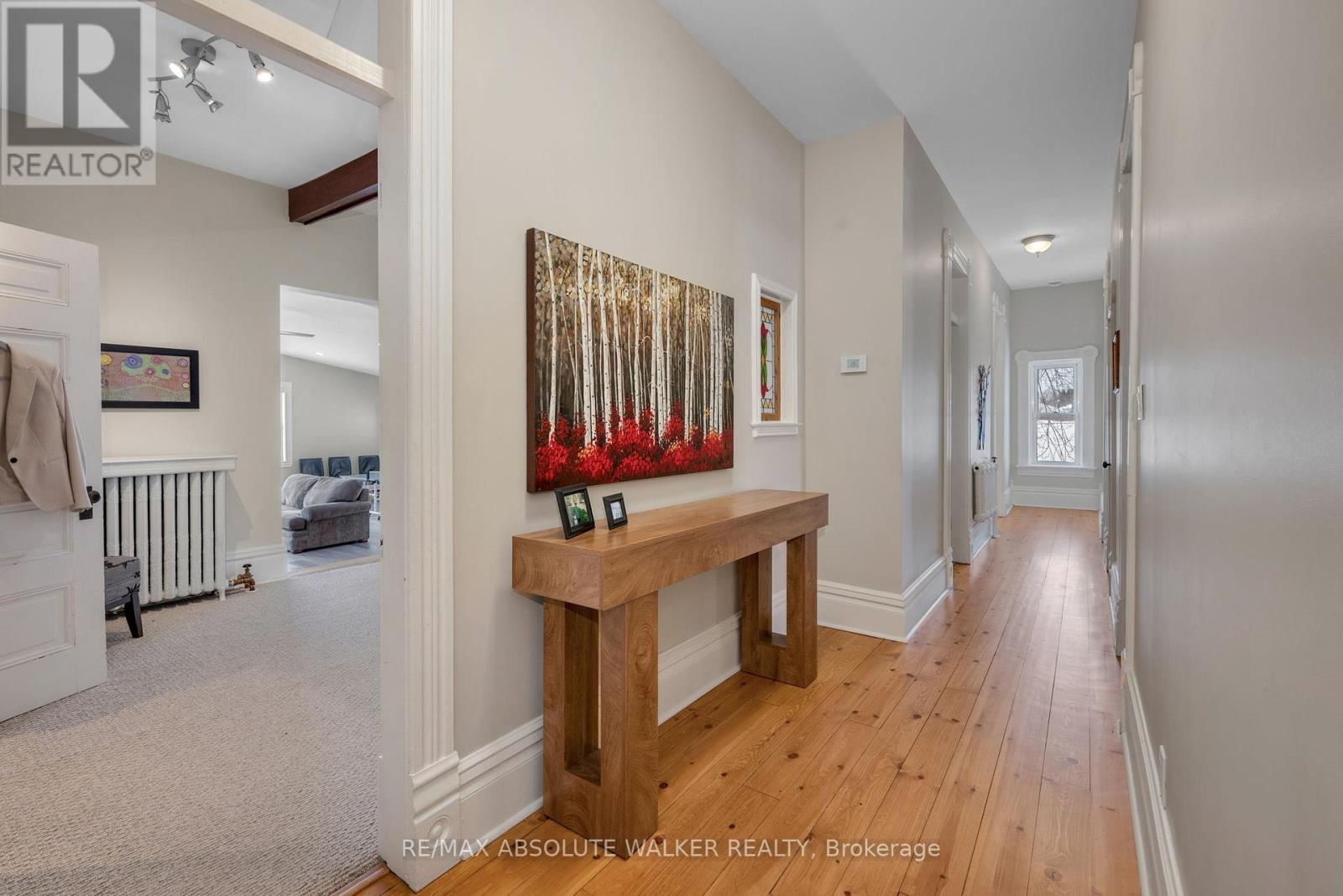 Welcome to this stunning 19th-century home, beautifully reimagined to honour its historic character while offering all the comforts and functionality today's family desires. Set in a picturesque village setting, this one of a kind property boasts over 4,000 sq ft of spacious living, filled with timeless period details throughout.Original transom windows, soaring 9-foot ceilings, and exquisite original mouldings and trim work create an atmosphere of elegance and charm at every turn. Thoughtful renovations seamlessly blend old and new, including a renovated open-concept kitchen and dining area designed for entertaining, complete with built-in appliances, a quartz countertop island, and luxurious in-floor heating.Cozy up by the inviting double-sided fireplace, perfectly positioned between the living room and den. Upstairs, unwind in the expansive second floor family room, ideal for movie nights, game days, or simply relaxing together.The spacious primary suite is a true retreat, featuring exposed brick and a warm, character rich ambiance. A fully renovated five piece ensuite bath creates the feel of a private sanctuary. Renovated bathrooms with heated floors, feel like private spas, offering a serene escape at the end of the day. Three additional. bedrooms and the laundry room complete the second level. Step outside to your covered outdoor entertainment area with a propane hookup for BBQs, and enjoy the ultimate luxury of a hot tub on this generous lot. Adding to the property's charm is the original 1890 barn, brimming with potential for a workshop, studio, or additional storage.Don't miss this rare opportunity to own a breathtaking historic home with all the bells and whistles where classic 19th-century style meets modern living at its finest. An ideal home for growing families with an easy commute to Ottawa. (id:64974)